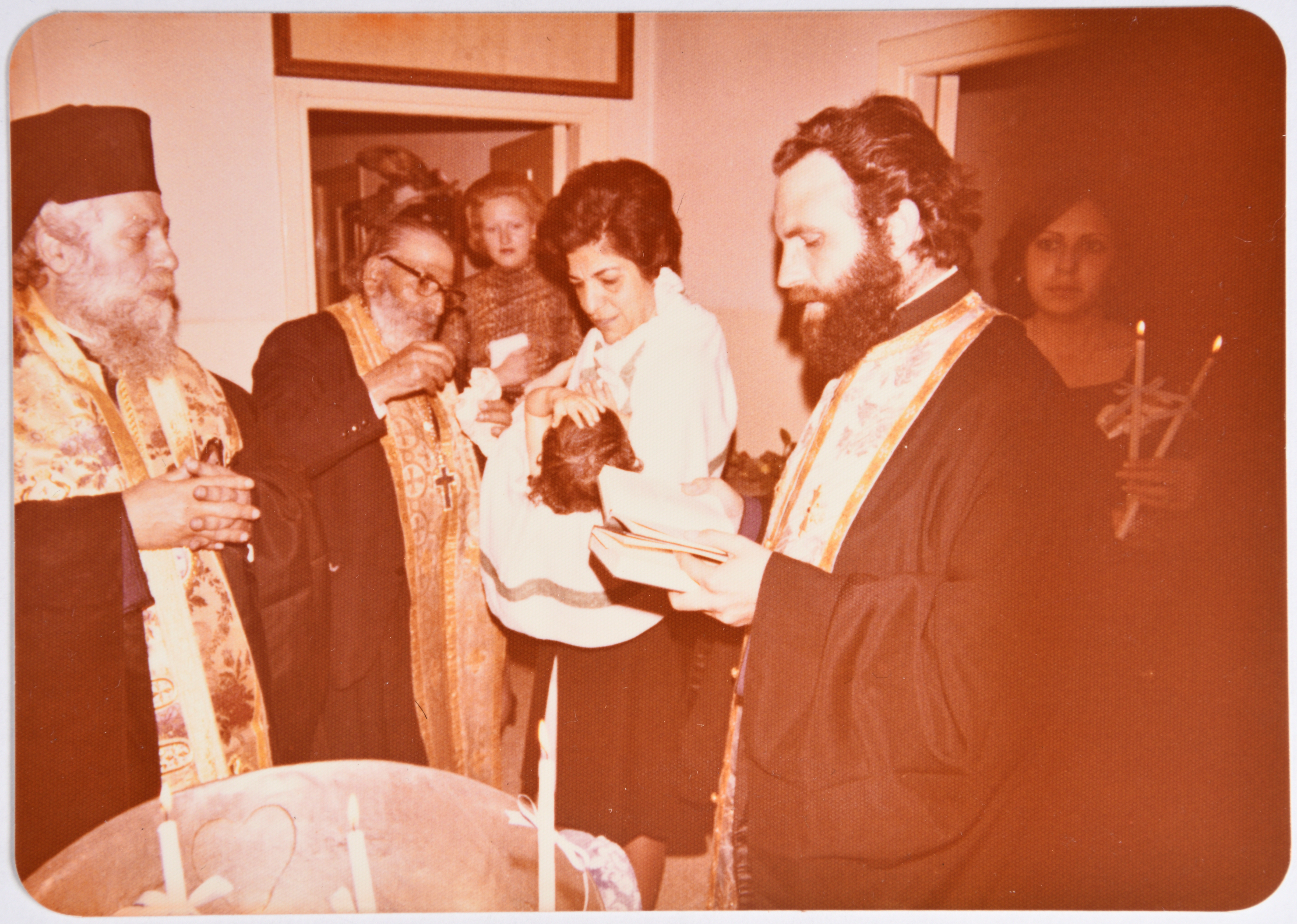 ليلى ترزي خلال عِمَاد أحد أفراد عائلتها في القدس عام 1976.