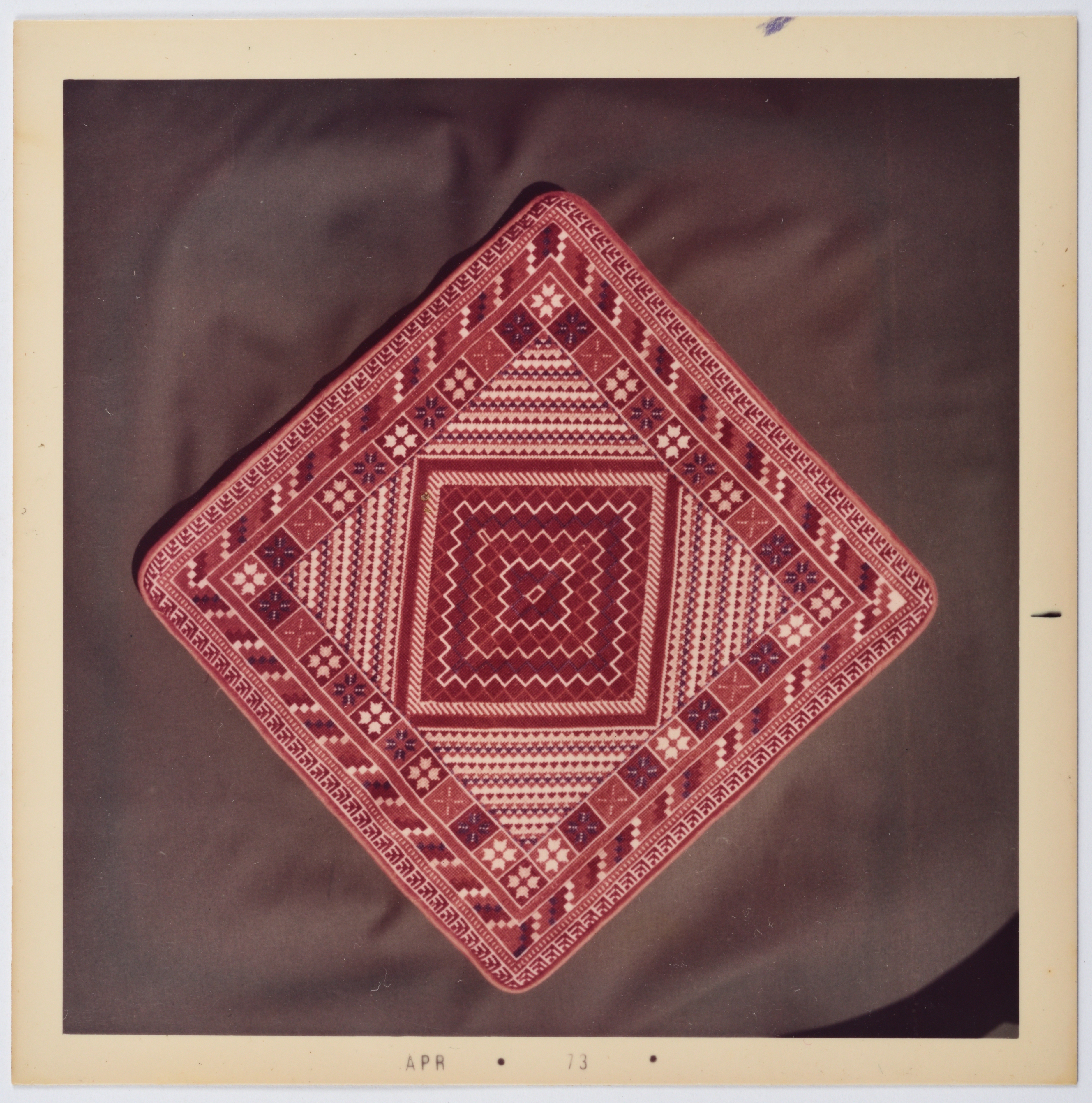 صورة ملونة، يظهر فيها أعمال تطريز يدوي فلسطيني من انتاج جمعية انعاش المخيم.