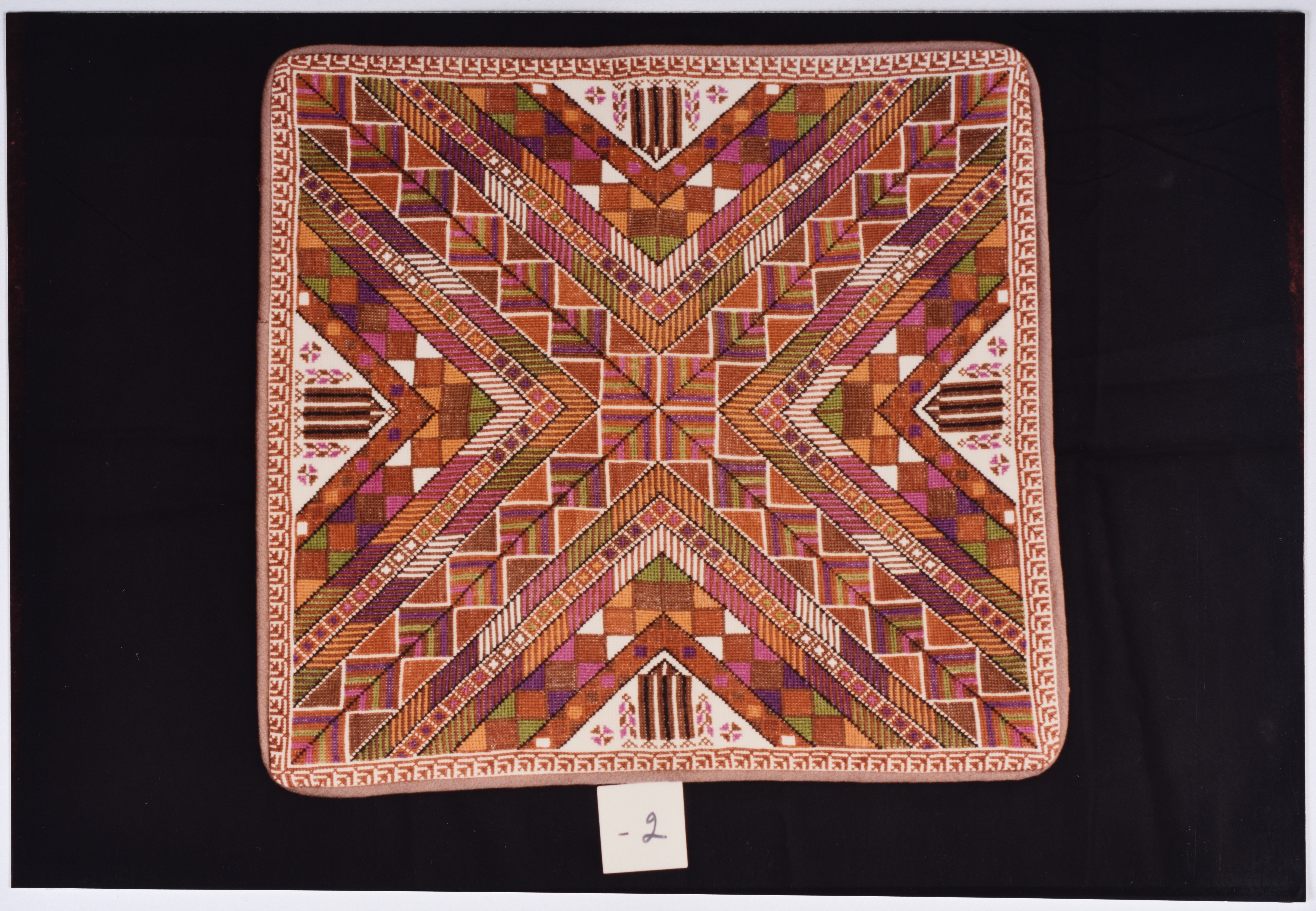 صورة ملونة، يظهر فيها أعمال تطريز يدوي فلسطيني من انتاج جمعية انعاش المخيم.