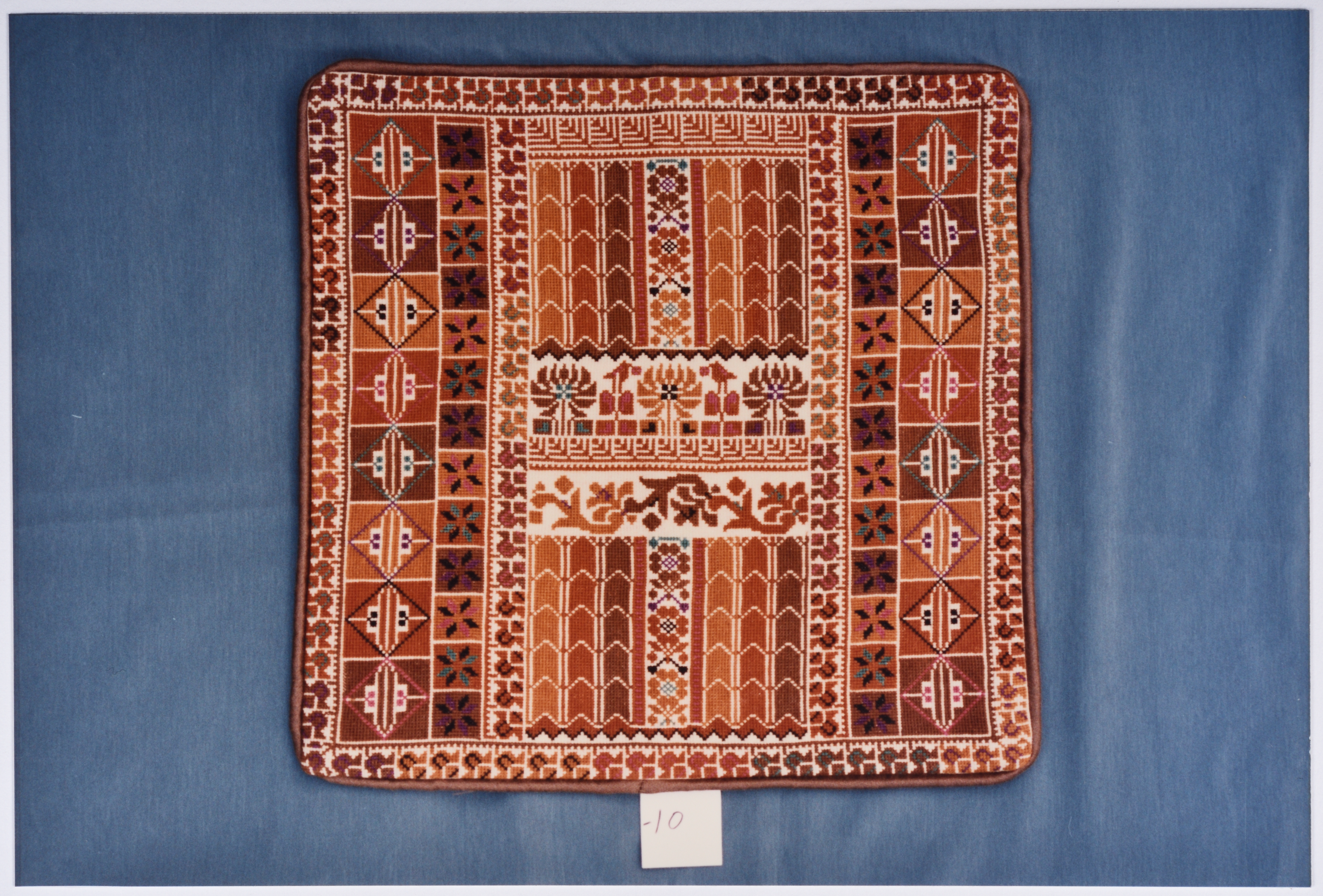 صورة ملونة، يظهر فيها أعمال تطريز يدوي فلسطيني من انتاج جمعية انعاش المخيم.