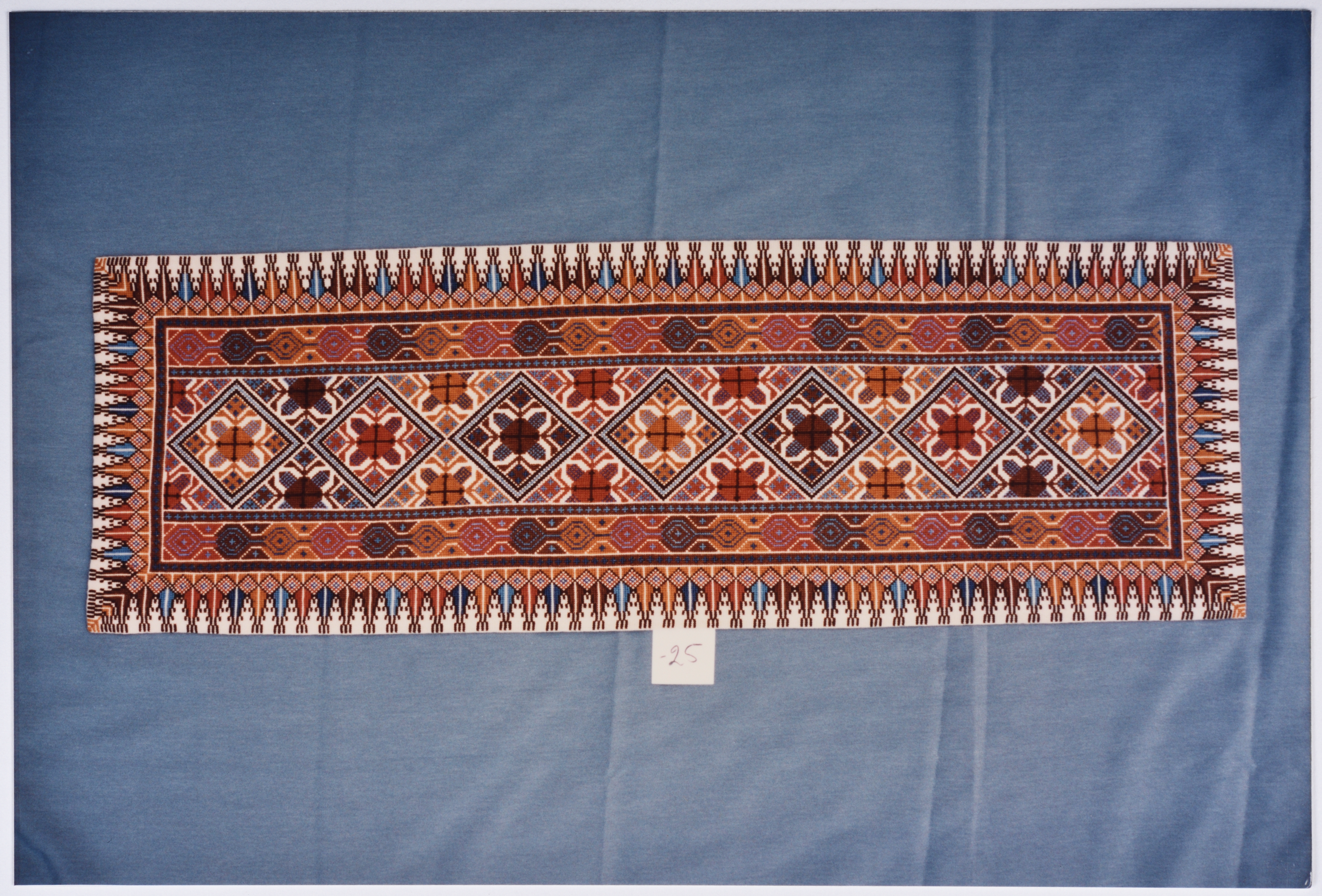صورة ملونة، يظهر فيها أعمال تطريز يدوي فلسطيني من انتاج جمعية انعاش المخيم.