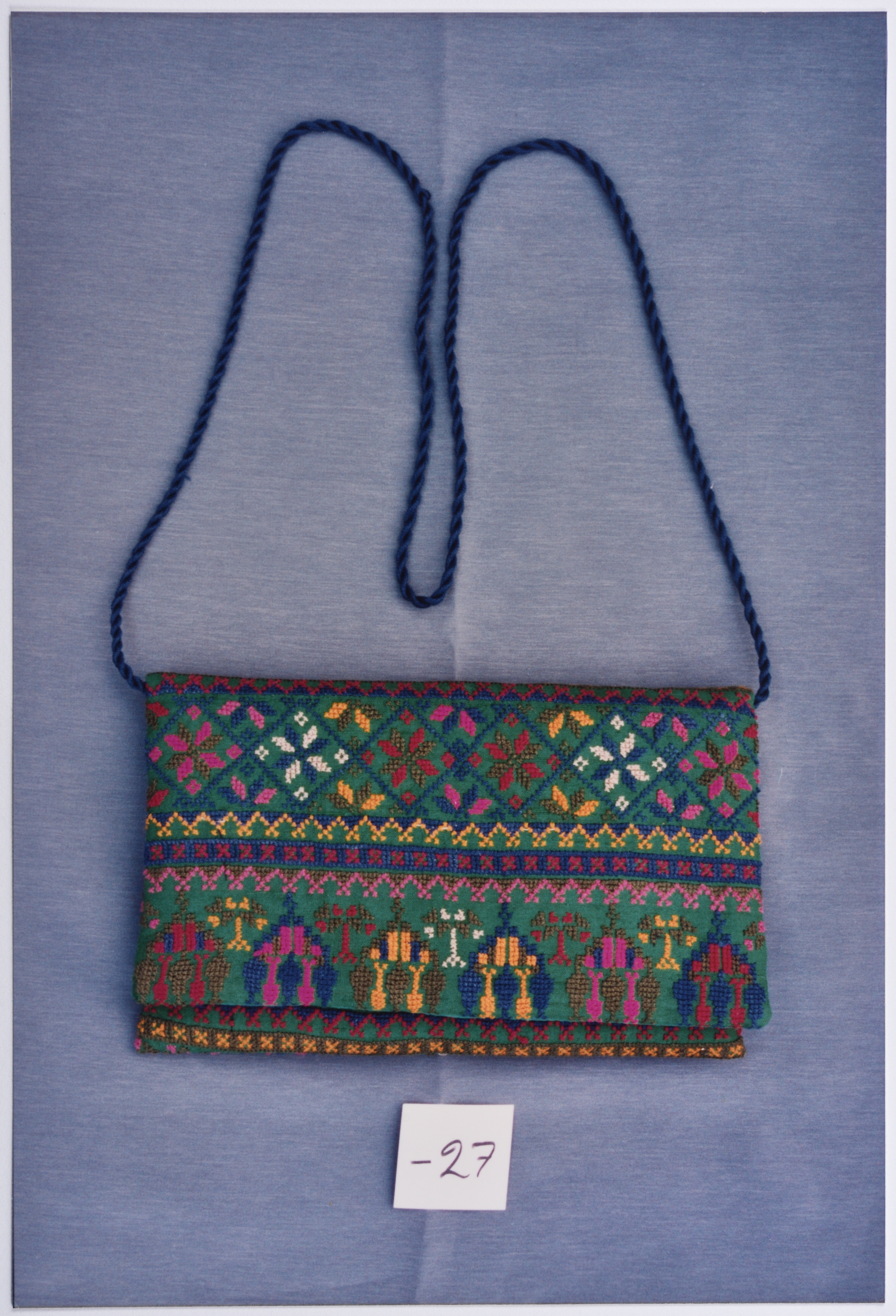 صورة ملونة، يظهر فيها أعمال تطريز يدوي فلسطيني من انتاج جمعية انعاش المخيم.
