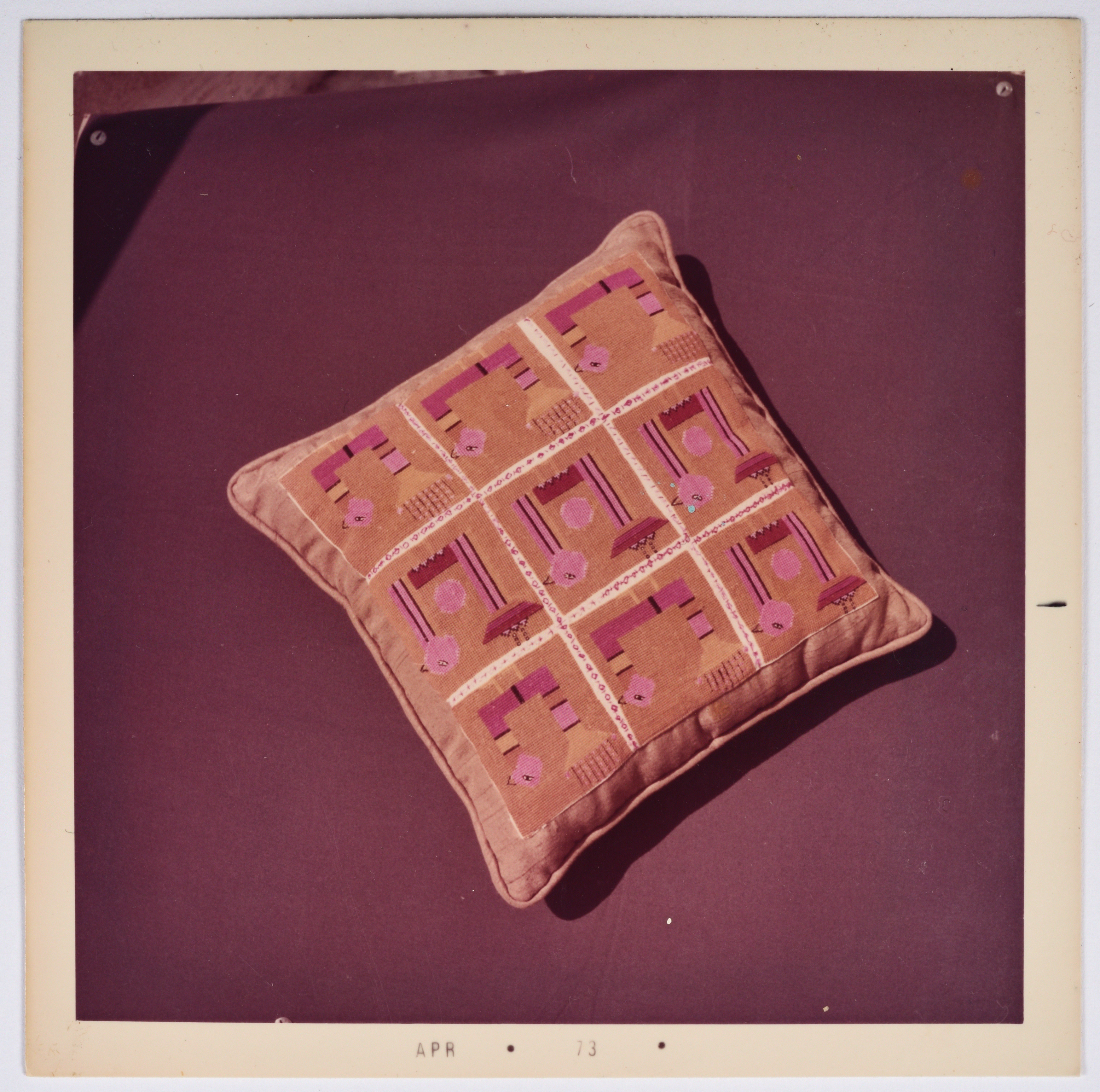 صورة ملونة، يظهر فيها أعمال تطريز يدوي فلسطيني من انتاج جمعية انعاش المخيم.