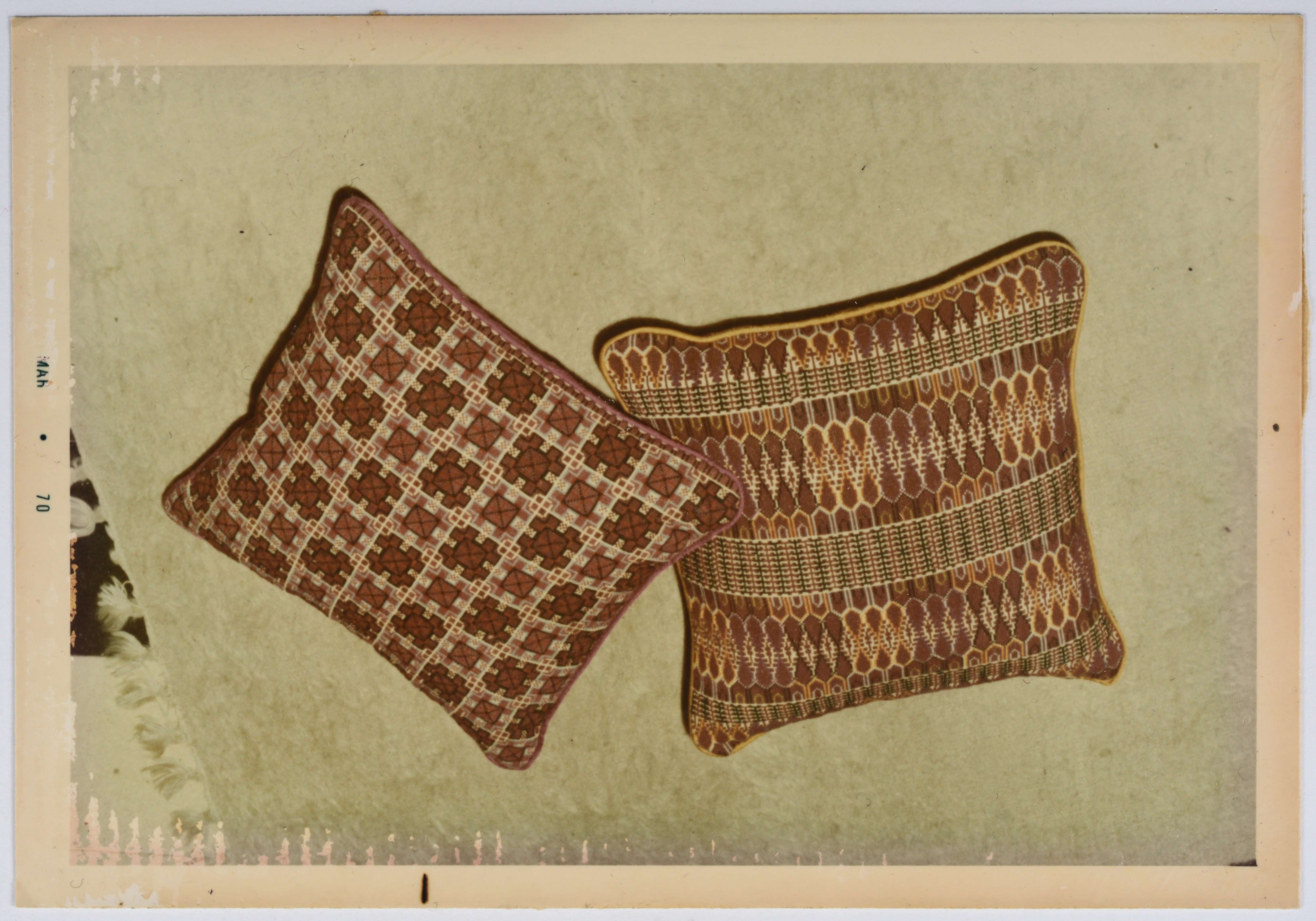 صورة ملونة، يظهر فيها أعمال تطريز يدوي فلسطيني من انتاج جمعية انعاش المخيم.