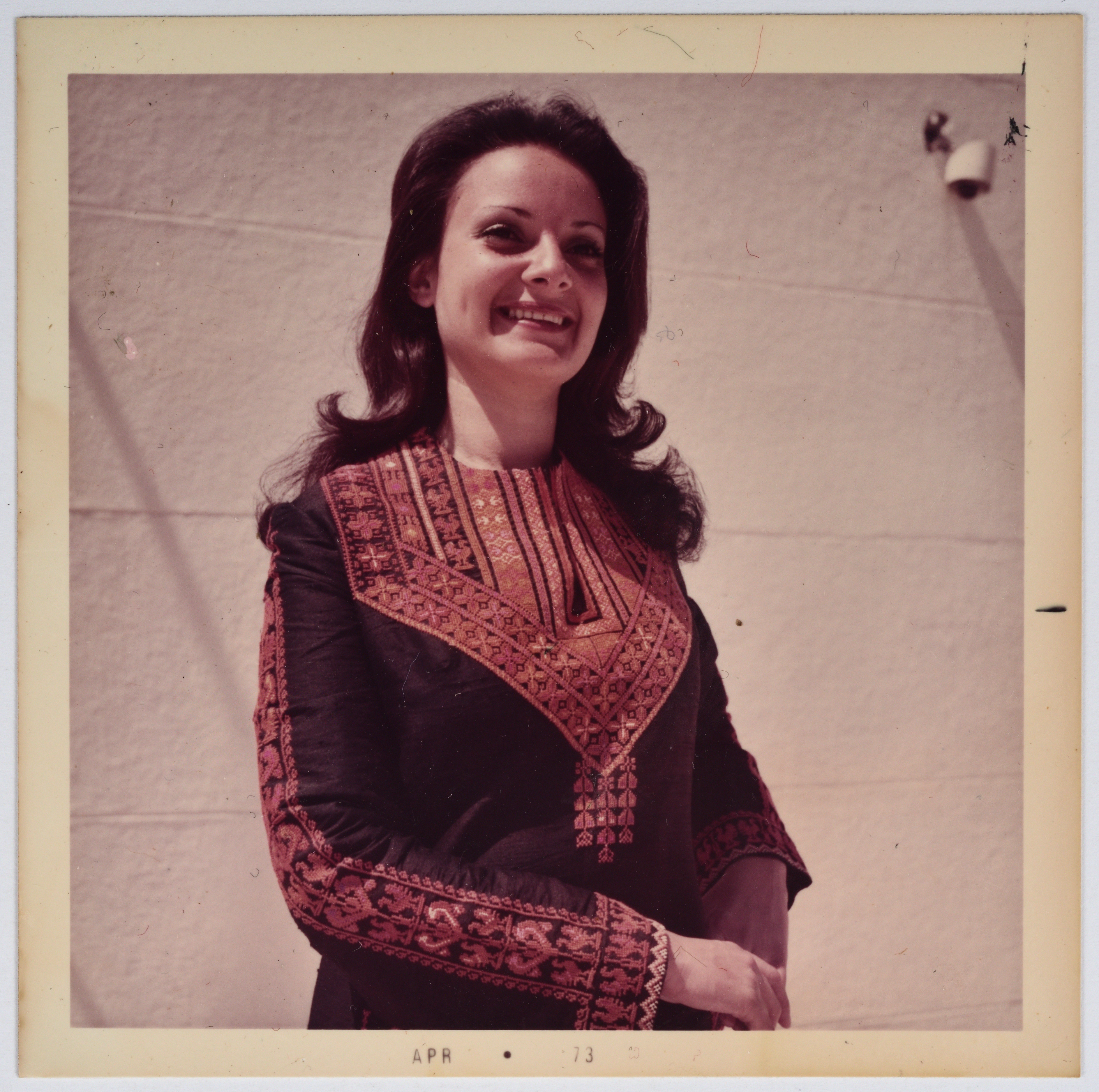 صورة ملونة، يظهر فيها أعمال تطريز يدوي فلسطيني من انتاج جمعية انعاش المخيم.