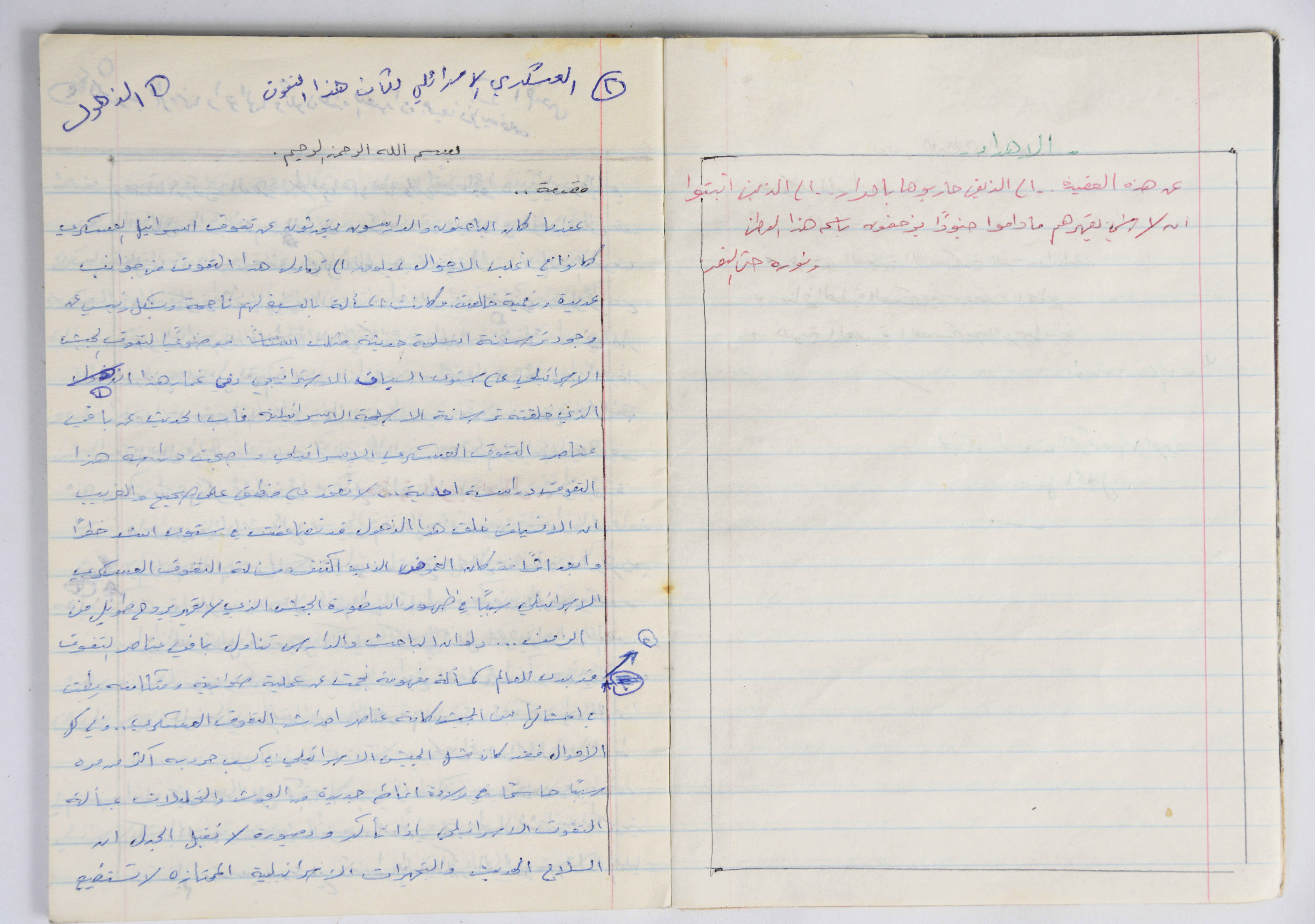 كراسة سجن بعنوان "عقيدة الحرب والقتال في الجيش الإسرائيلي" صادرة عن لجنة دراسات الحركة الأسيرة في سجن الخليل بتاريخ 3 أيار 1989، وهي الكراسة الأولى ضمن سلسلة دراسات "اعرف عن عدوك".