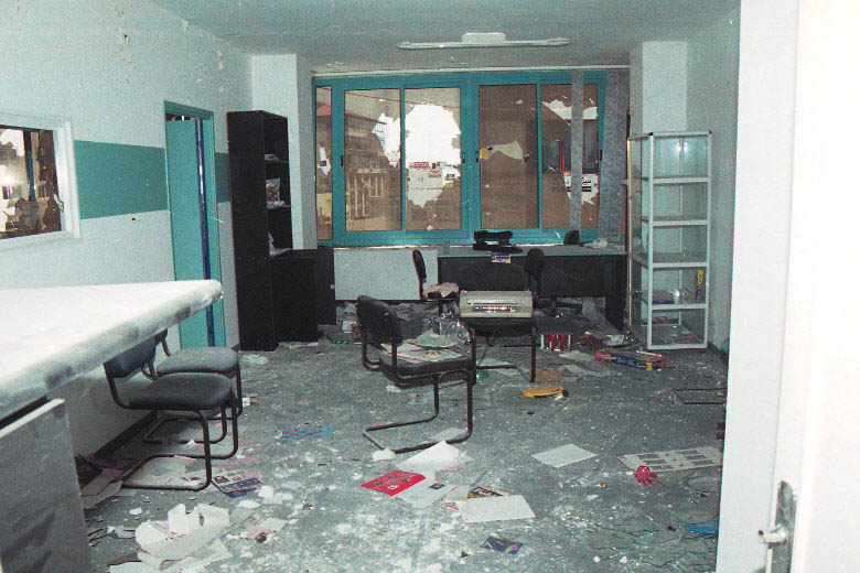 A photo showing the destruction of Ramallah as a result of the Israeli invasion in 2002