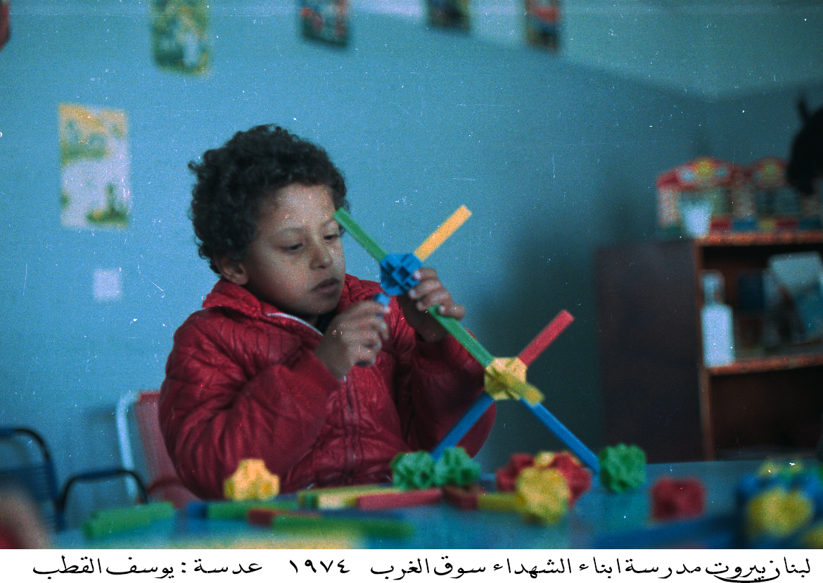 صورة ملونة، يظهر فيها أطفال من ابناء شهداء مدرسة سوق الغرب عام 1974.