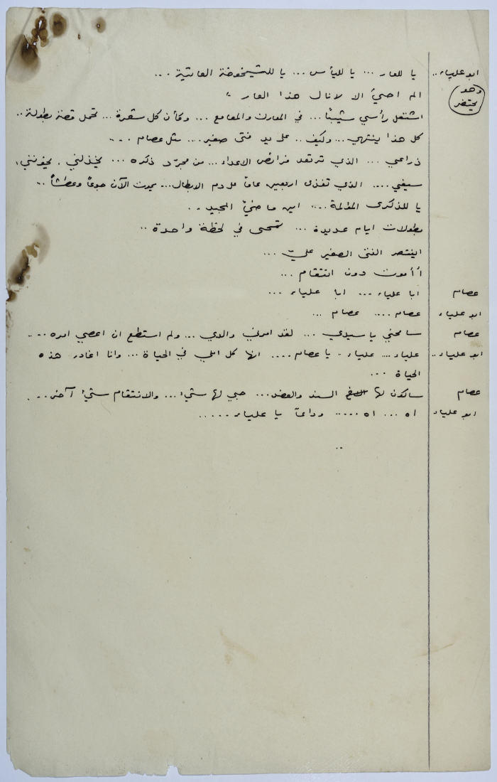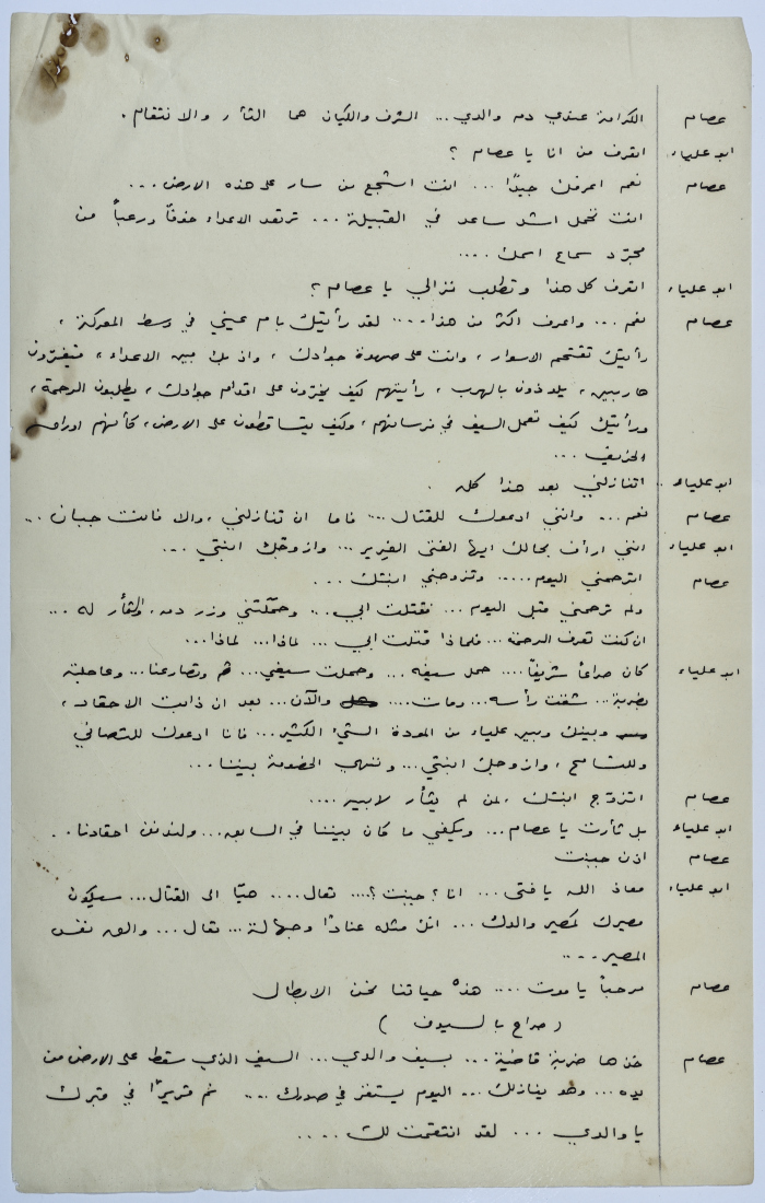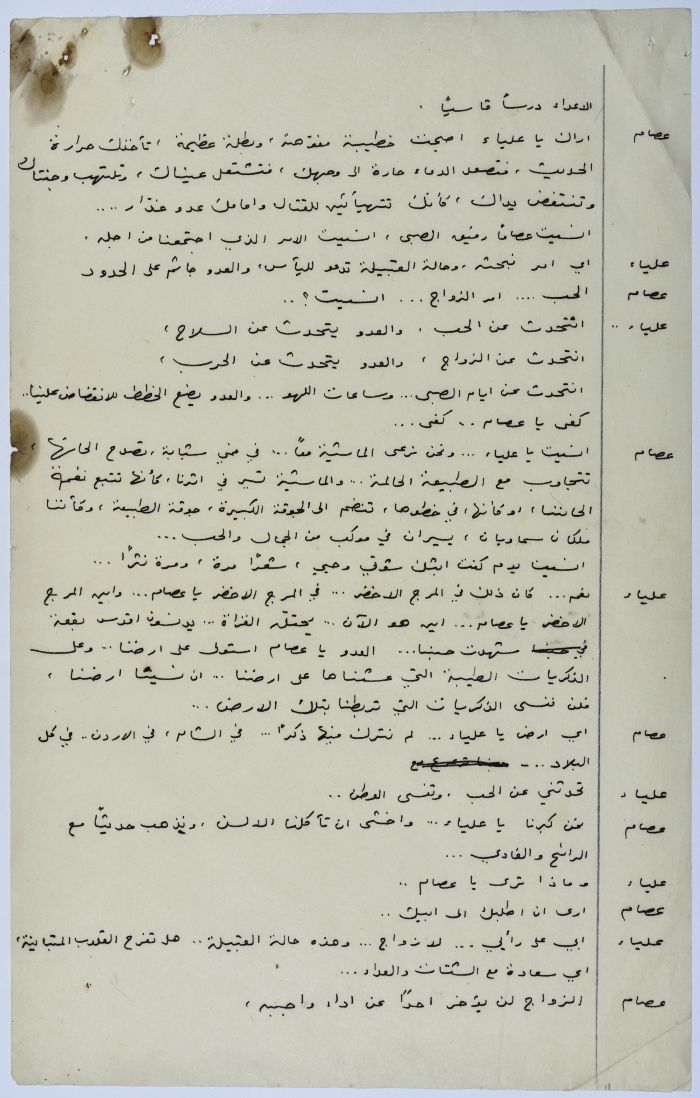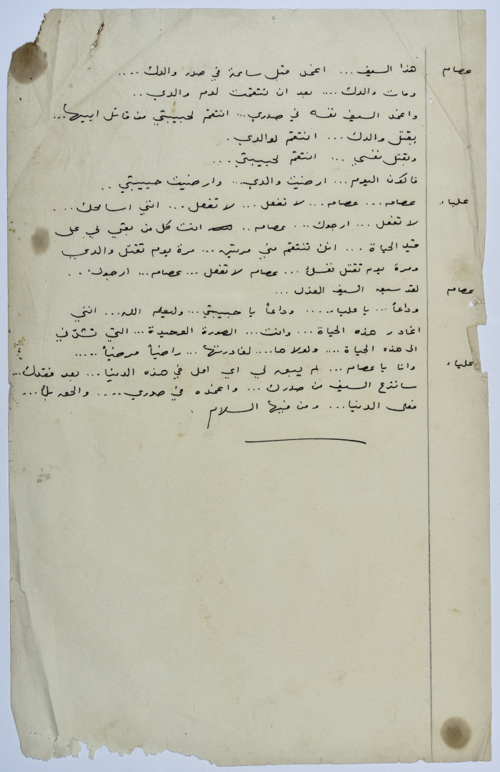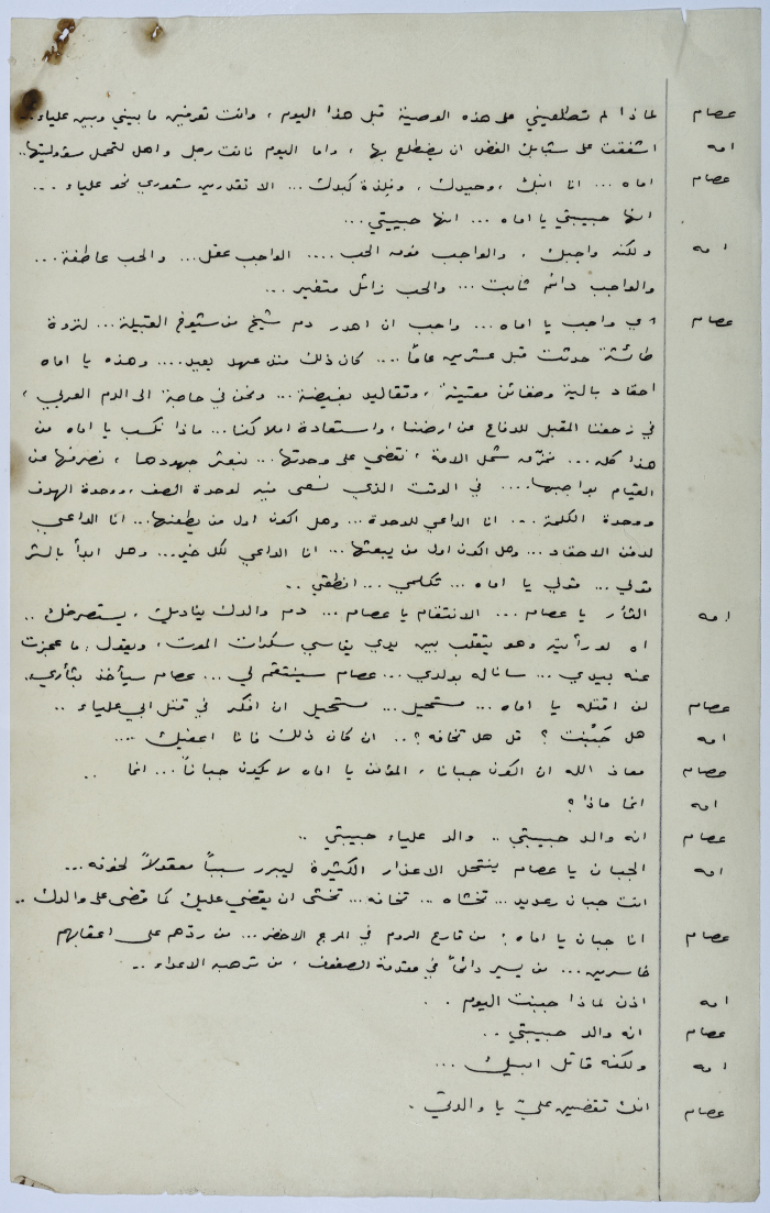 . مادة مطبوعة باللغة العربية، وهي قصة قصيرة كتبها يعقوب الشوملي، بعنوان "صراع بين الحب والواجب" حلقات مسلسلة من التاريخ العربي