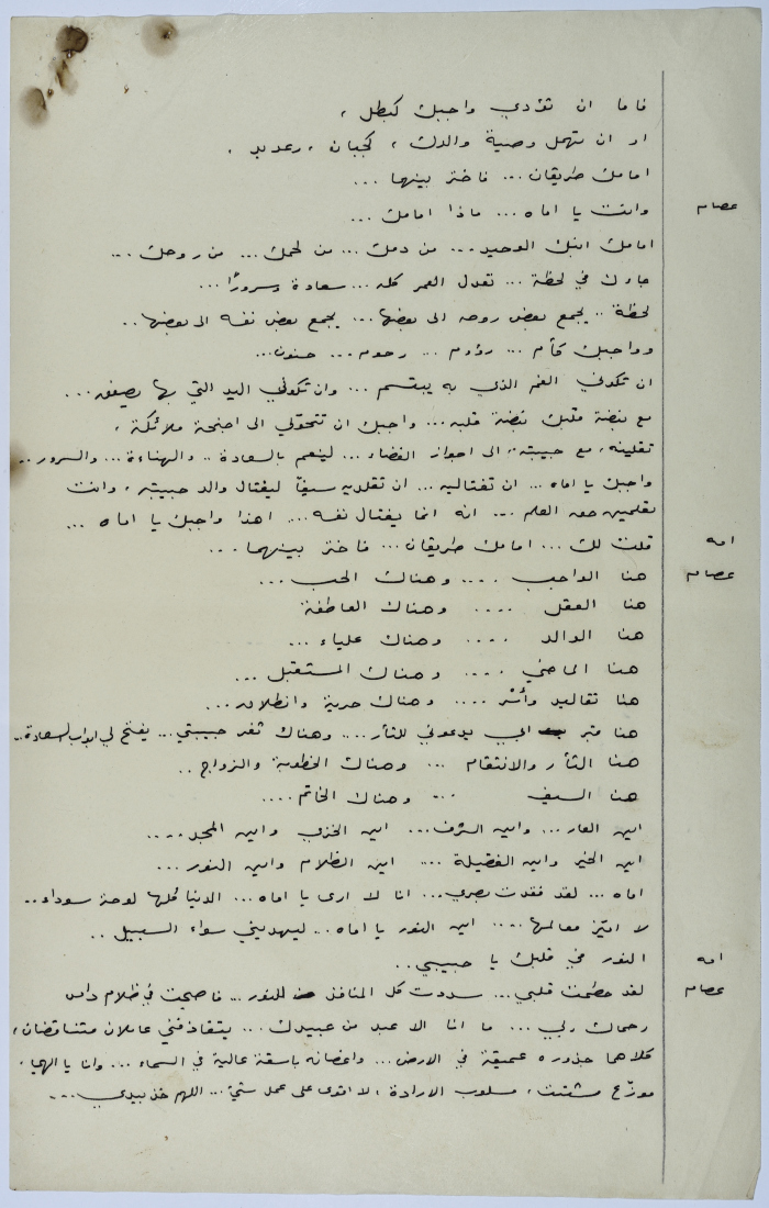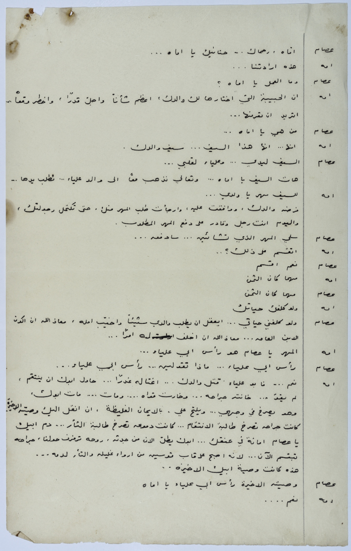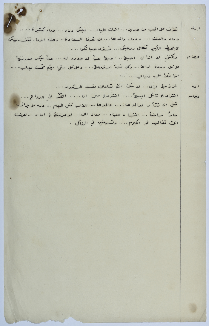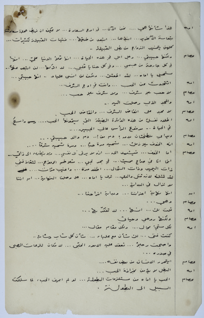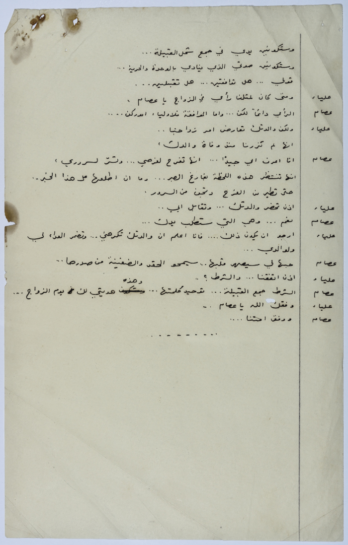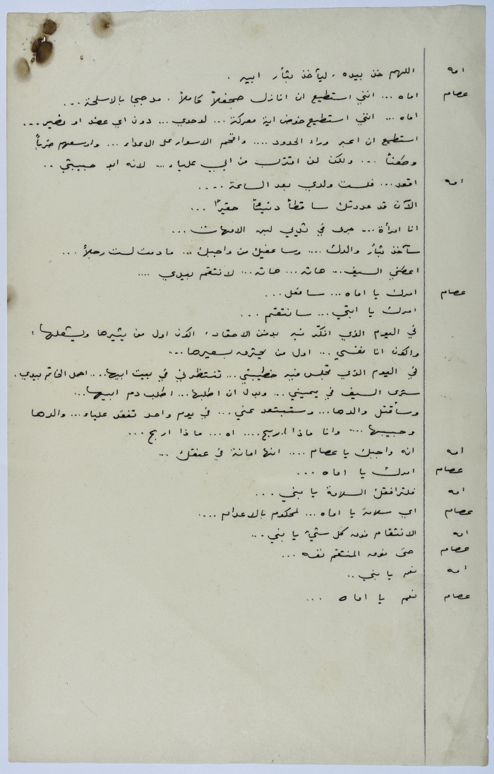 . مادة مطبوعة باللغة العربية، وهي قصة قصيرة كتبها يعقوب الشوملي، بعنوان "صراع بين الحب والواجب" حلقات مسلسلة من التاريخ العربي