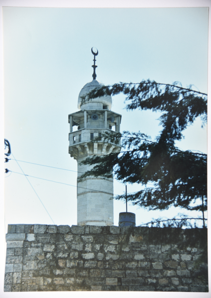 صورة ملونة لمسجد العيص في سعير، بناه السلطان المملوكي قلاوون وتم إعادة توسعته في عهد السلطان العثماني عبد الحميد ثم في عهد الانتداب البريطاني، وآخر توسعة للمسجد تمت سنة 1986. وُجدت الصورة ضمن مجموعة مركز السنابل للدراسات والتراث الشعبي.