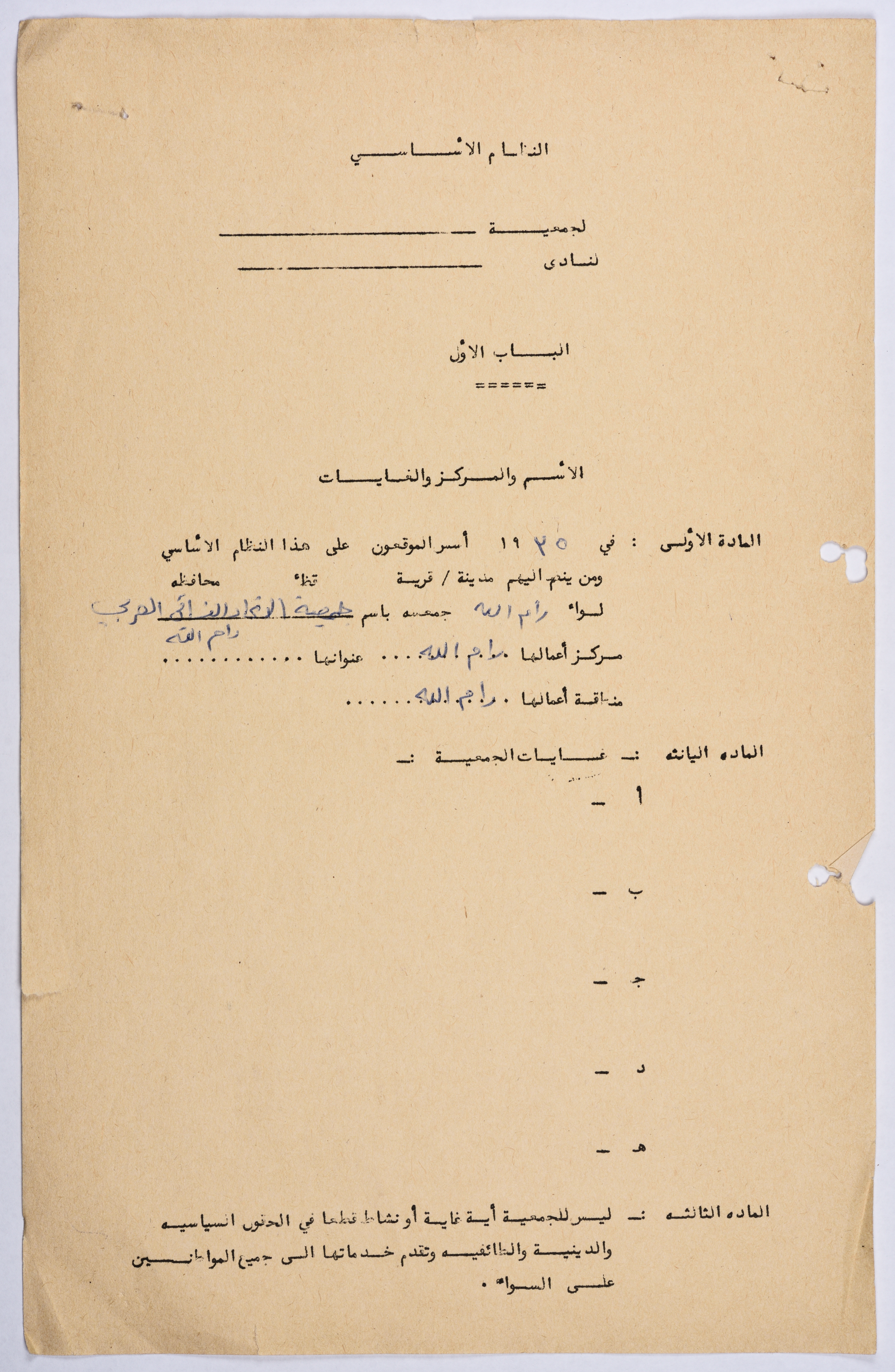 Rules of Procedure of the Arab Women's Union Society - Ramallah in 1935