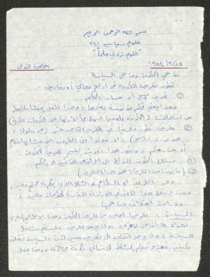 "Political Sciences", a Summary by Sameeh Hammoudeh, 24 March 1984