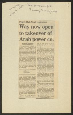 "Way Now Open to Takeover of Arab Power Co.", a Clipping from the Jerusalem Post, 1981