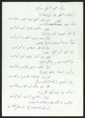 "رثاء محمد صبحي منّاع"، لحنا إبراهيم