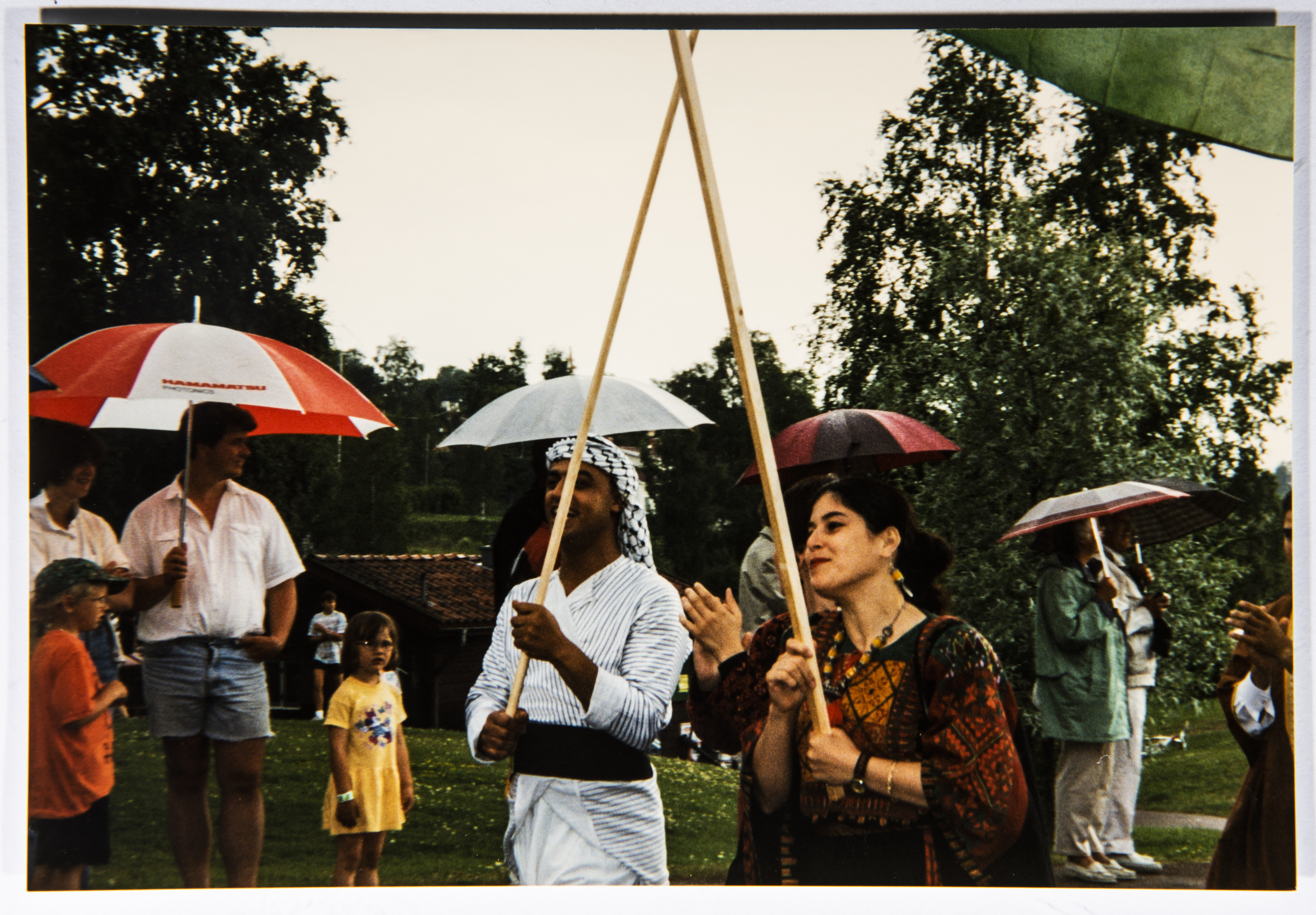 صورة ملونة من رحلة فرقة الفنون الشعبية إلى البرتغال لتقديم عروض فنيّة في "إكسبو البرتغال" عام 1998.