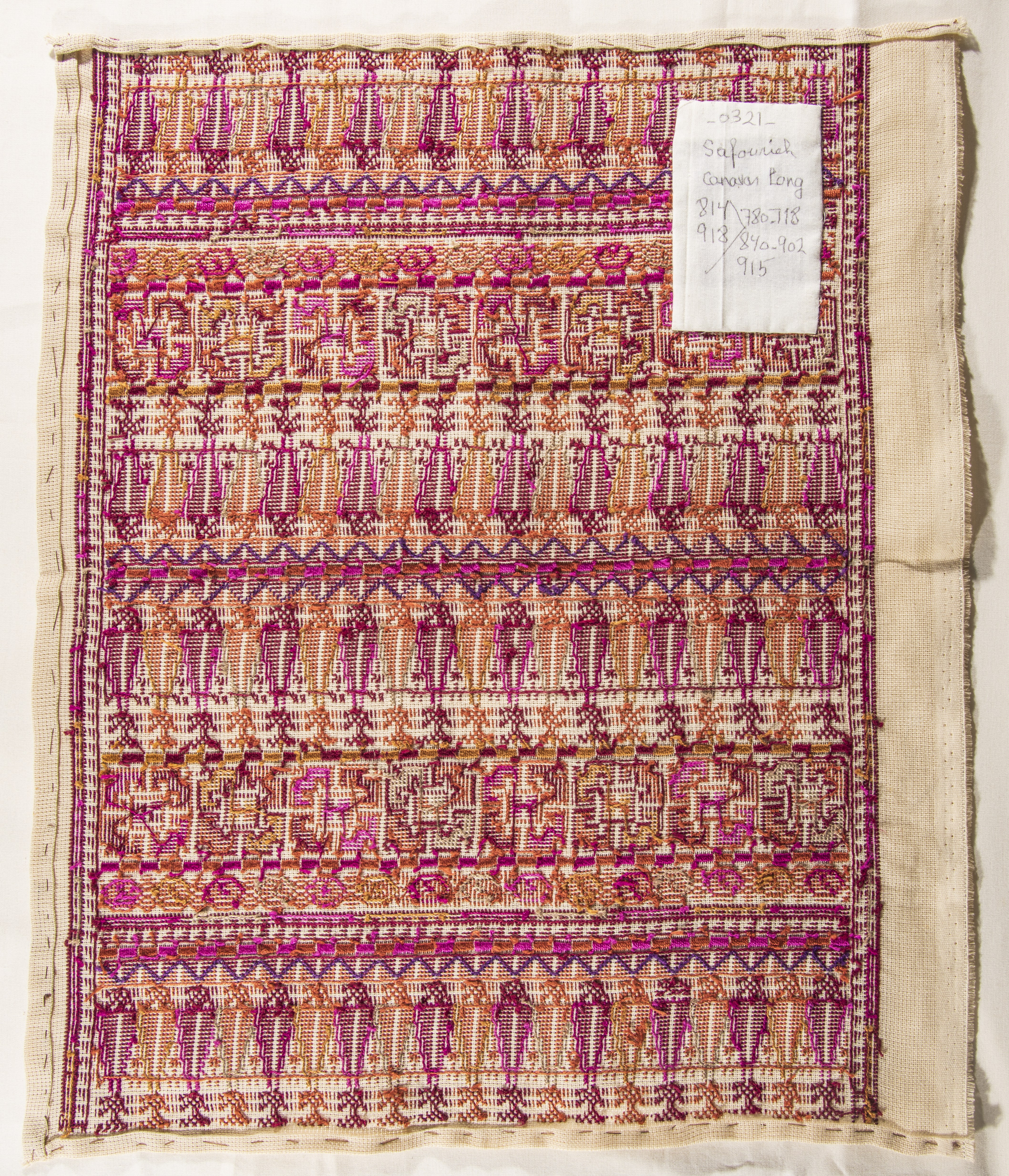 صورة تُظهر قطعة مُطرزة، أنتجتها نساء جمعية إنعاش المخيم الفلسطيني في لبنان خلال سبعينيات القرن العشرين، وقد تأسست الجمعية عام 1968 على يد هيكات الخوري ابنة بشارة الخوري، رئيس الجمهوريّة اللبنانيّة الأوّل بعد الاستقلال، ومجموعة من اللبنانيات بهدف كسر عزلة المخيمات الفلسطينية، وتمكين اللاجئات وإعانتهن، عقب أن أوصد القانون اللبناني باب سوق العمل في وجه أزواجهن، كما حظيت الجمعية، في مرحلة لاحقة، بدعم سيرين الحسيني وسيدات فلسطينيات أخريات.