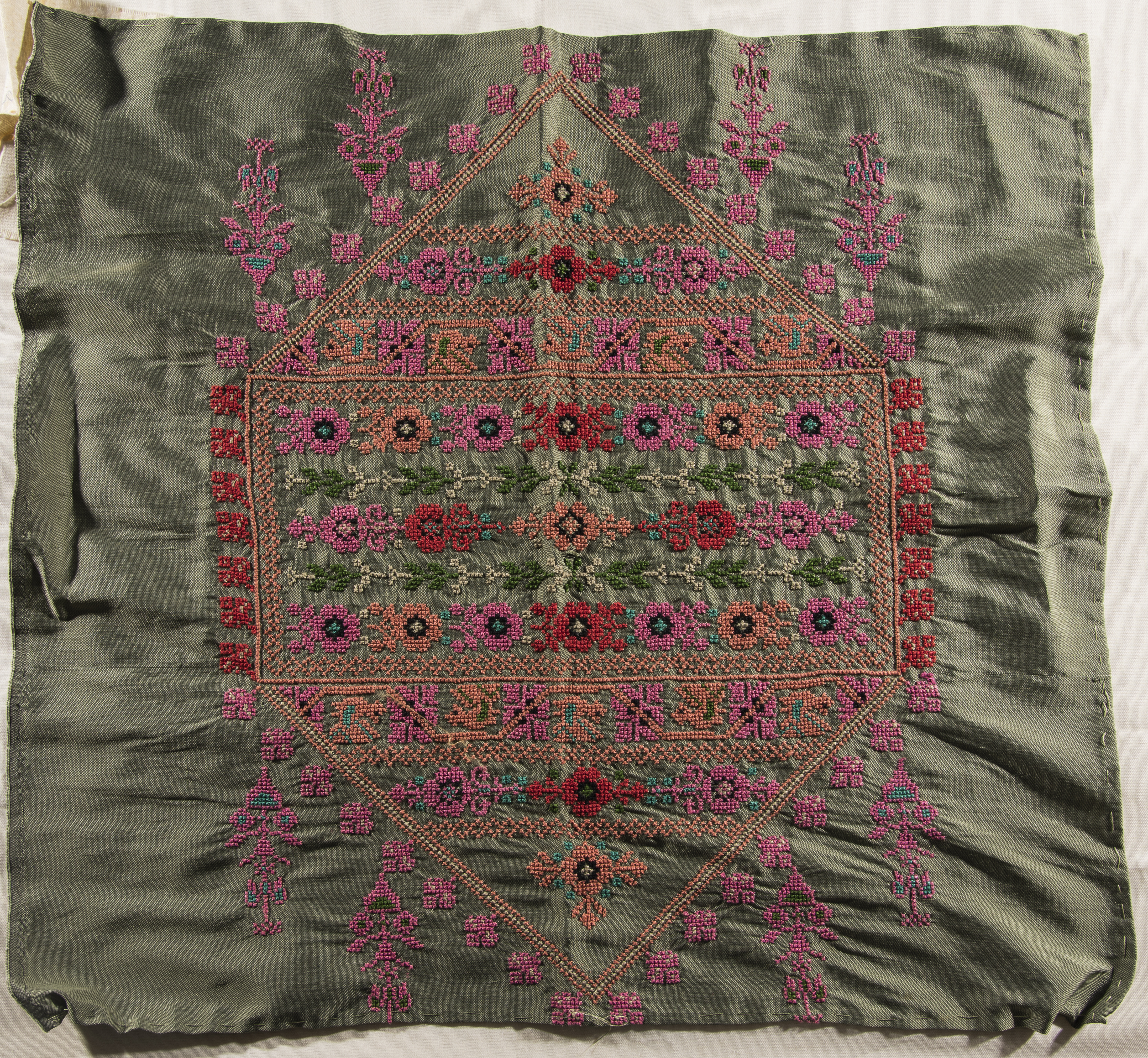 قطعة مُطرزةٌ أنتجتها نساء جمعية إنعاش المخيم، لبنان، سبعينيات القرن العشرين