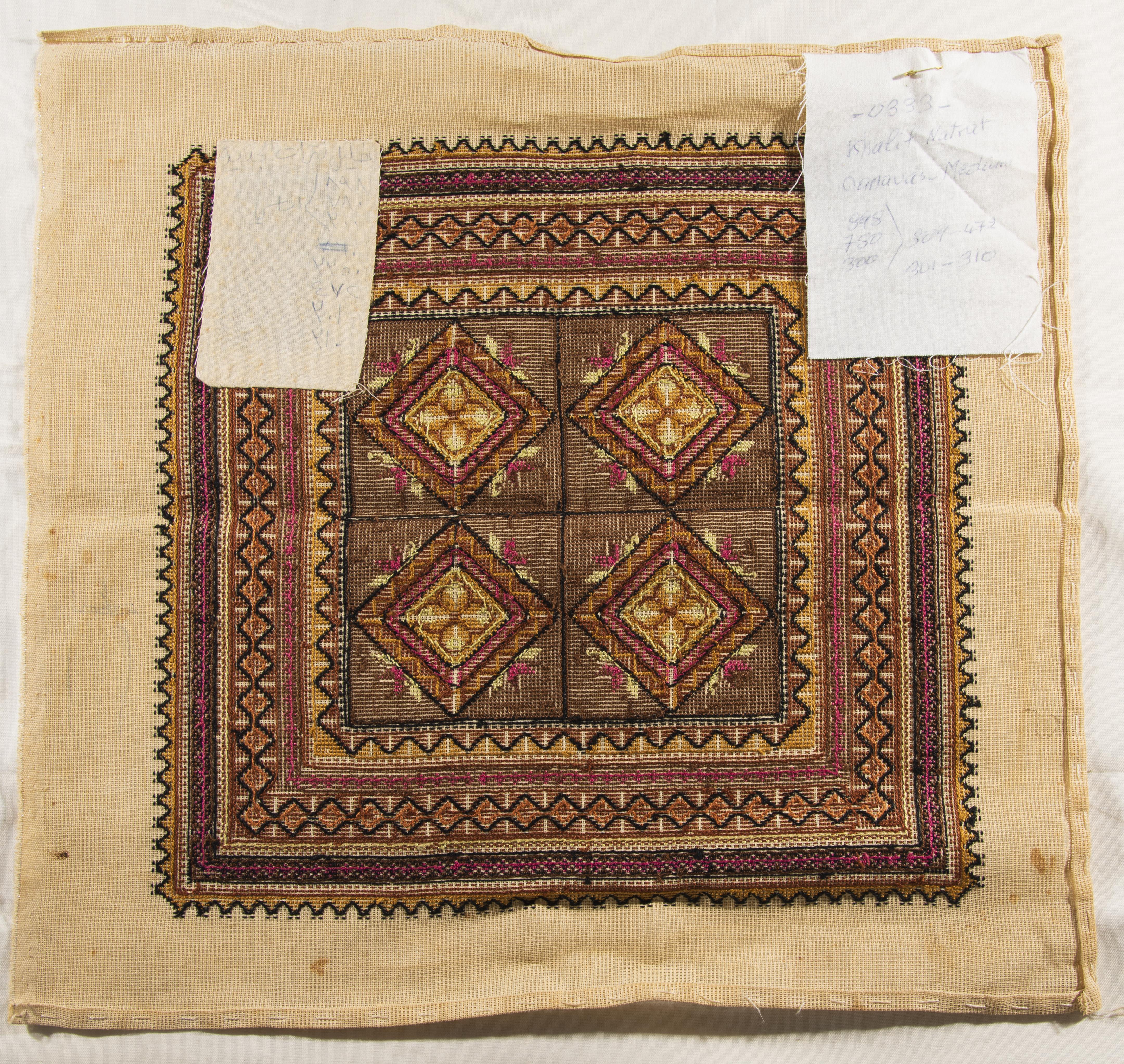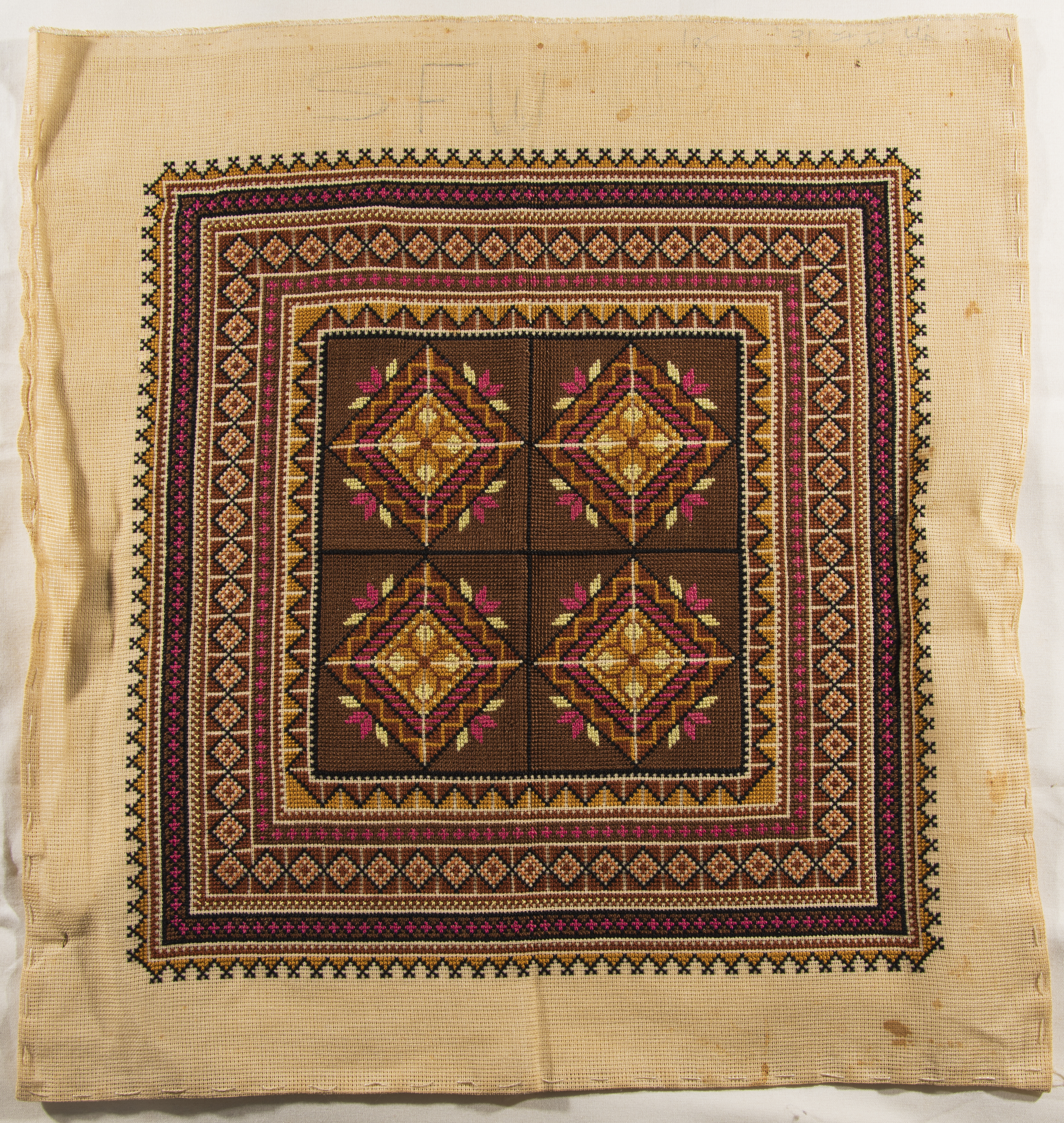قطعة مُطرزةٌ أنتجتها نساء جمعية إنعاش المخيم، لبنان، سبعينيات القرن العشرين