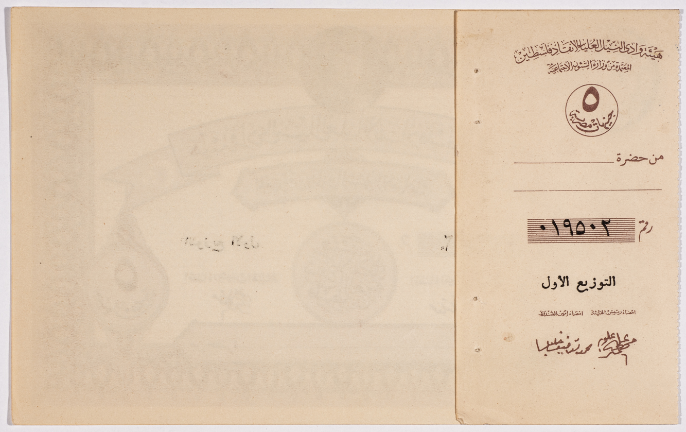 قسيمة "تبرع لإنقاذ فلسطين العربية" صدرت عن "هيئة وادي النيل العليا لإنقاذ فلسطين"