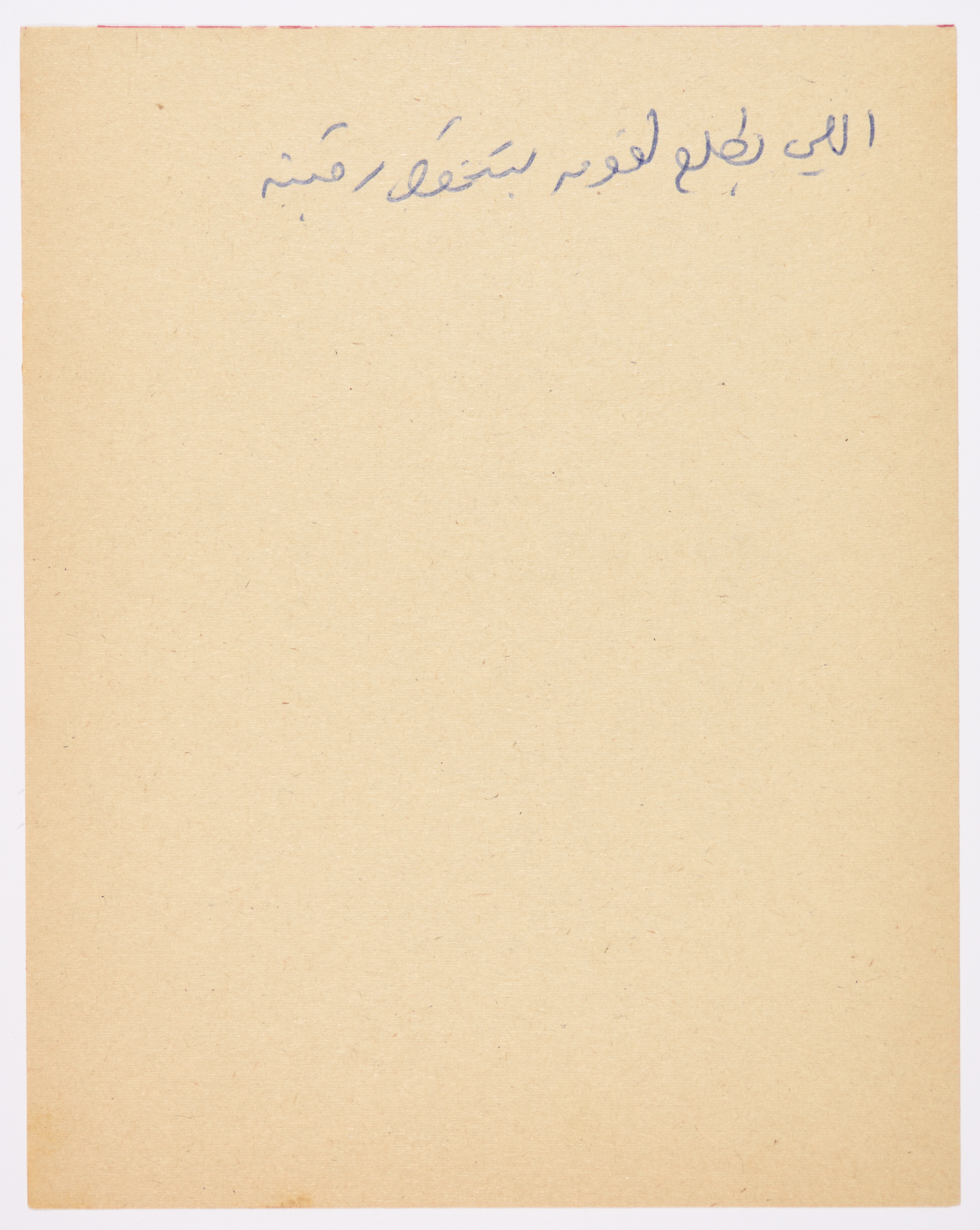 Palestinian researcher Nabil ‘Alqam recorded this popular proverb on a scrap of paper as a part of a larger collection ‘Alqam built up during his tenure as a teacher.