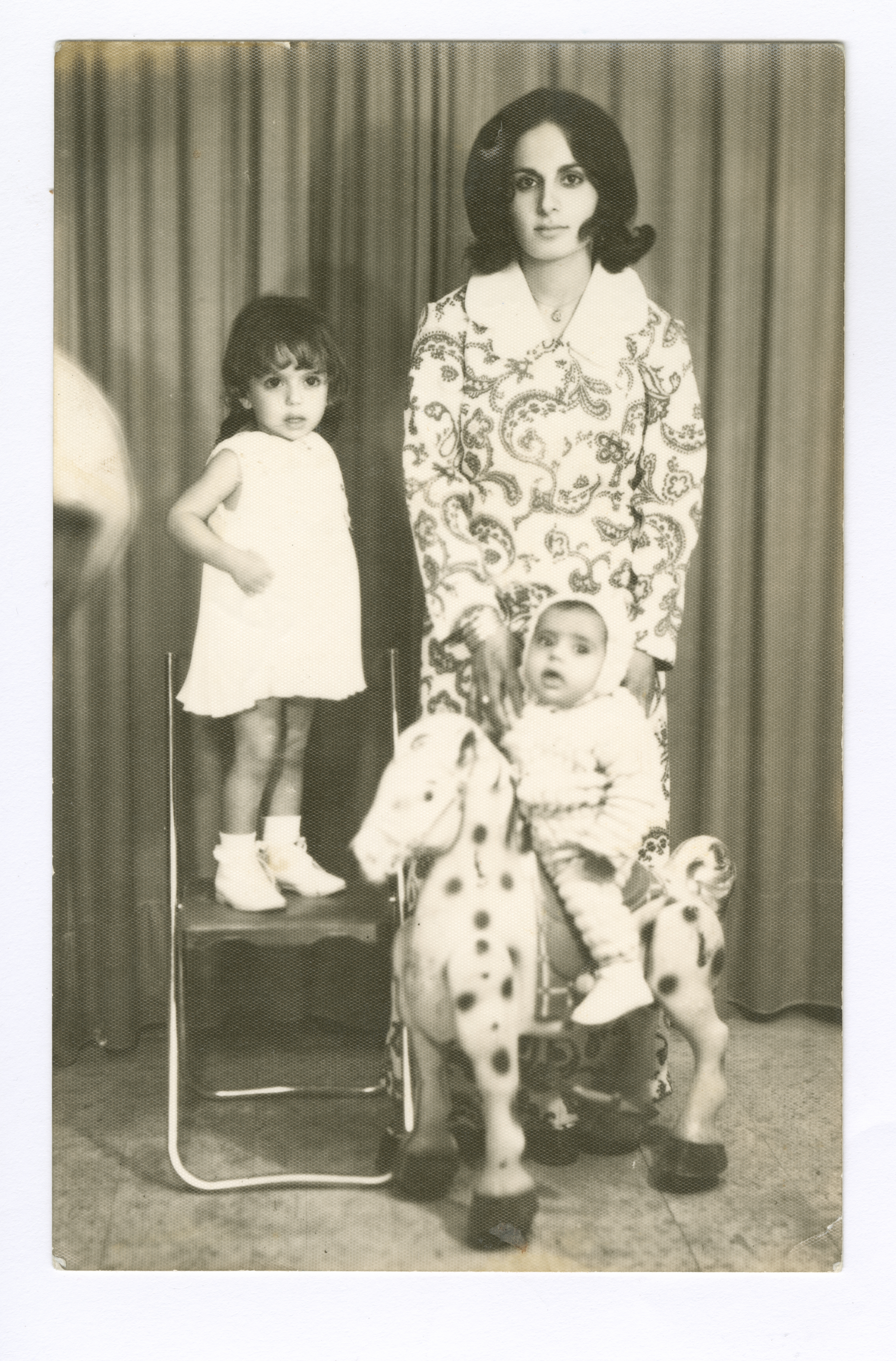 Taken during the period from 1980 to 1985, this photograph shows Basma Sweiti with her children in Amman.
