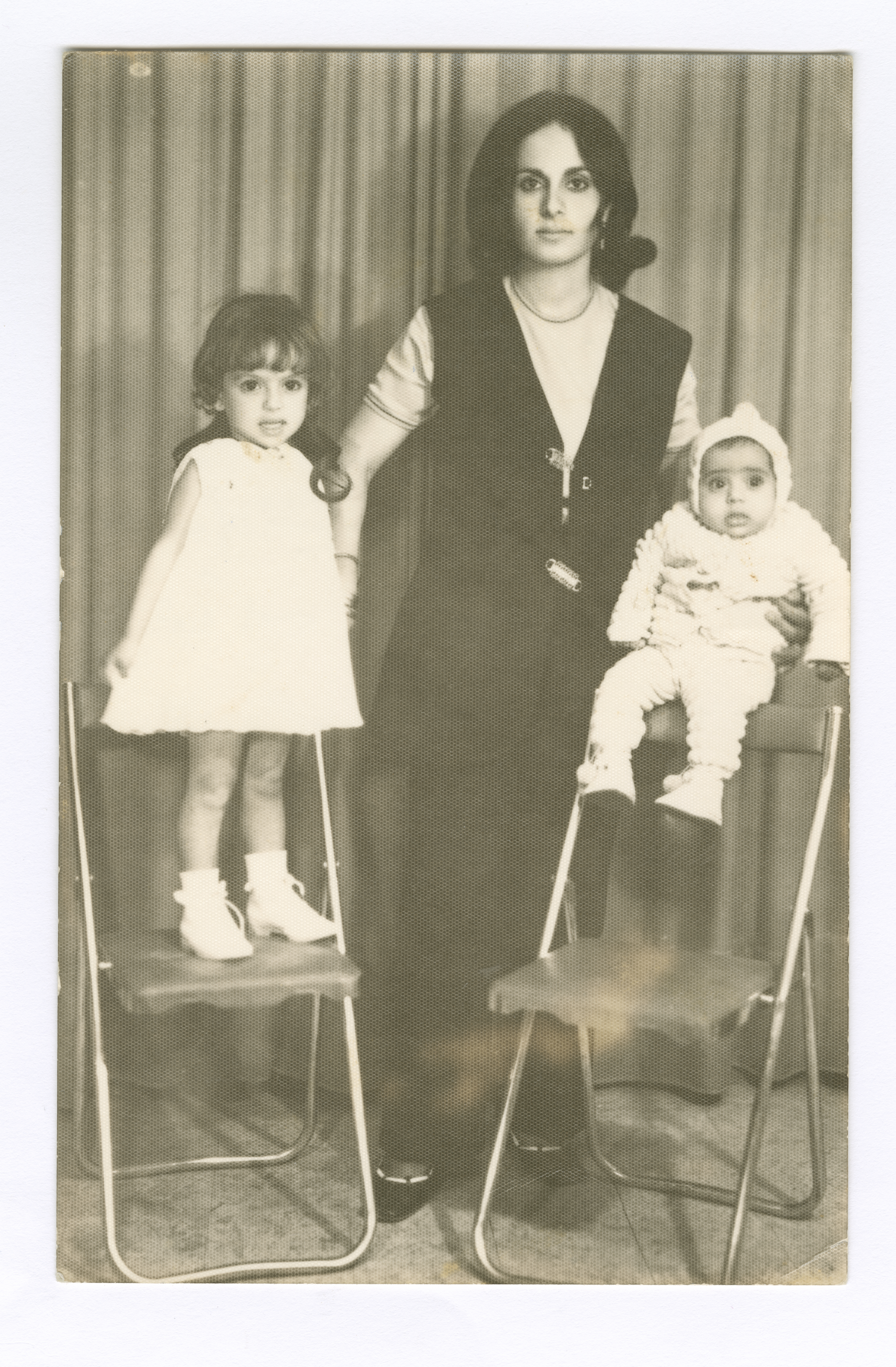 Taken during the period from 1980 to 1985, this photograph shows Basma Sweiti with her children in Amman.