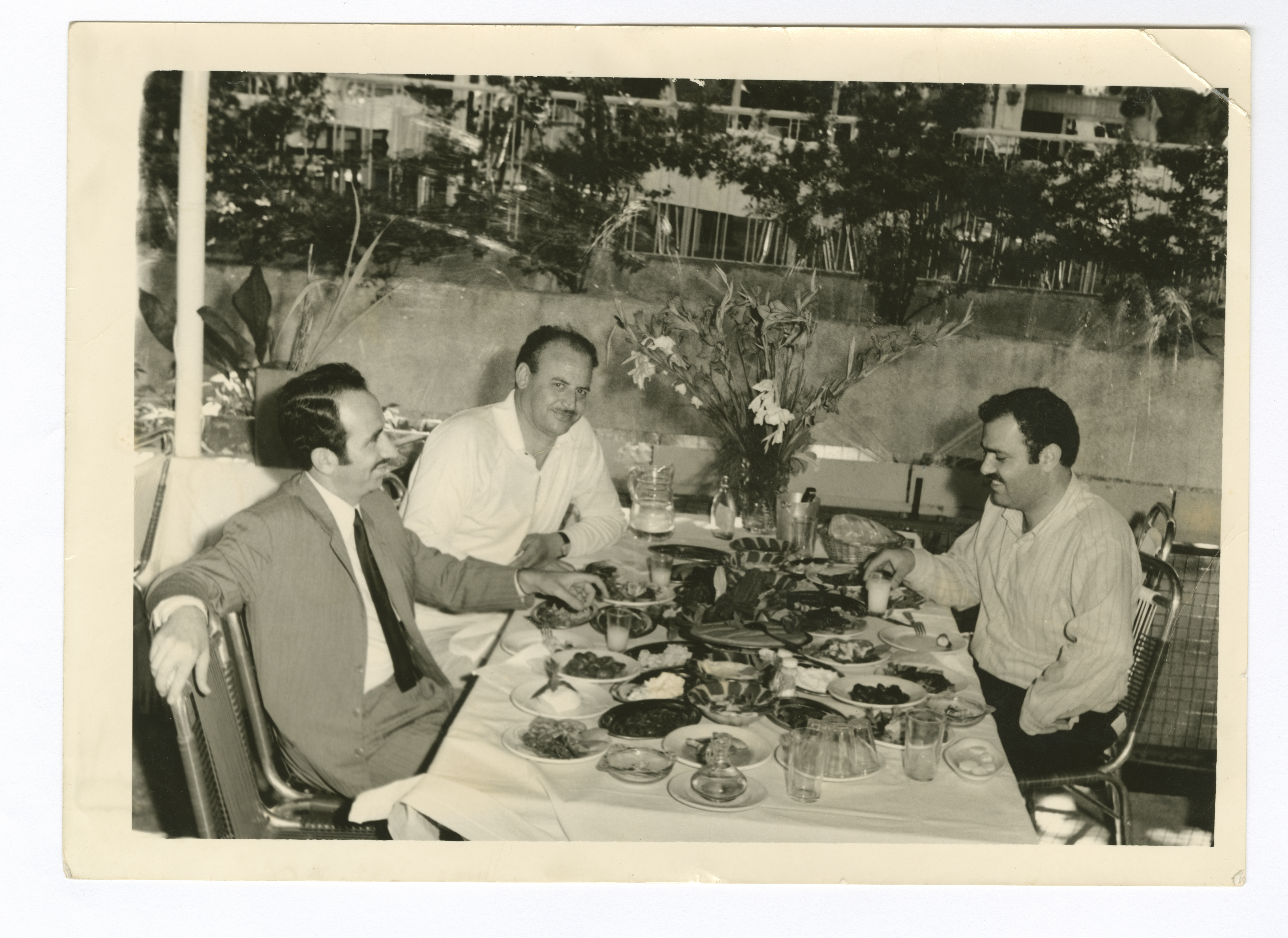Taken in the 1970s, this photograph shows Yasser Amro with his friends at a restaurant in Amman.