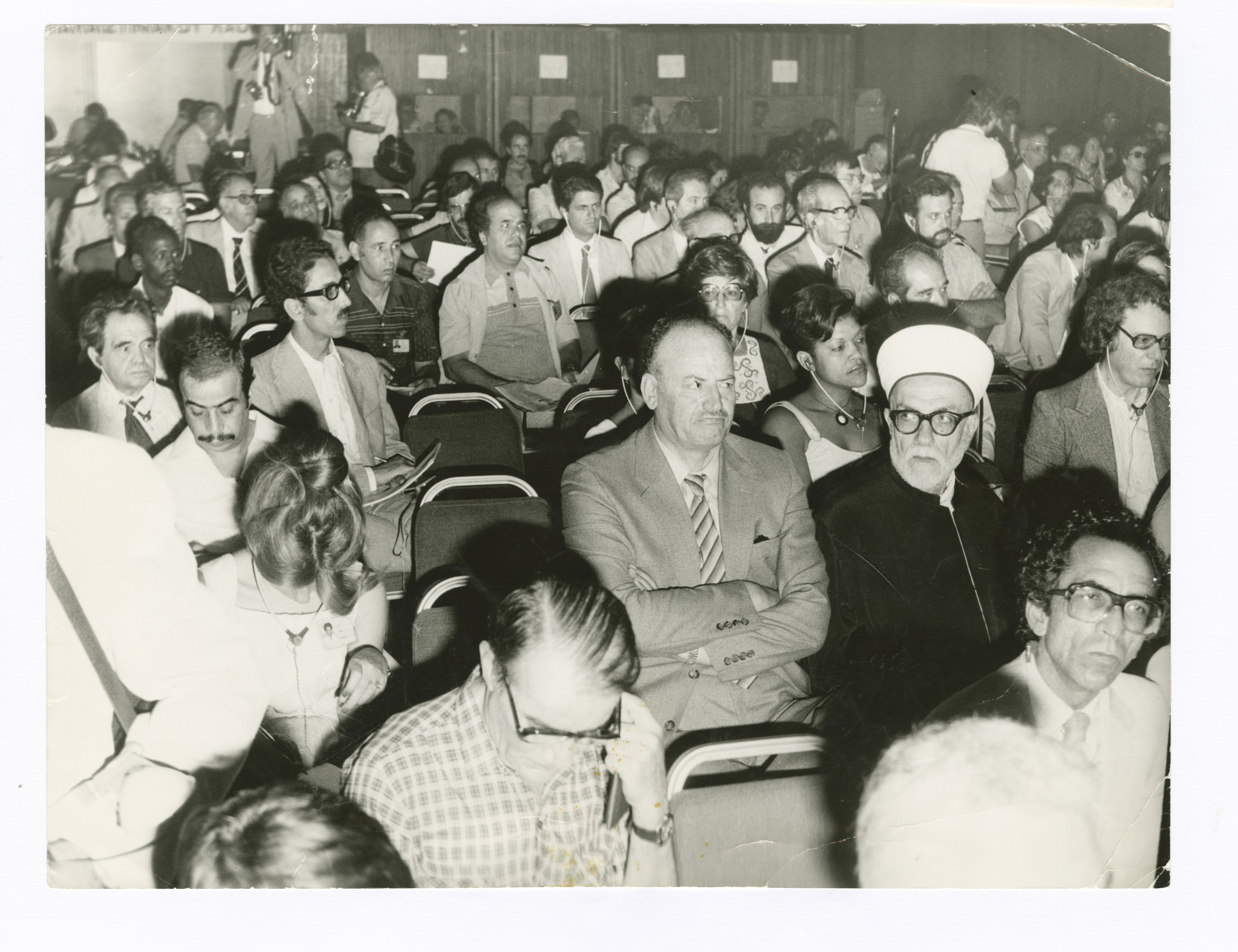 Taken in 1969, this photograph shows a part of the Afro-Asian Solidarity Conference, which was held in Cairo. Appearing in the middle of the photograph is Yasser Amro, a member of the Palestine Liberation Organisation's Executive Committee, and next to him from the right is Sheikh Abd al-Hamid al-Sayih.