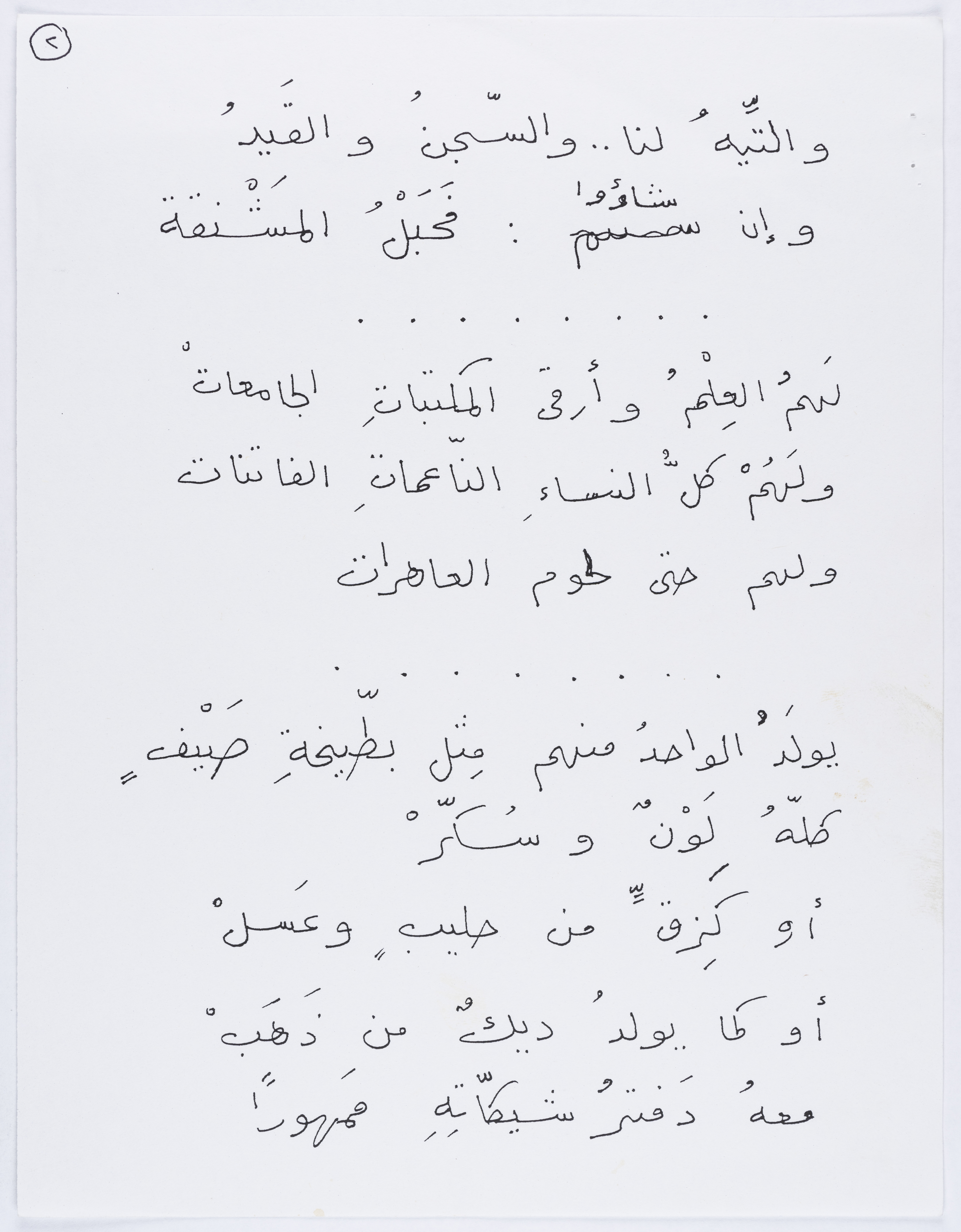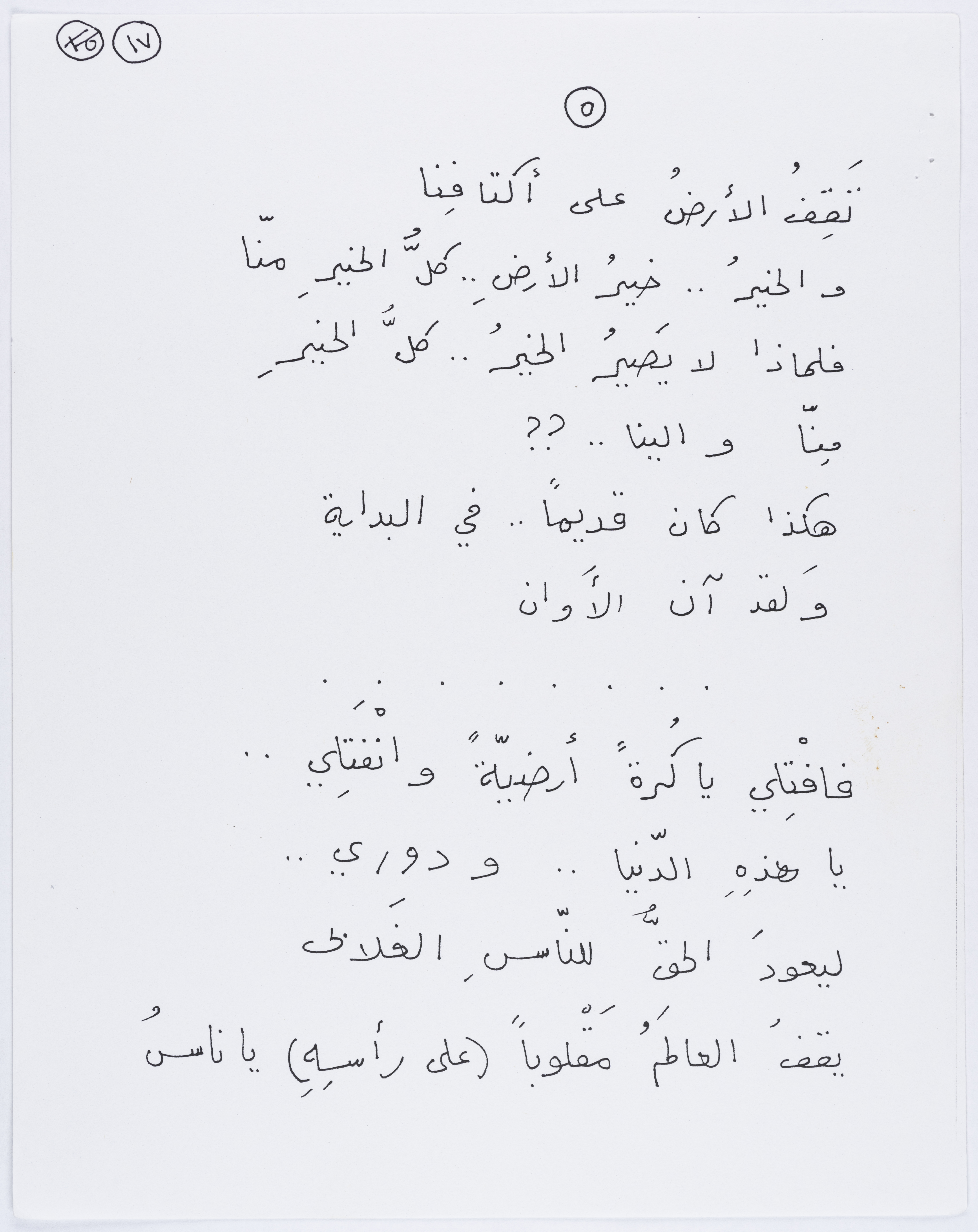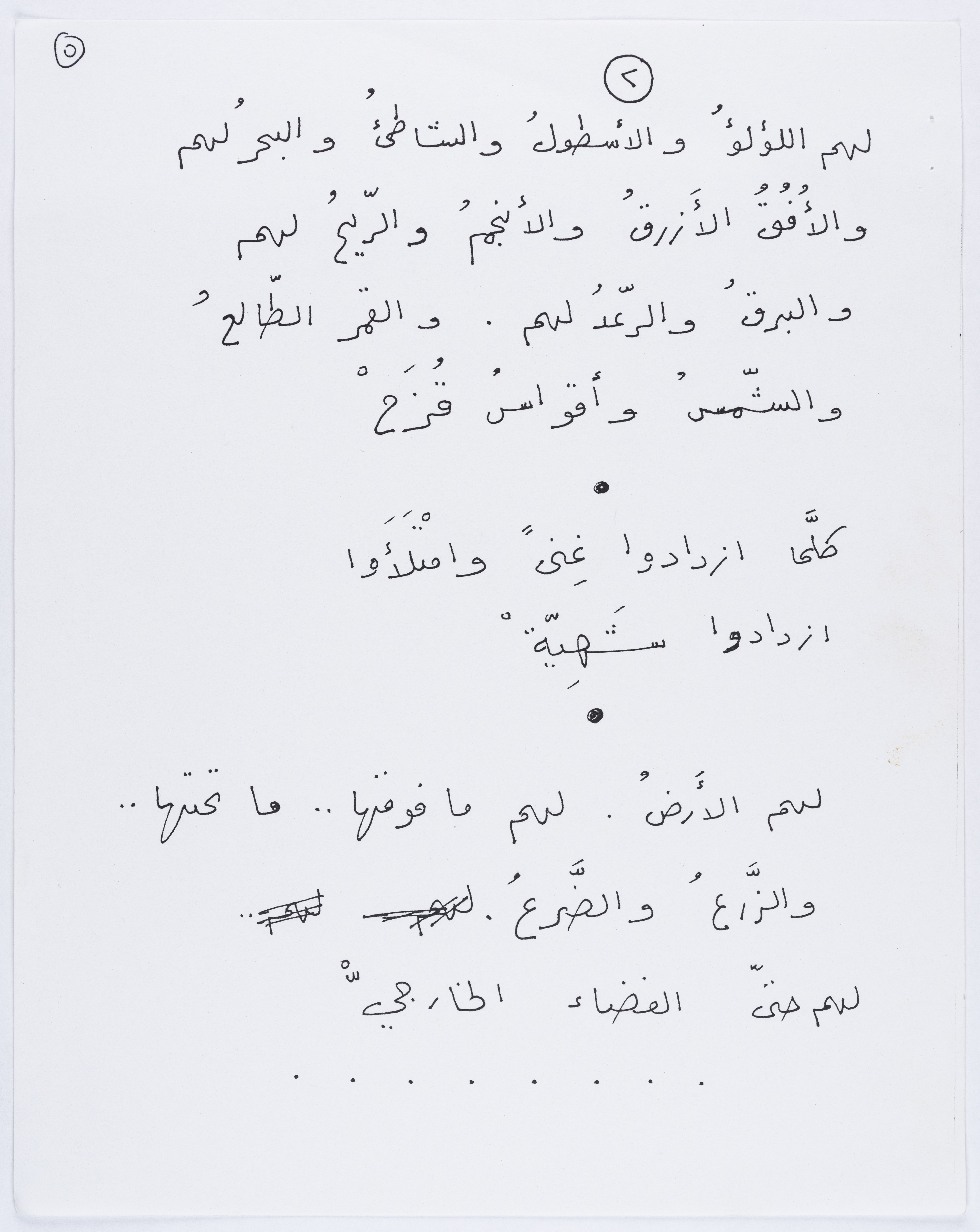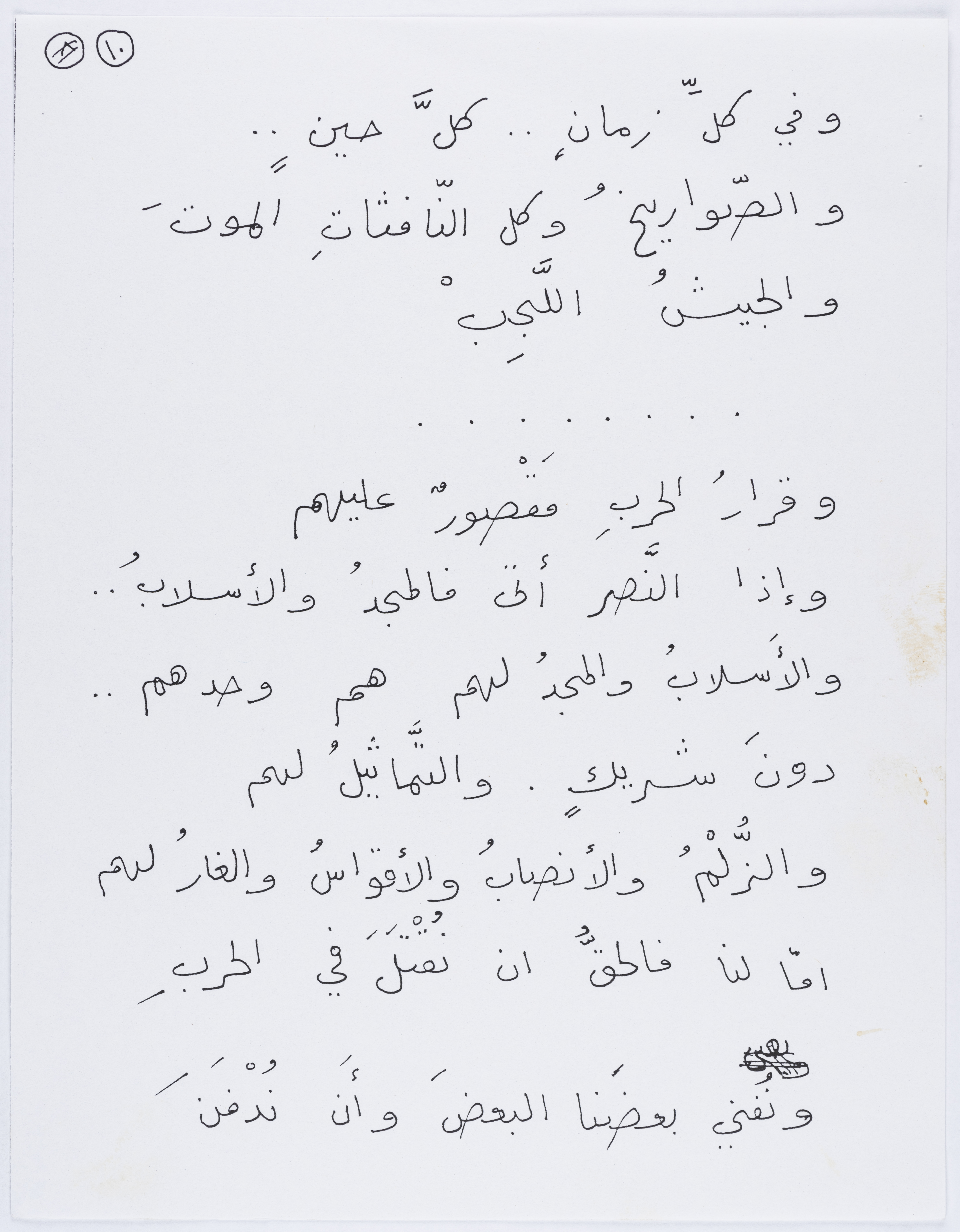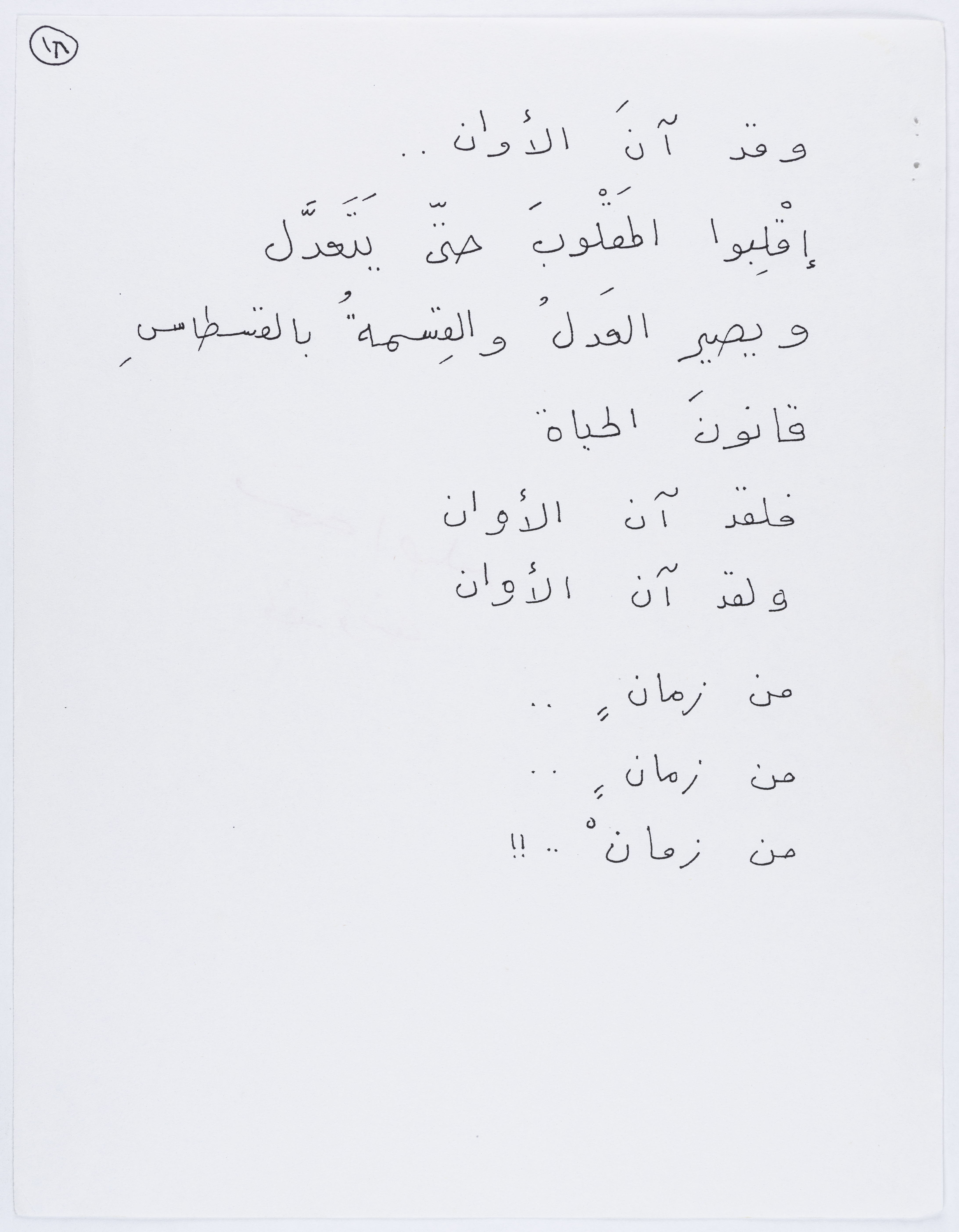 The draft; with notes, of a poem entitled "A Division Most Unfair" written by the poet Tawfiq Ziad and was found in his collection