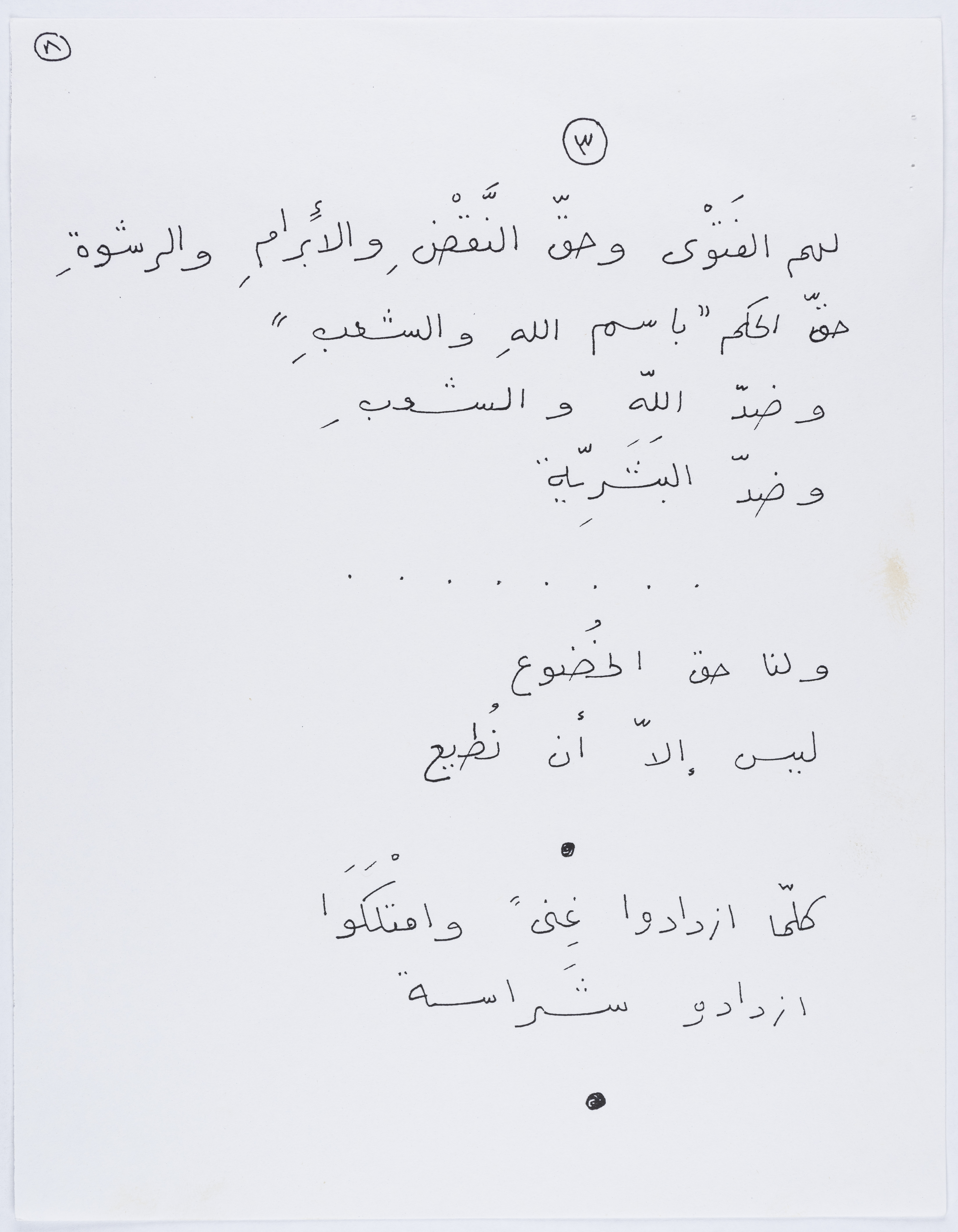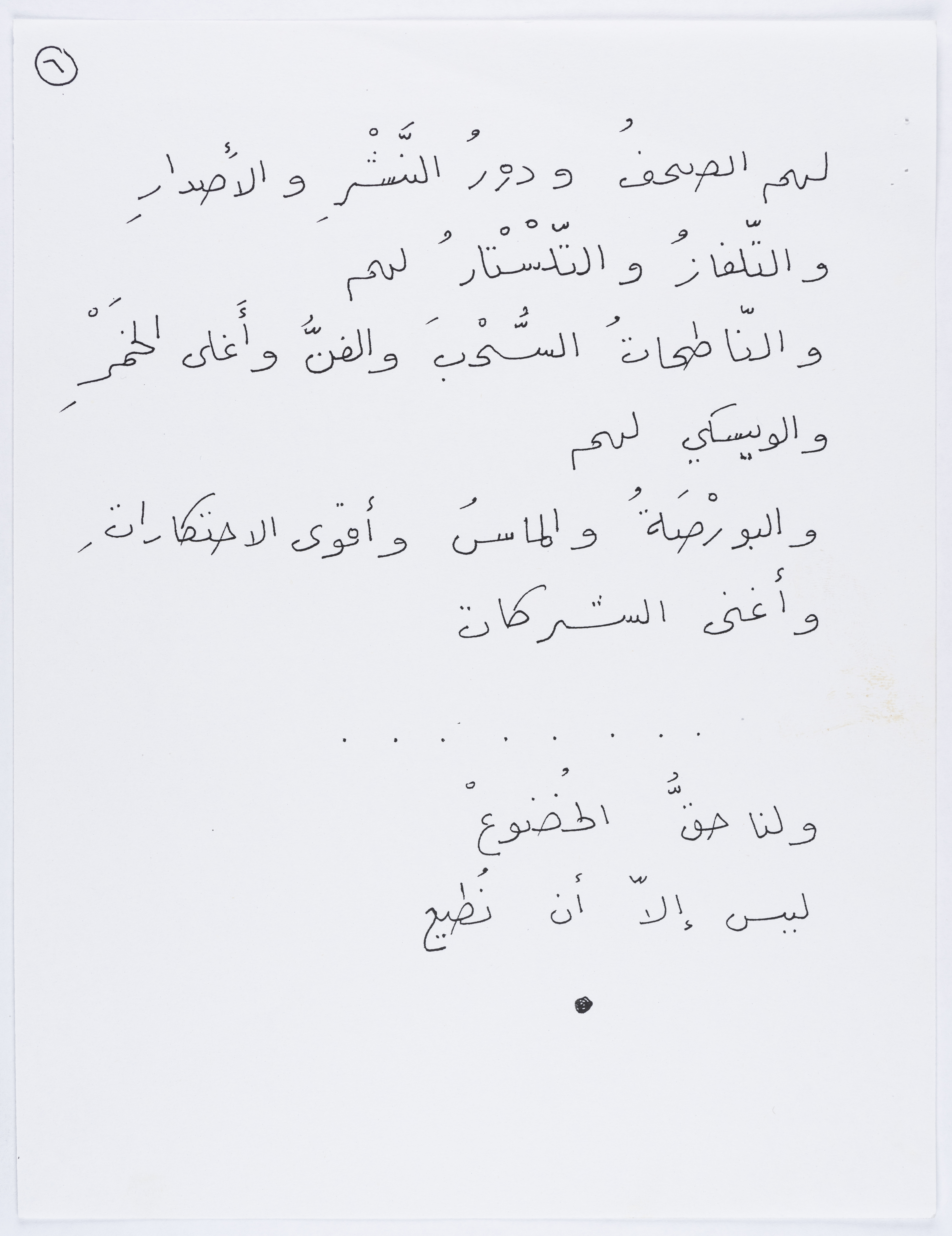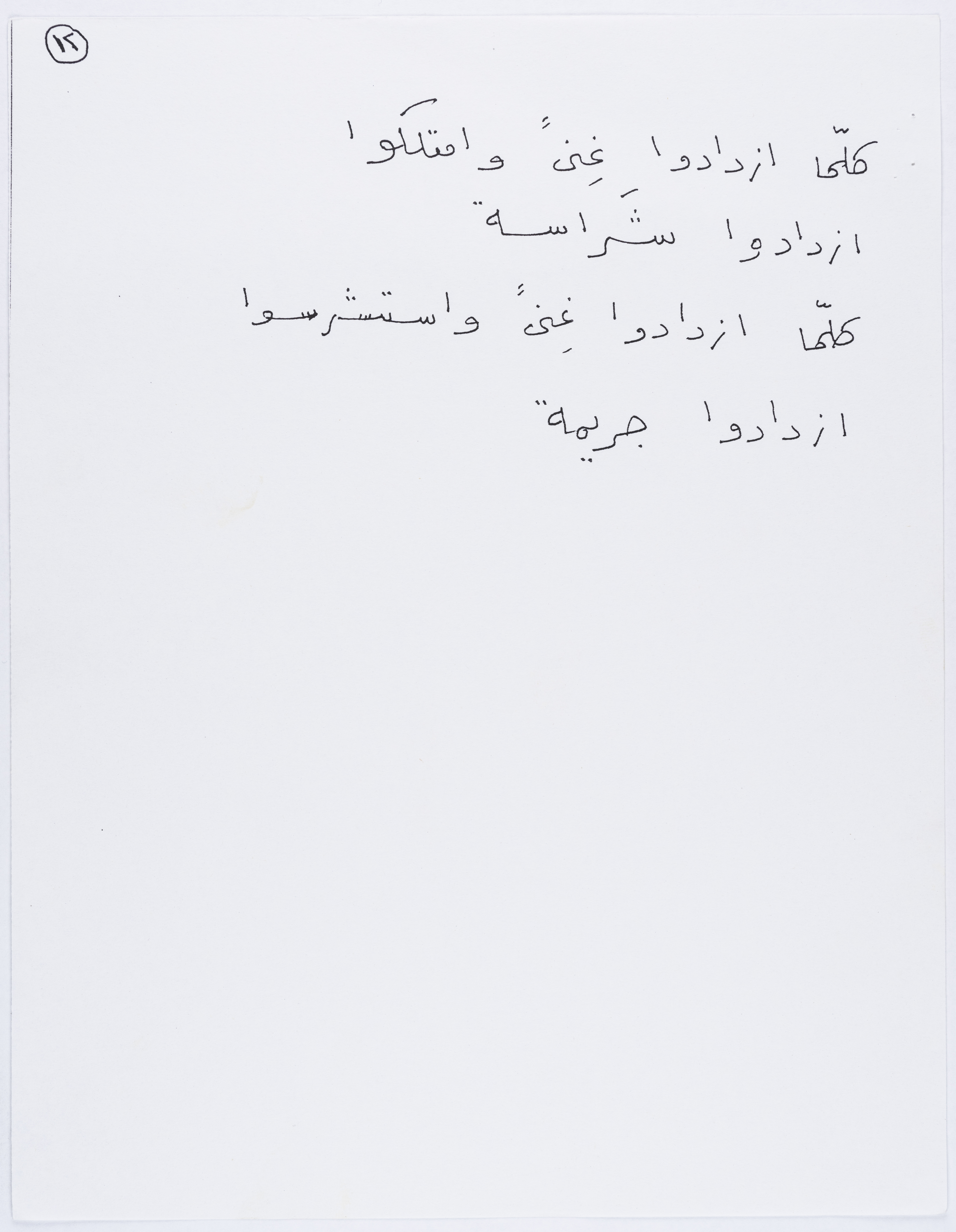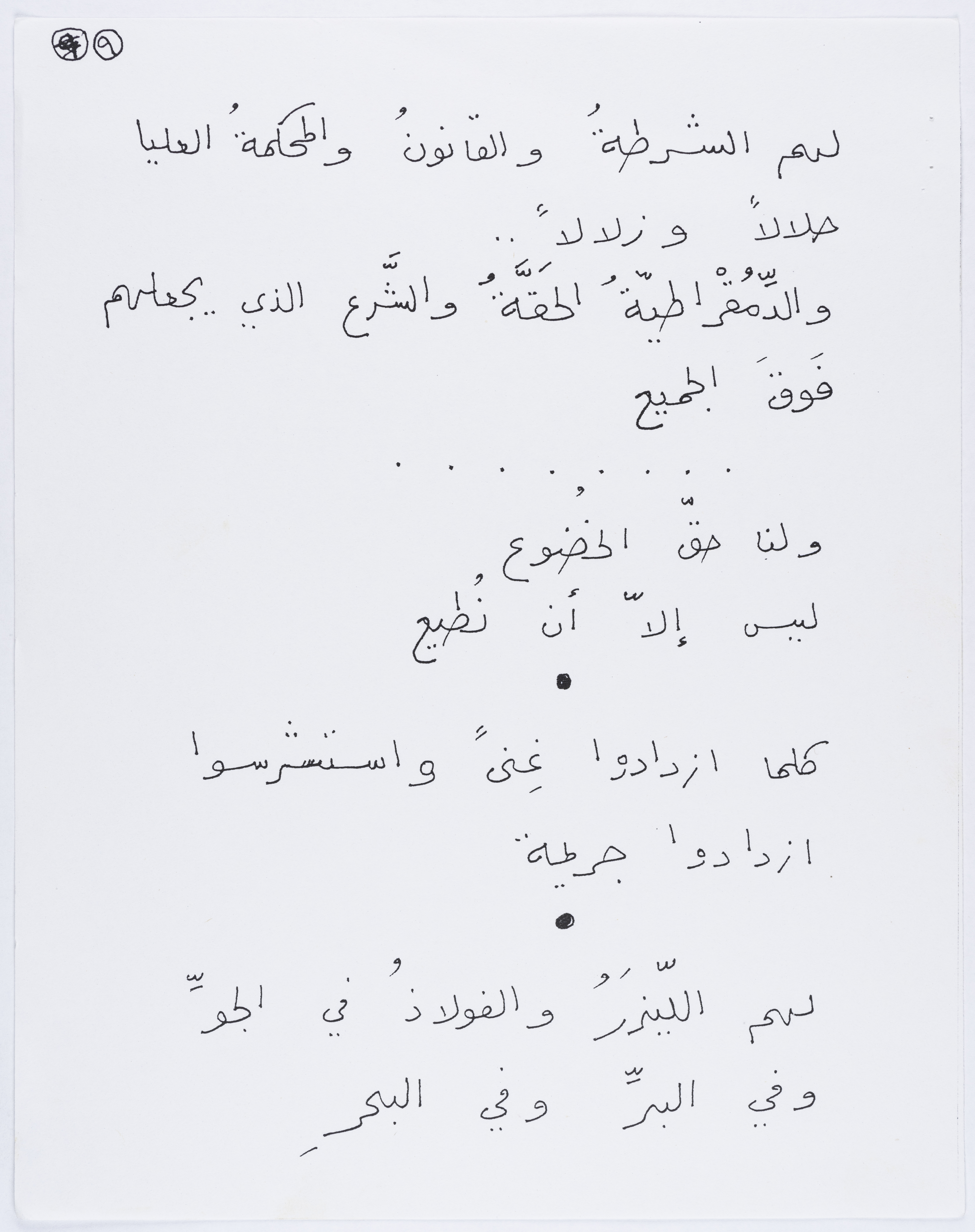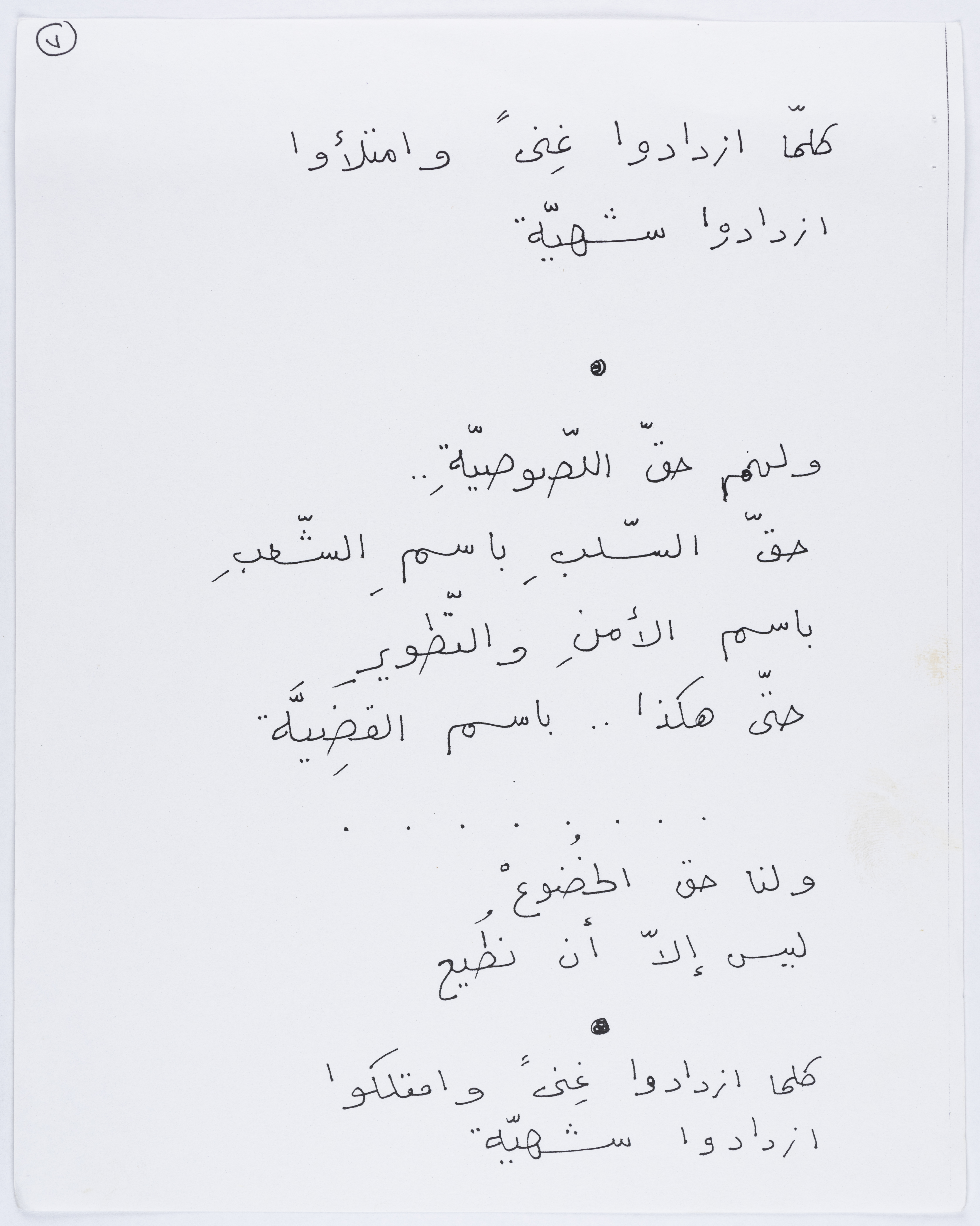 The draft; with notes, of a poem entitled "A Division Most Unfair" written by the poet Tawfiq Ziad and was found in his collection