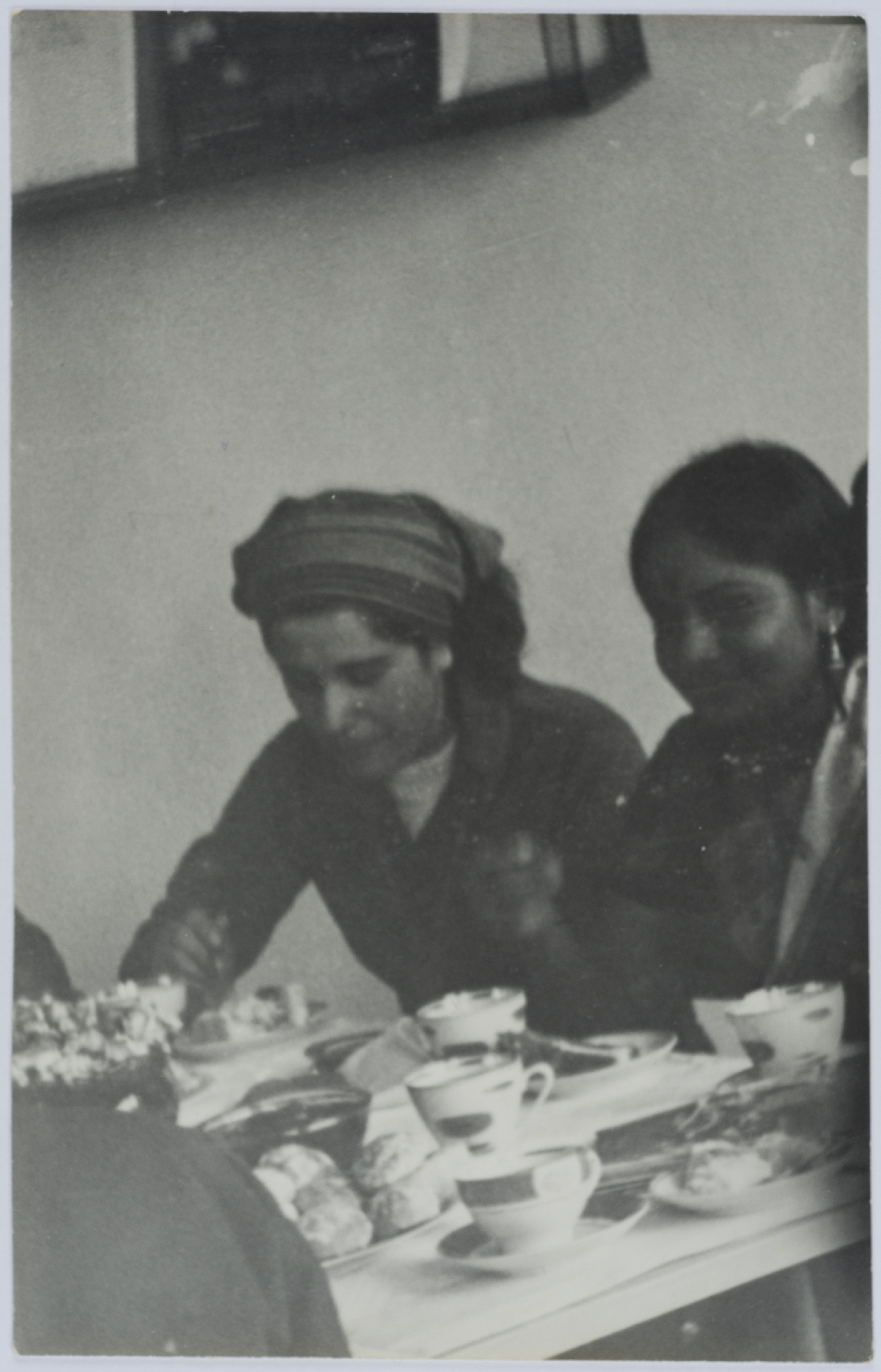 Found in the Zahira Kamal Collection, this photograph shows two girls at a dining table.