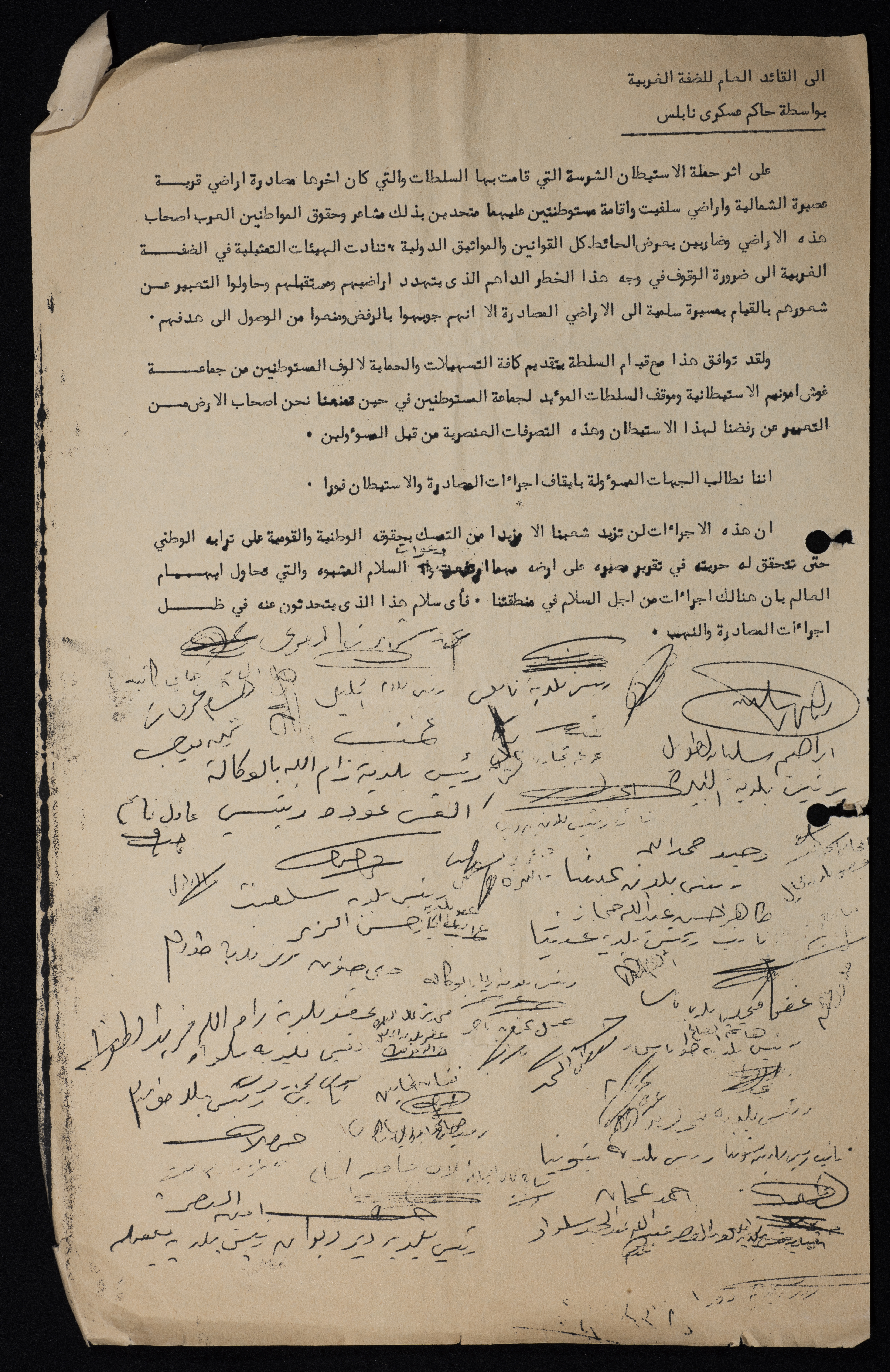 A Petition Signed by Mayors of Municipalities in the West Bank to the Military Governor of the West Bank