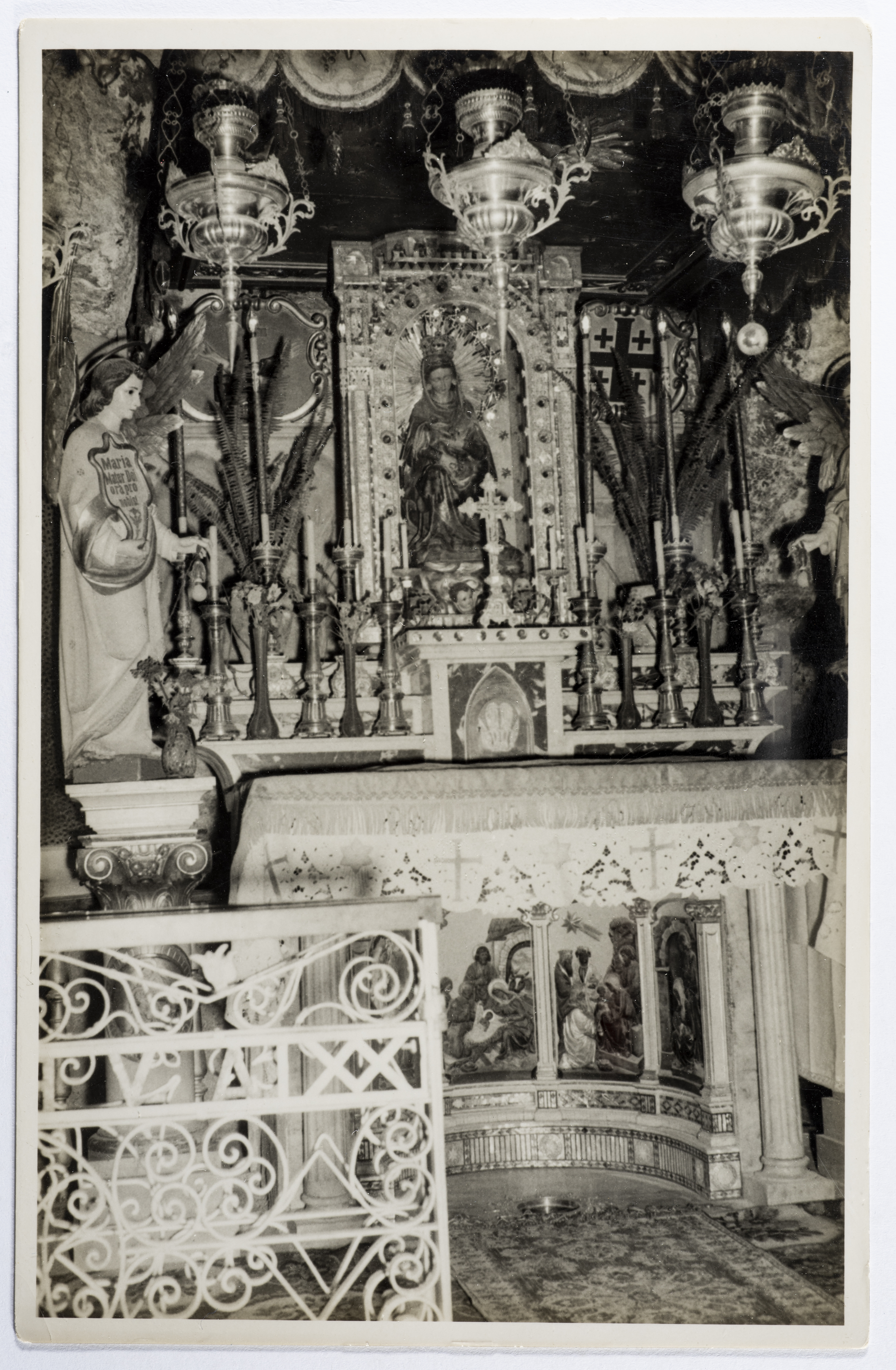 Issued by Saman Sahar Photo Studio, this postcard features the inside of a Church in Palestine.
