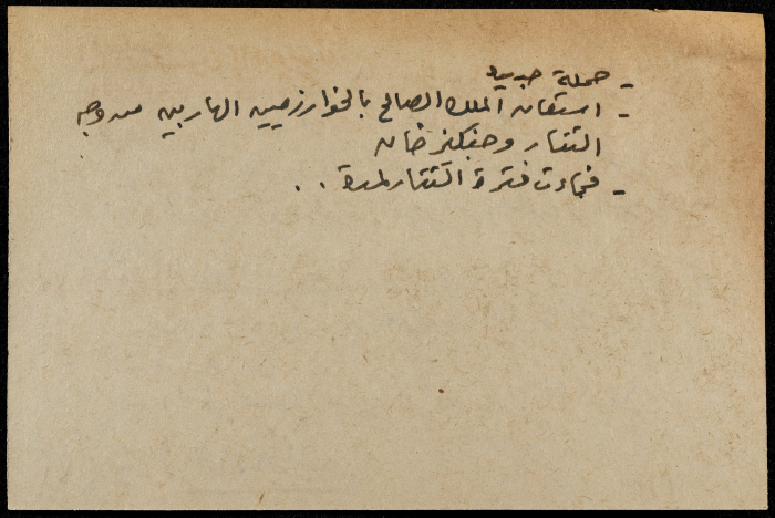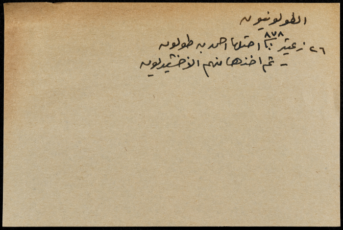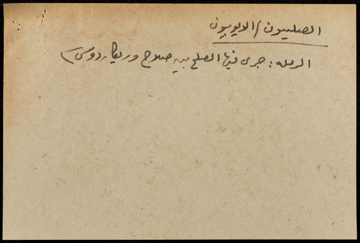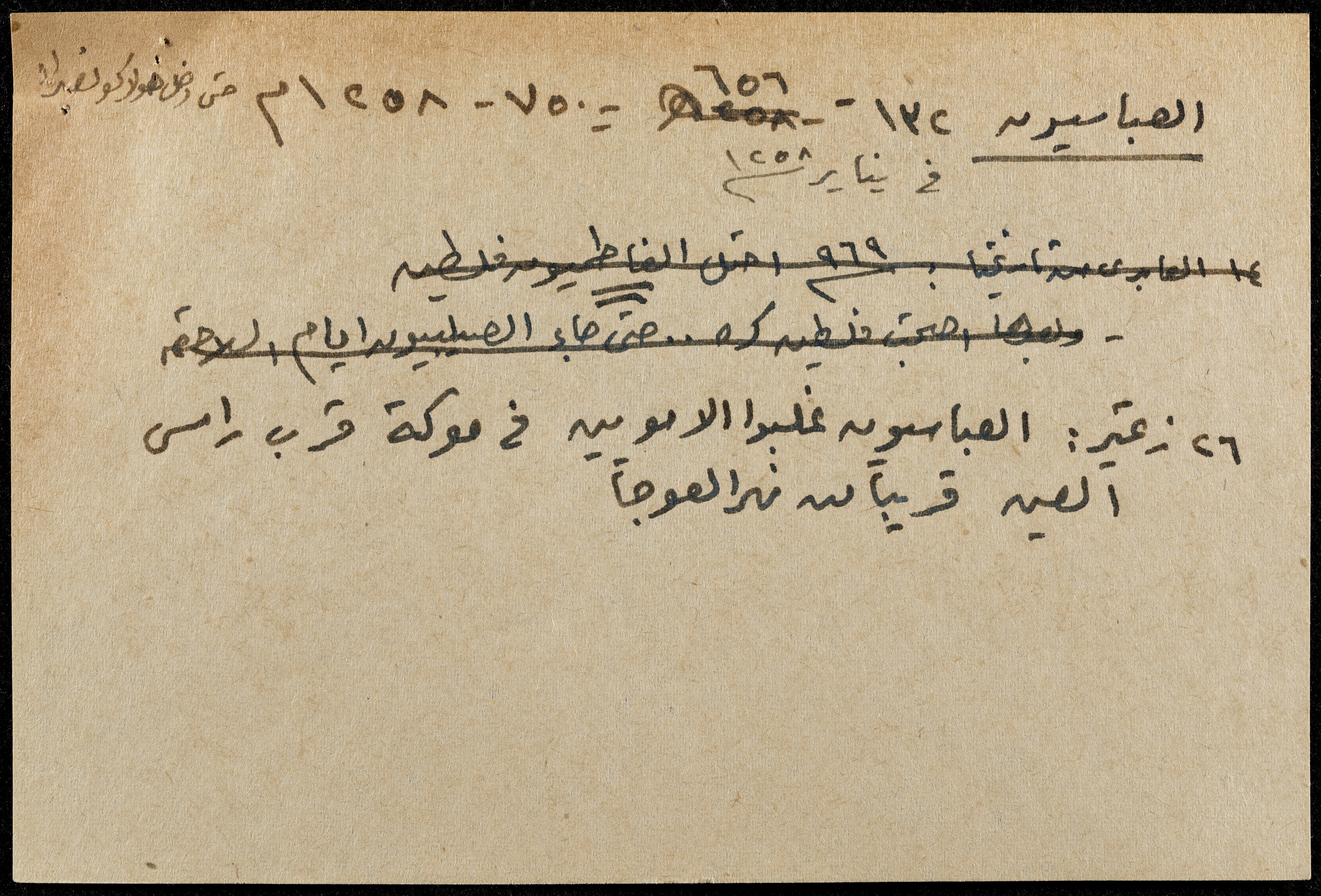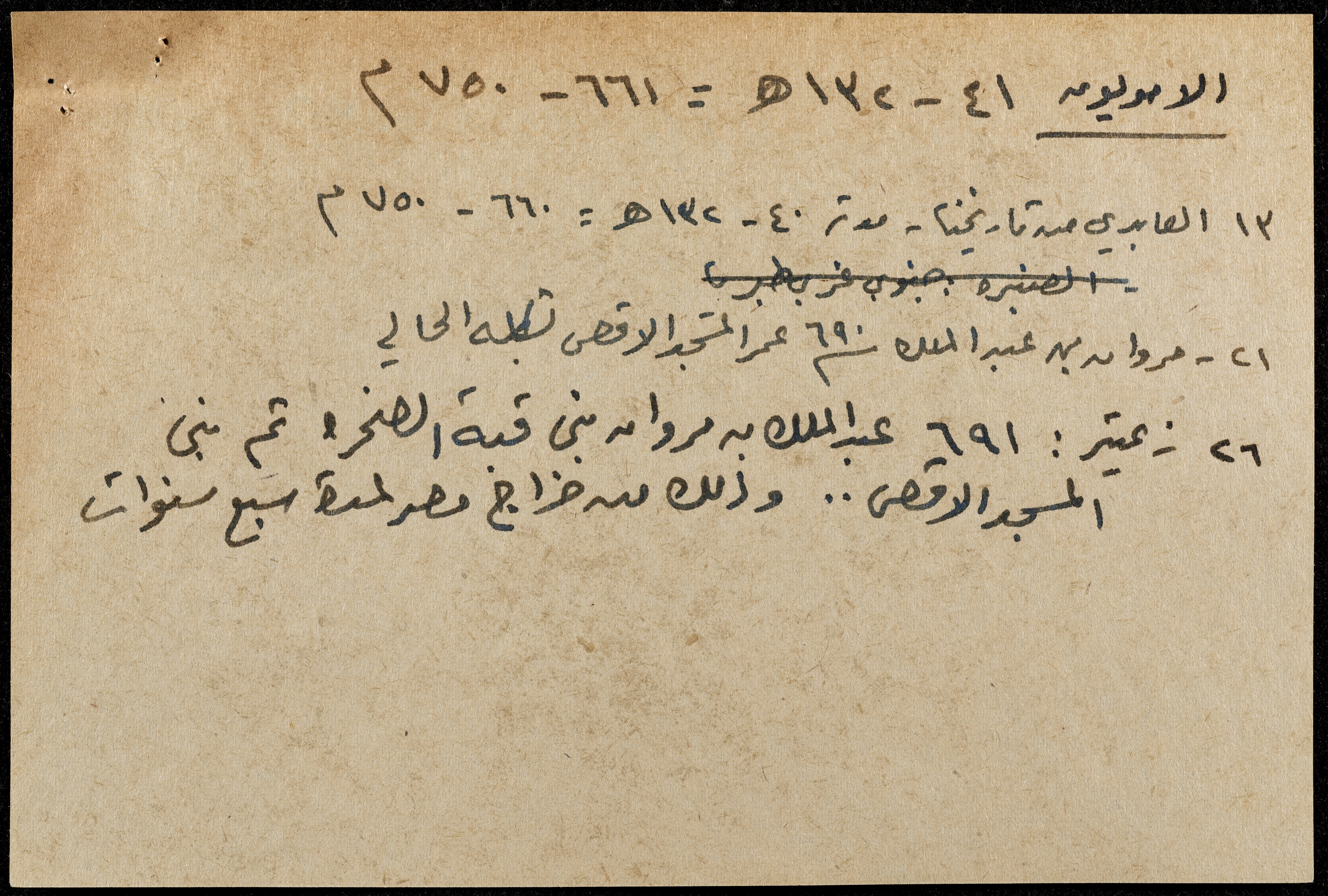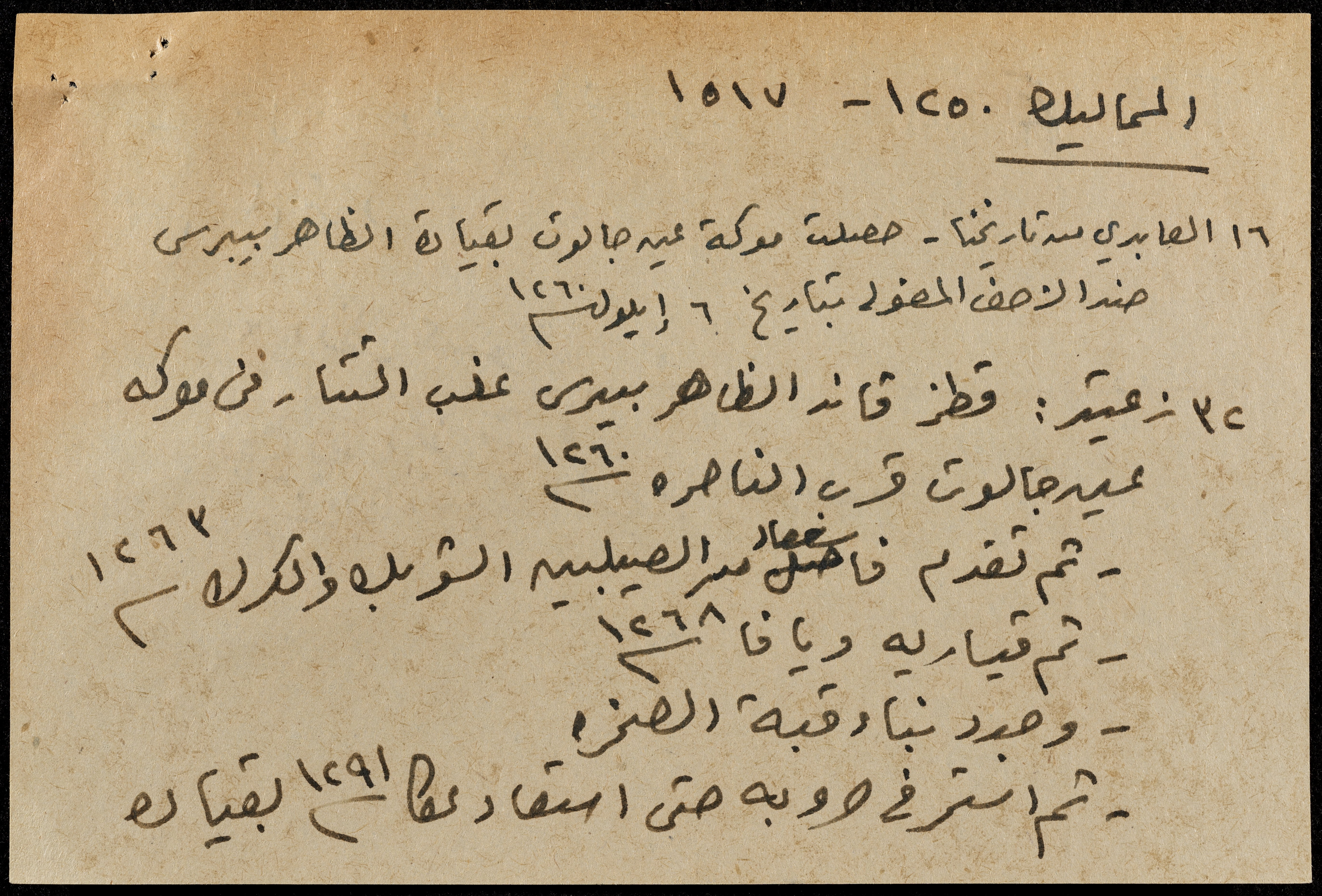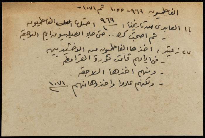 A hand-written paper clipping in Arabic, entitled "Arabs and Muslims" from 637 AD to 1517.
