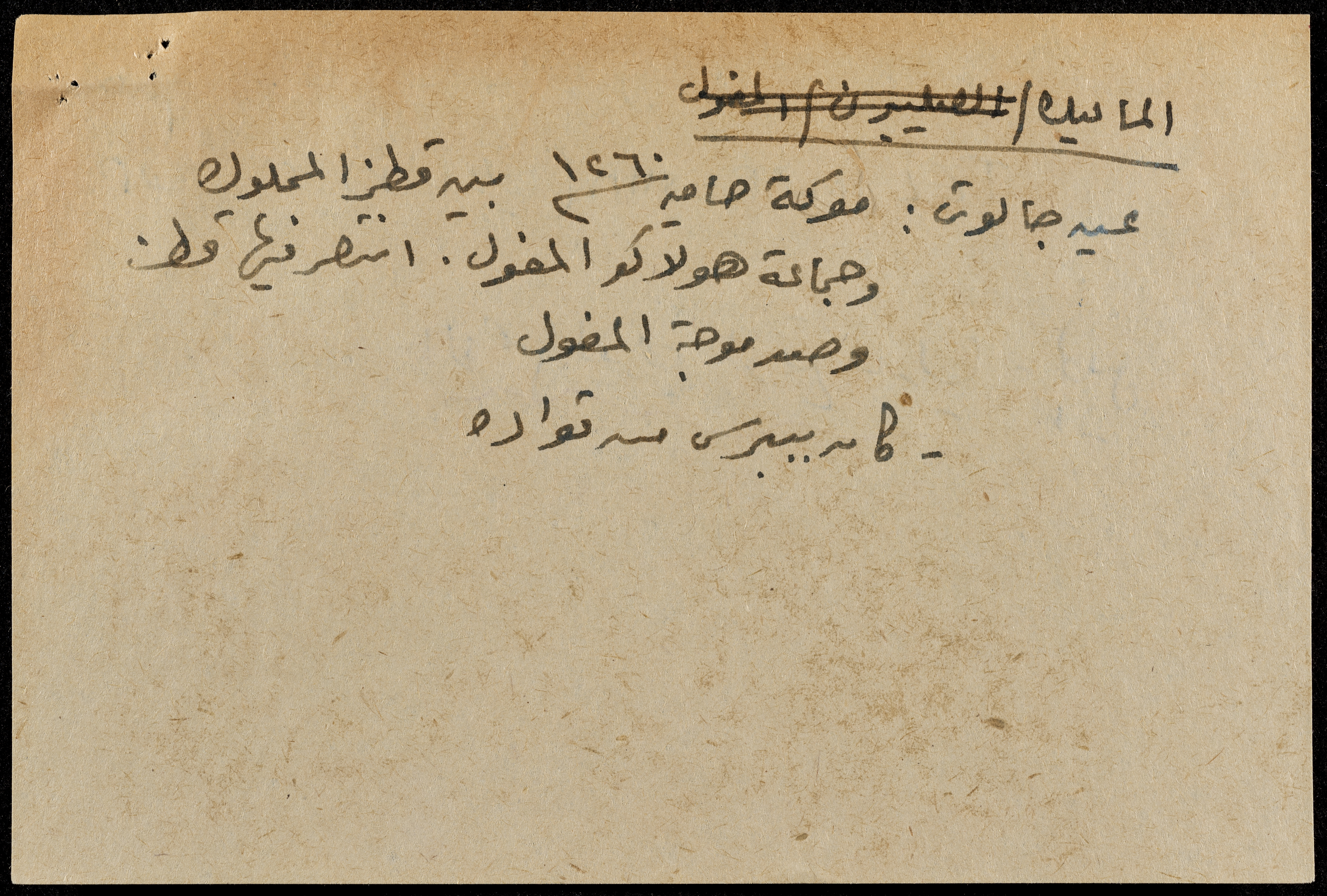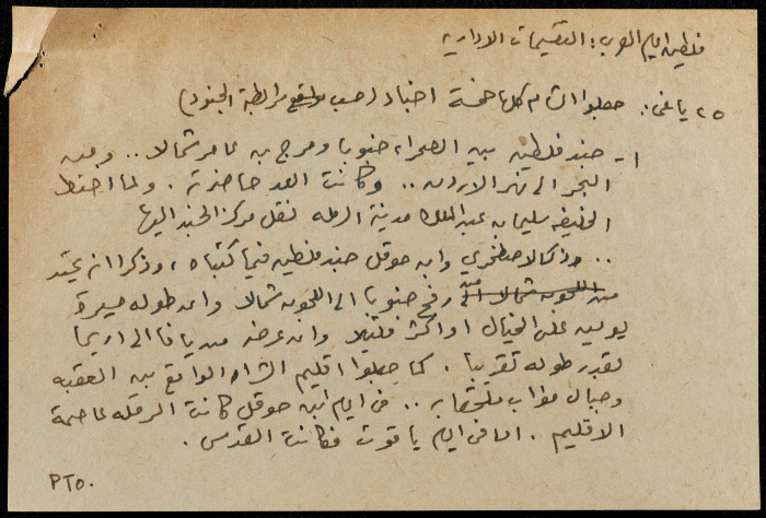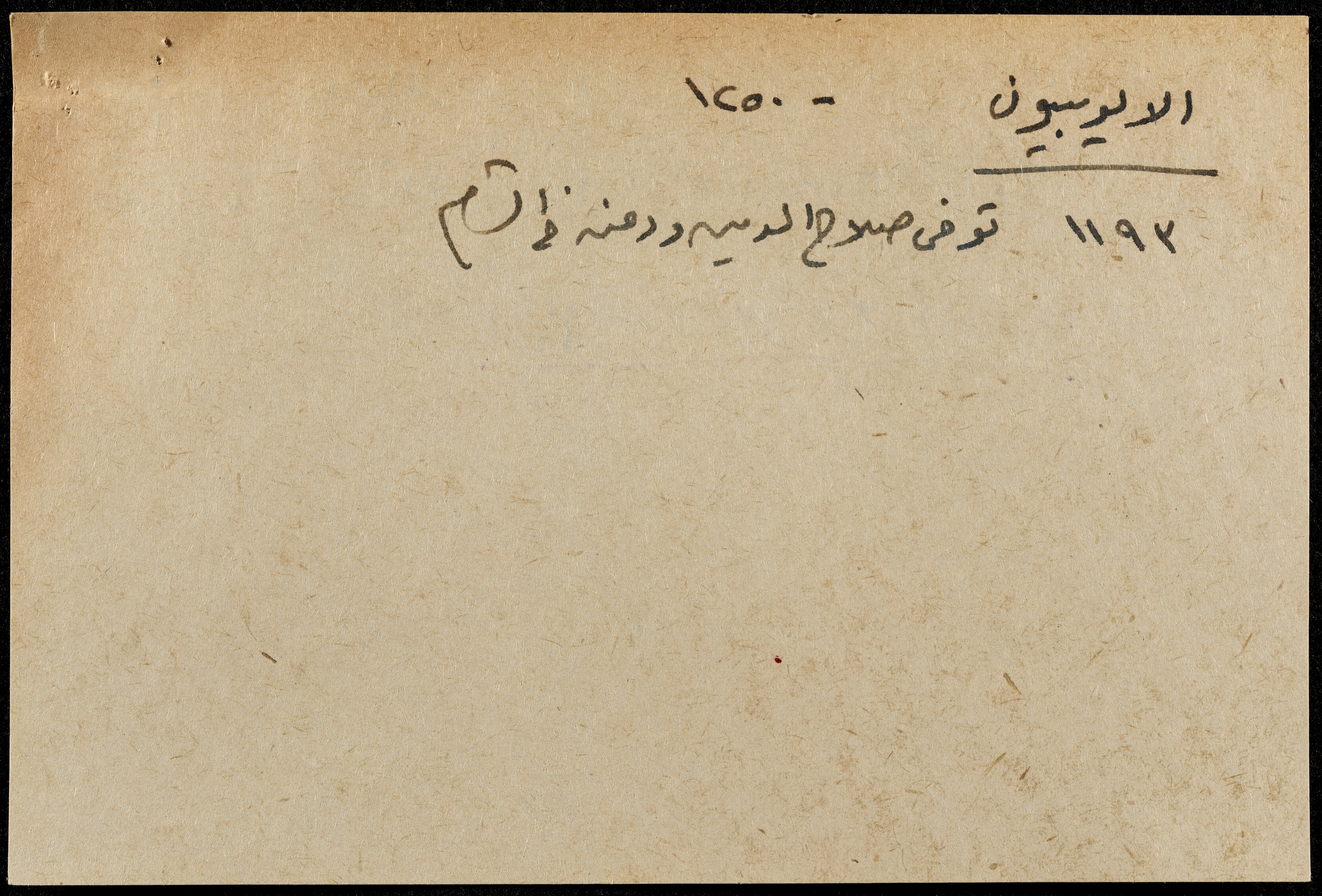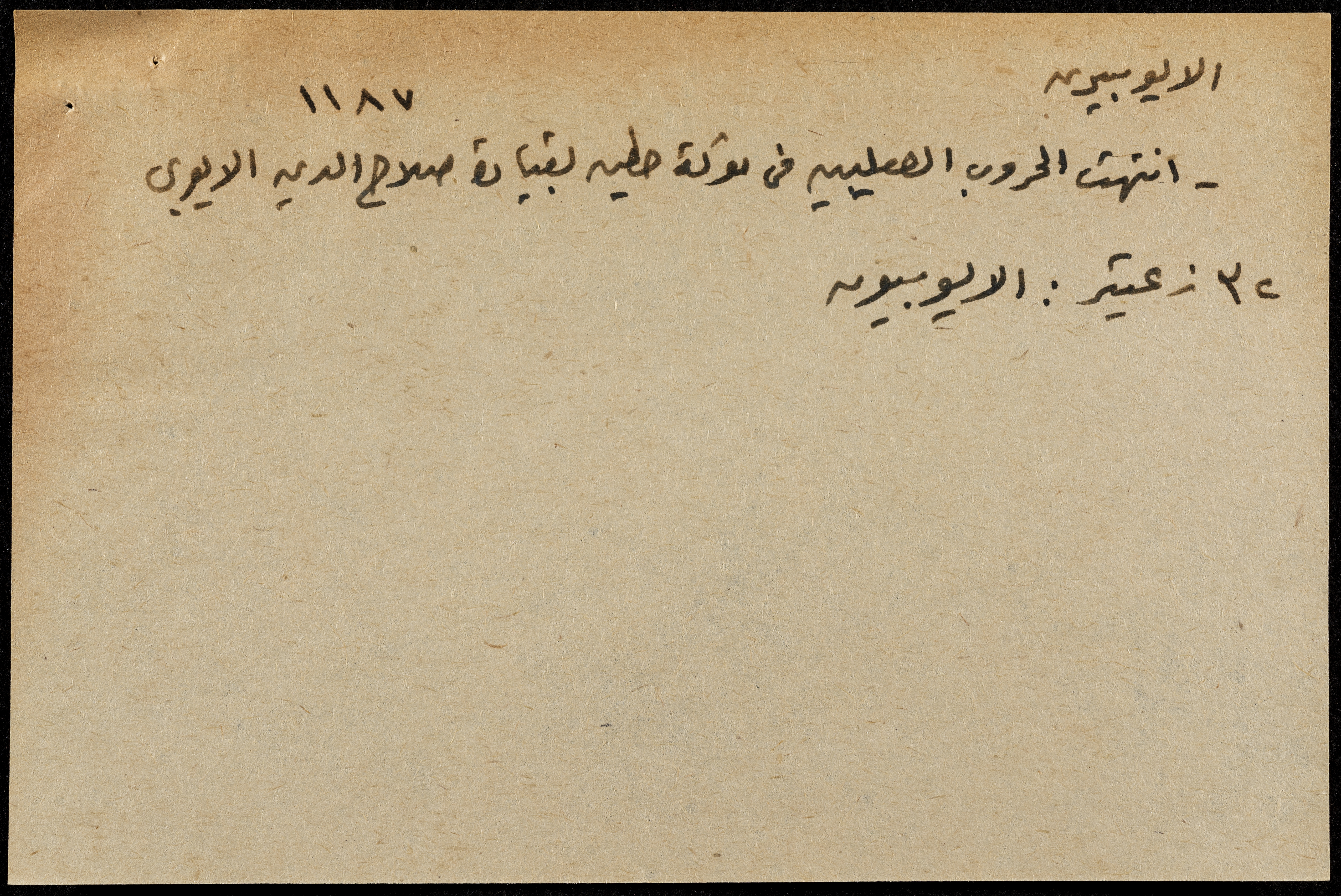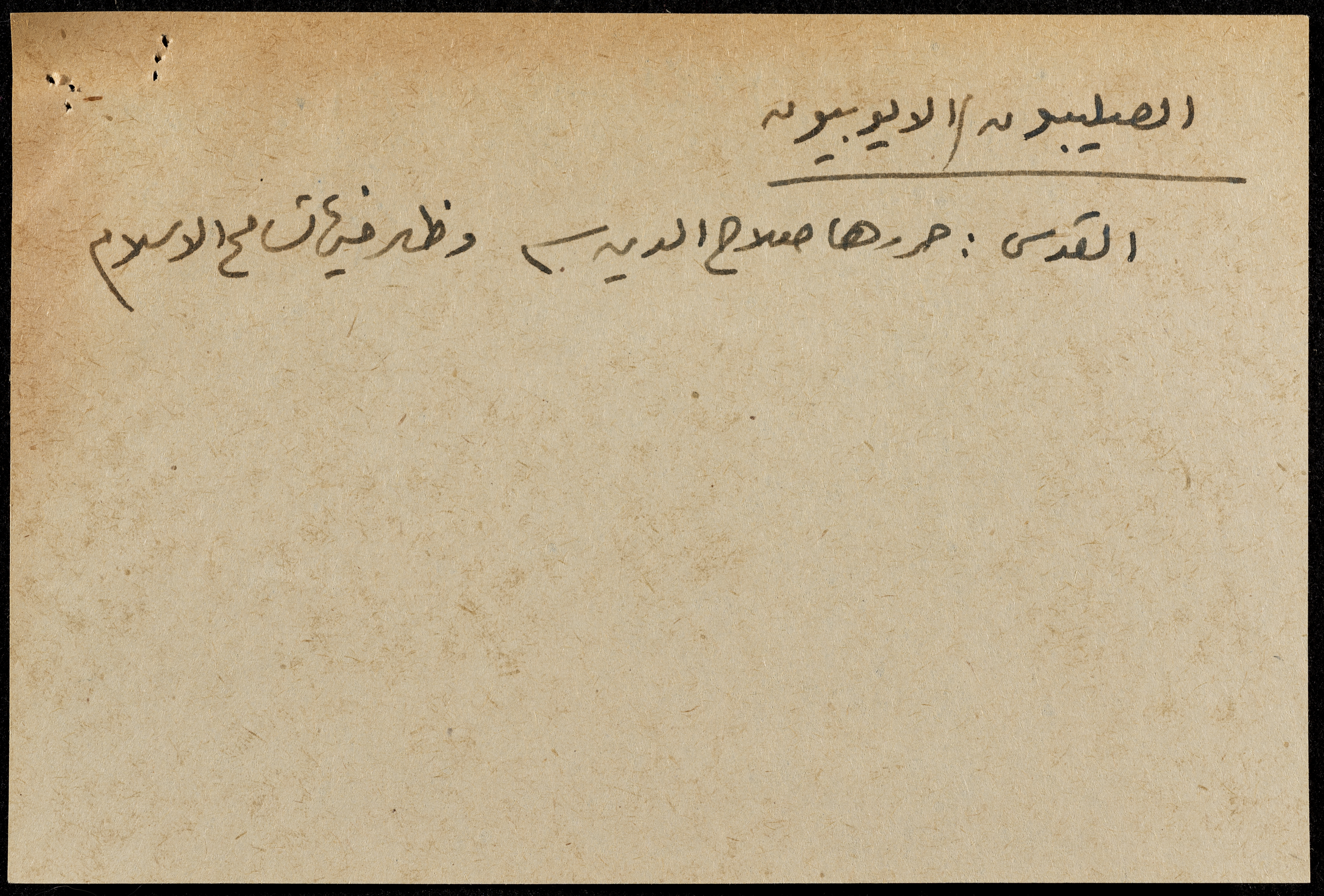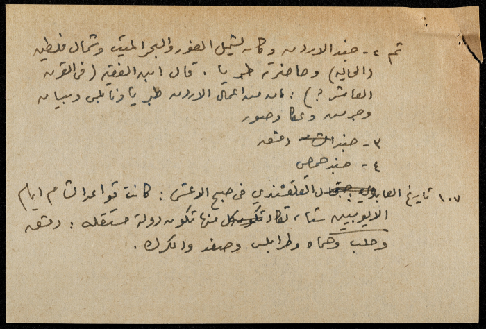A hand-written paper clipping in Arabic, entitled "Arabs and Muslims" from 637 AD to 1517.