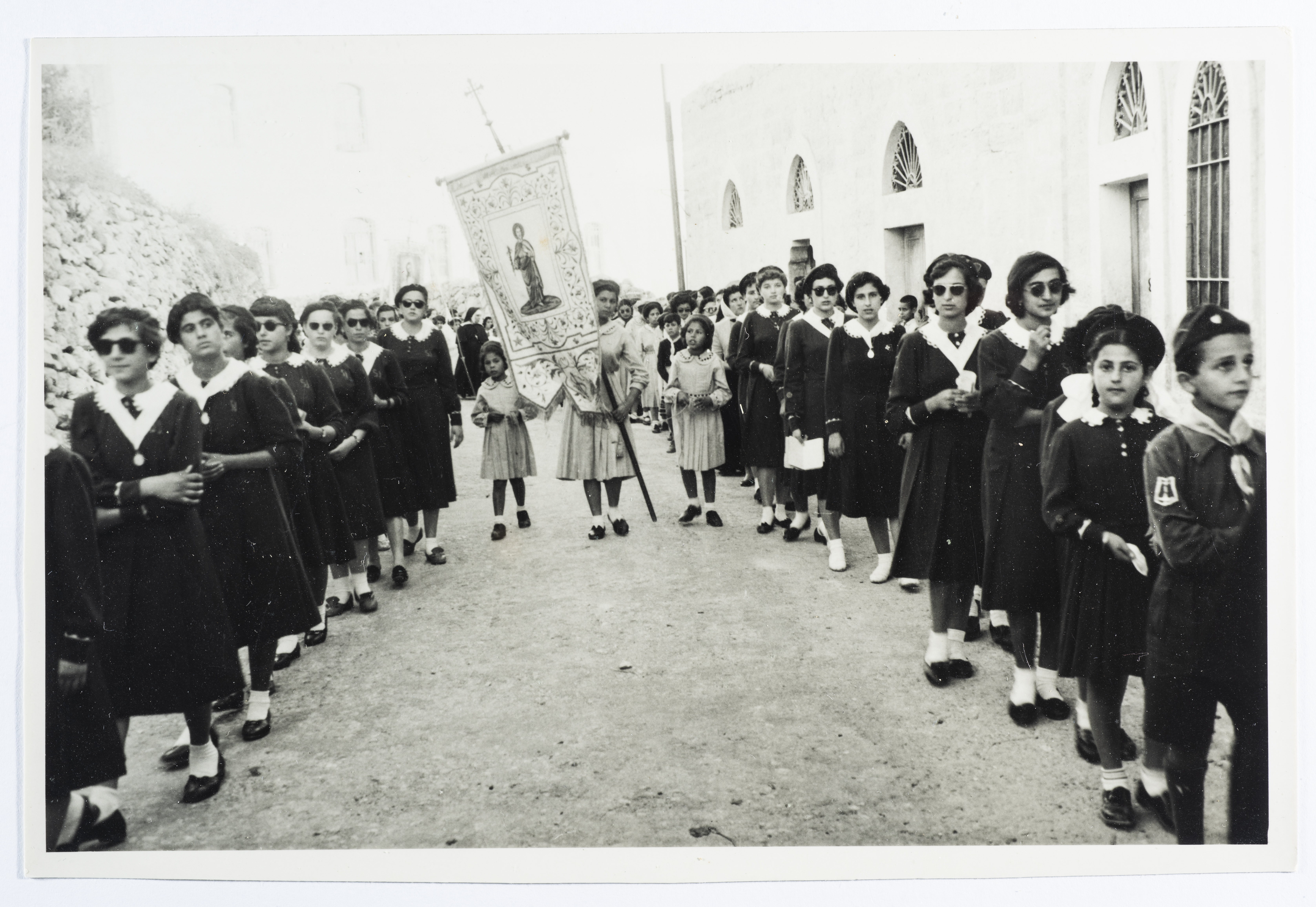 بطاقة بريدية يظهر فيها طقس ديني مسيحي، صدرت عن ستوديو سمعان السحار