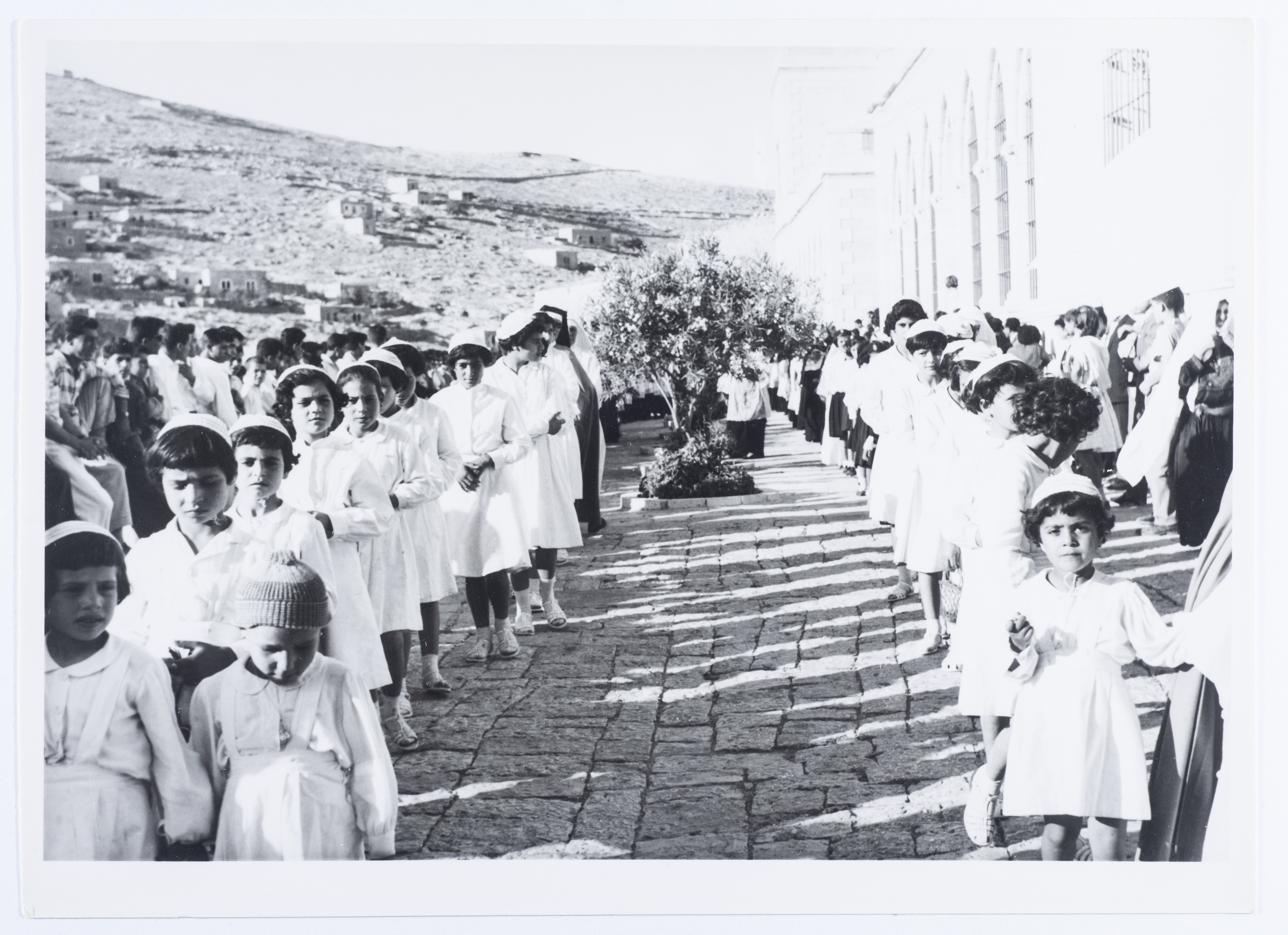 بطاقة بريدية يظهر فيها مسير بمناسبة دينية مسيحية، صدرت عن ستوديو سمعان السحار