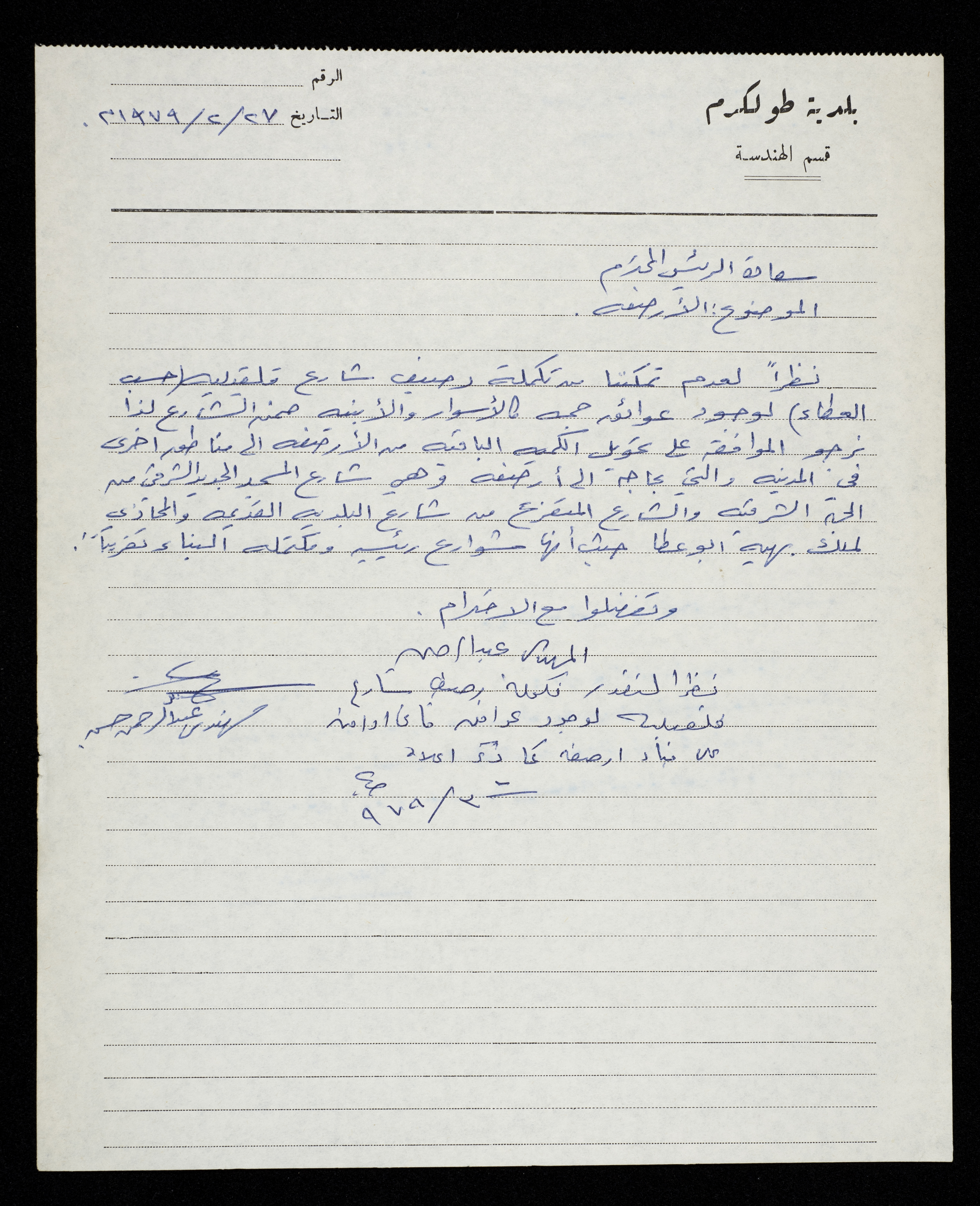 Ozrail, Samar, "The Tulkarm Municipality Collection", archival collection, 20 January – February 2019, the Palestinian Museum Digital Archive.