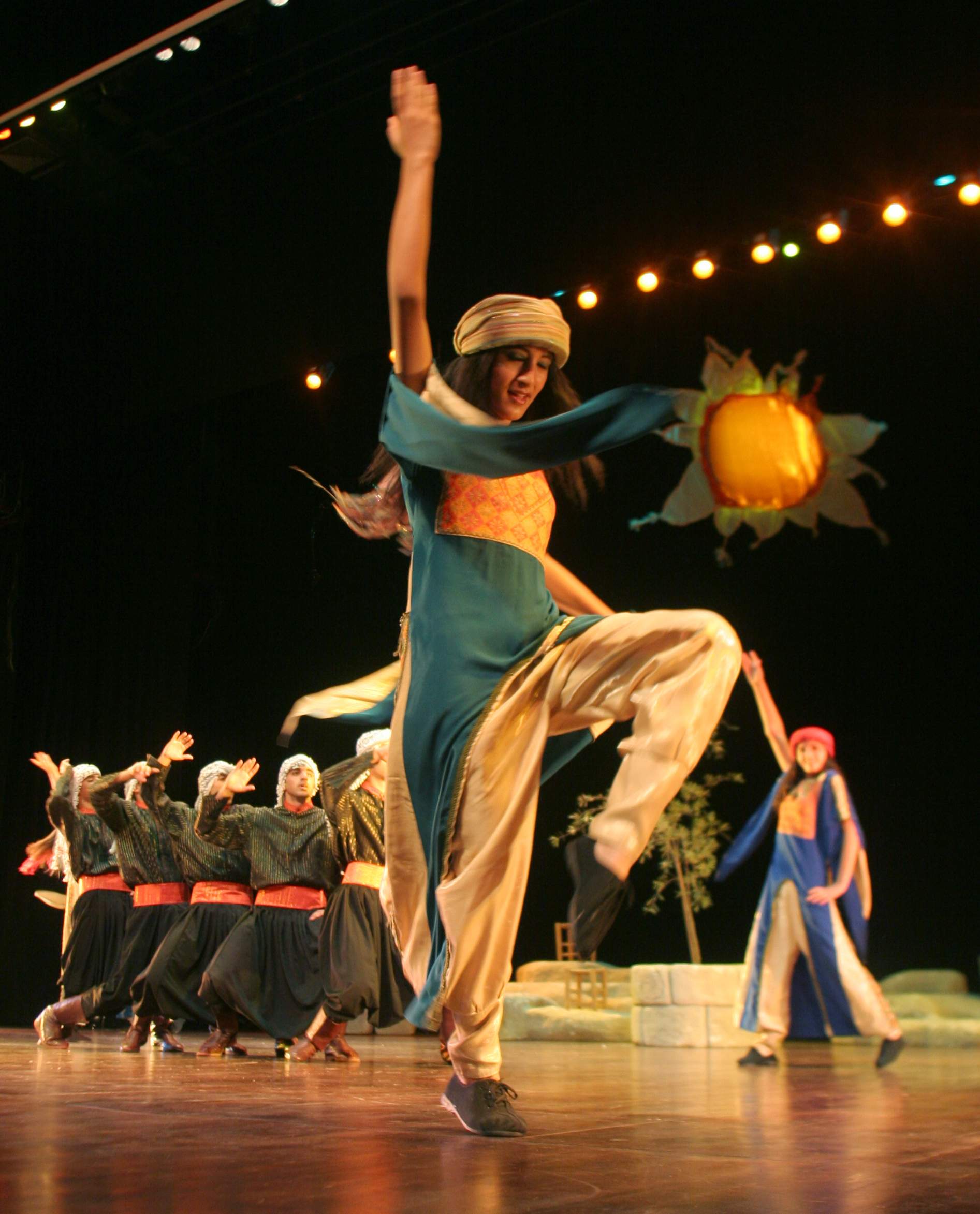 A dance production inspired by timeless Arab-Palestinian heritage that strikes a delicate balance between modernity and heritage. "Raqsit Shamis" blends themes of love, harvest, praying for rain, nostalgia, flirtation and defiance. Based on major repertoire by el-Funoun, its music has been re-arranged and dance has been re-choreographed for this production which mainly addresses the young generation of Palestine. "Raqsit Shamis" aims at sharing Palestine’s cultural dynamism with the world and contributing to Palestinian emancipation and social progress. Prepared and produced by: El-Funoun Dance Troupe Music: Tarek An-Nasser (based on folkloric tunes) Choreography: Noora Baker, Omar Barghouti, Khaled Qatamesh Assistant Choreographers: Sharaf Dar Zayed, Hussein A’amar, Najeh Masalmeh, Maher Shawamreh, Ata Khattab, Nassir Mansour