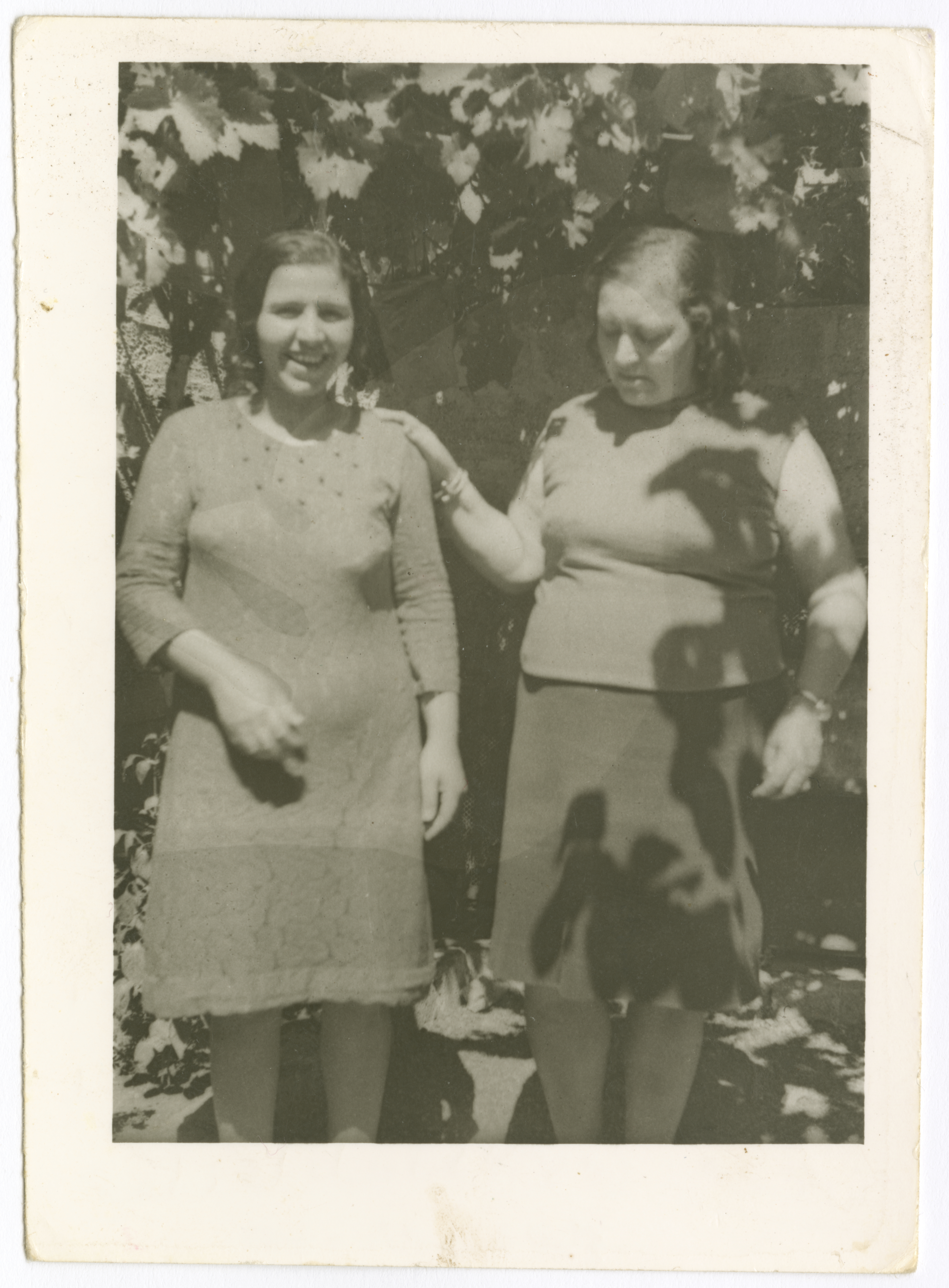 صورة لفاطمة الشلبي (والدة عمر القاسم) وأختها نعيمة، التُقطت في عمان في ستينيات القرن العشرين.