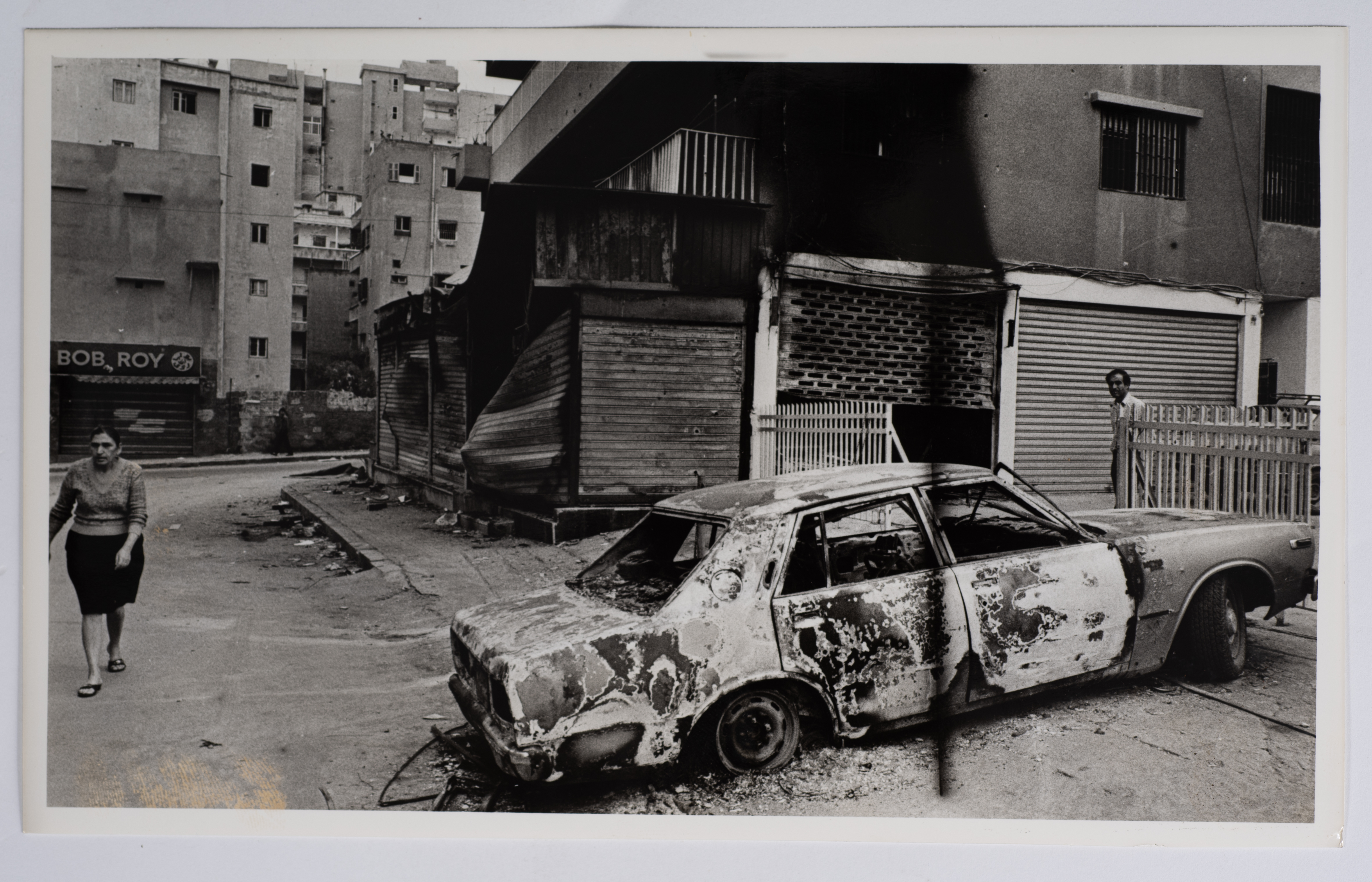 Taken during the period from 1985 to 1988, this photograph shows the trail of destruction caused by the clashes in West Beirut, in the course of the Lebanese Civil War.