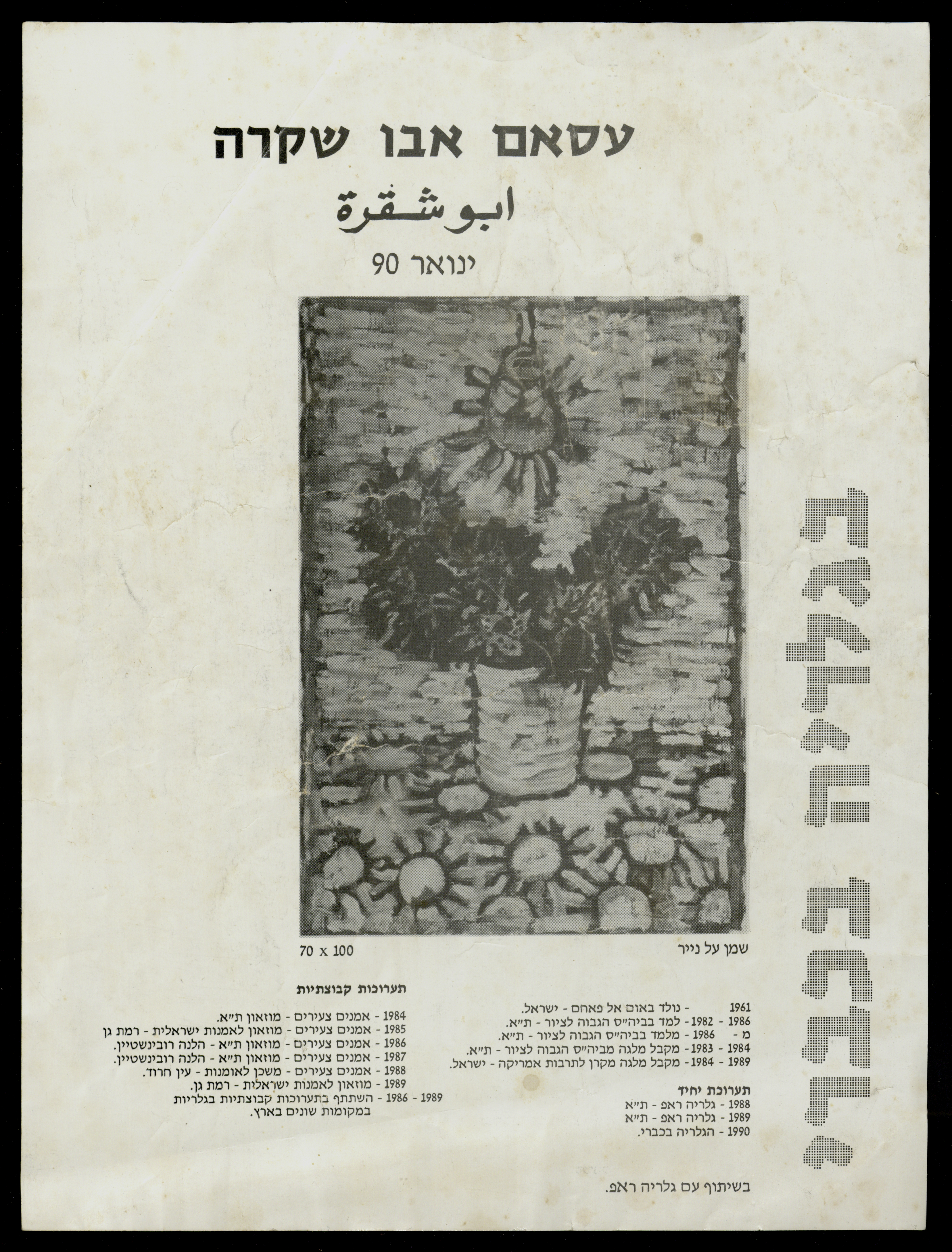 ملصق إعلان معرض يظهر عليه عمل فني للفنان عاصم أبو شقرة