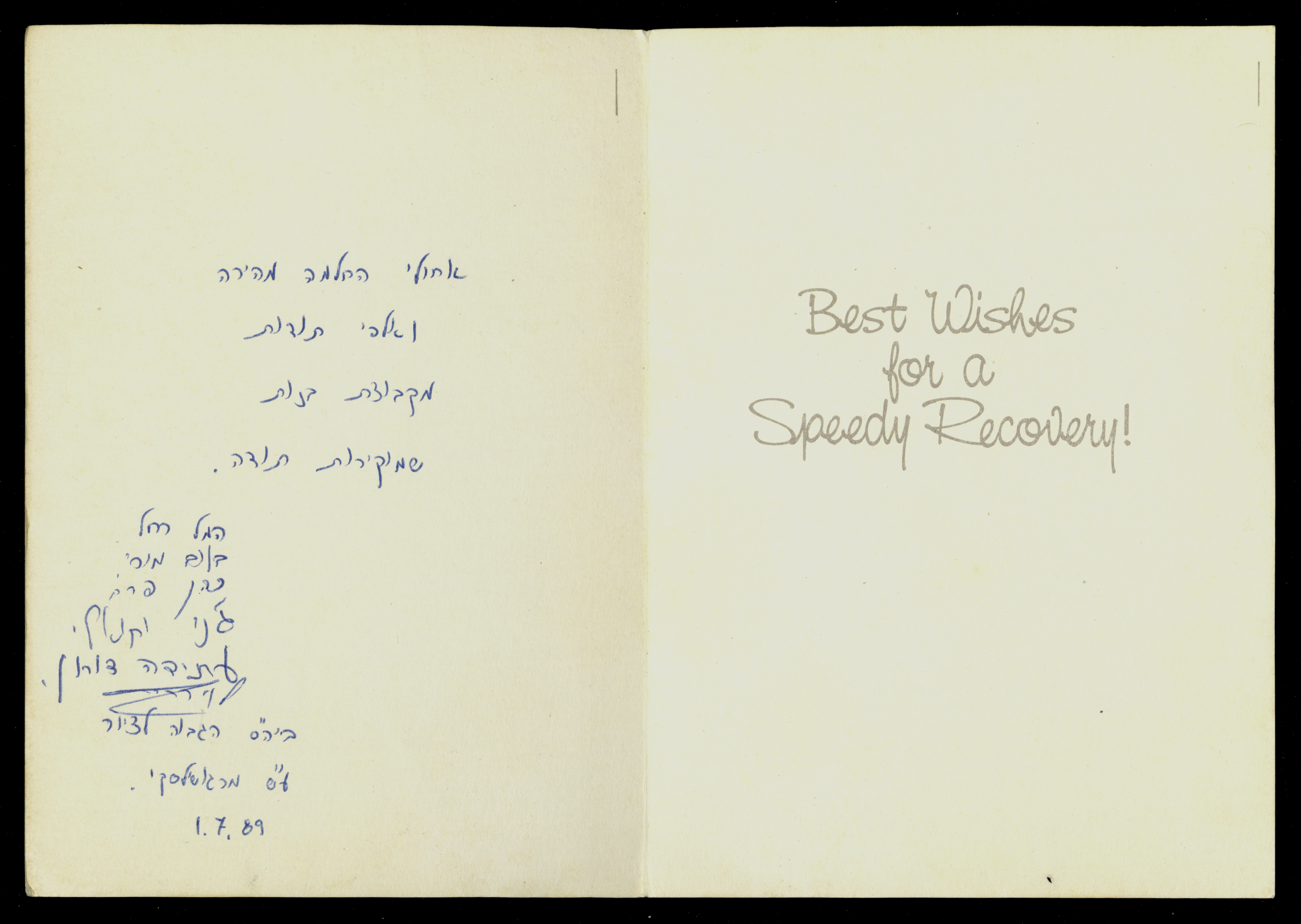 بطاقة تمني بالشفاء، أُرسلت إلى الفنان عاصم أبو شقرة