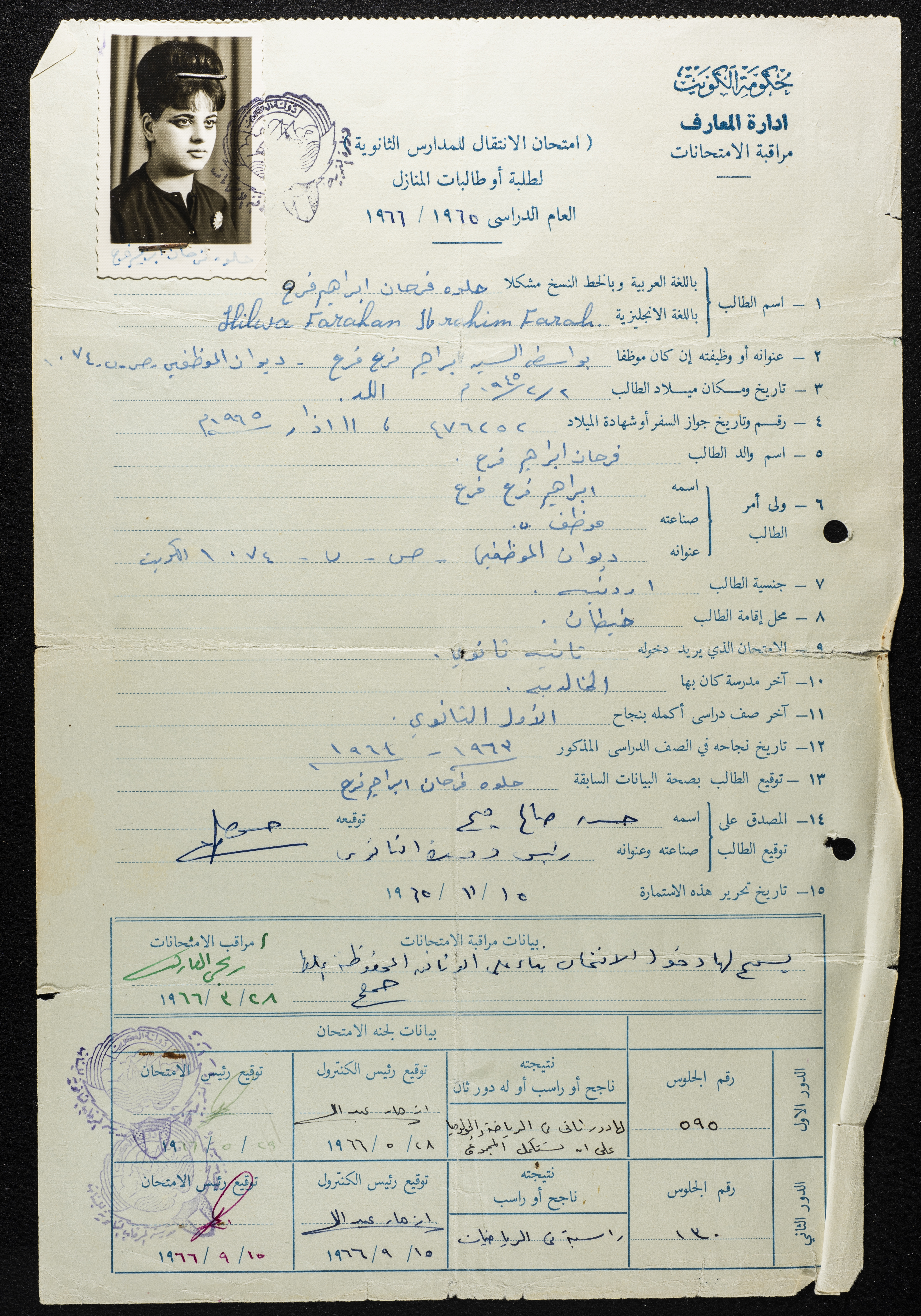 Found in the Birzeit Women Charitable Society Collection, this document shows a secondary school banding test.