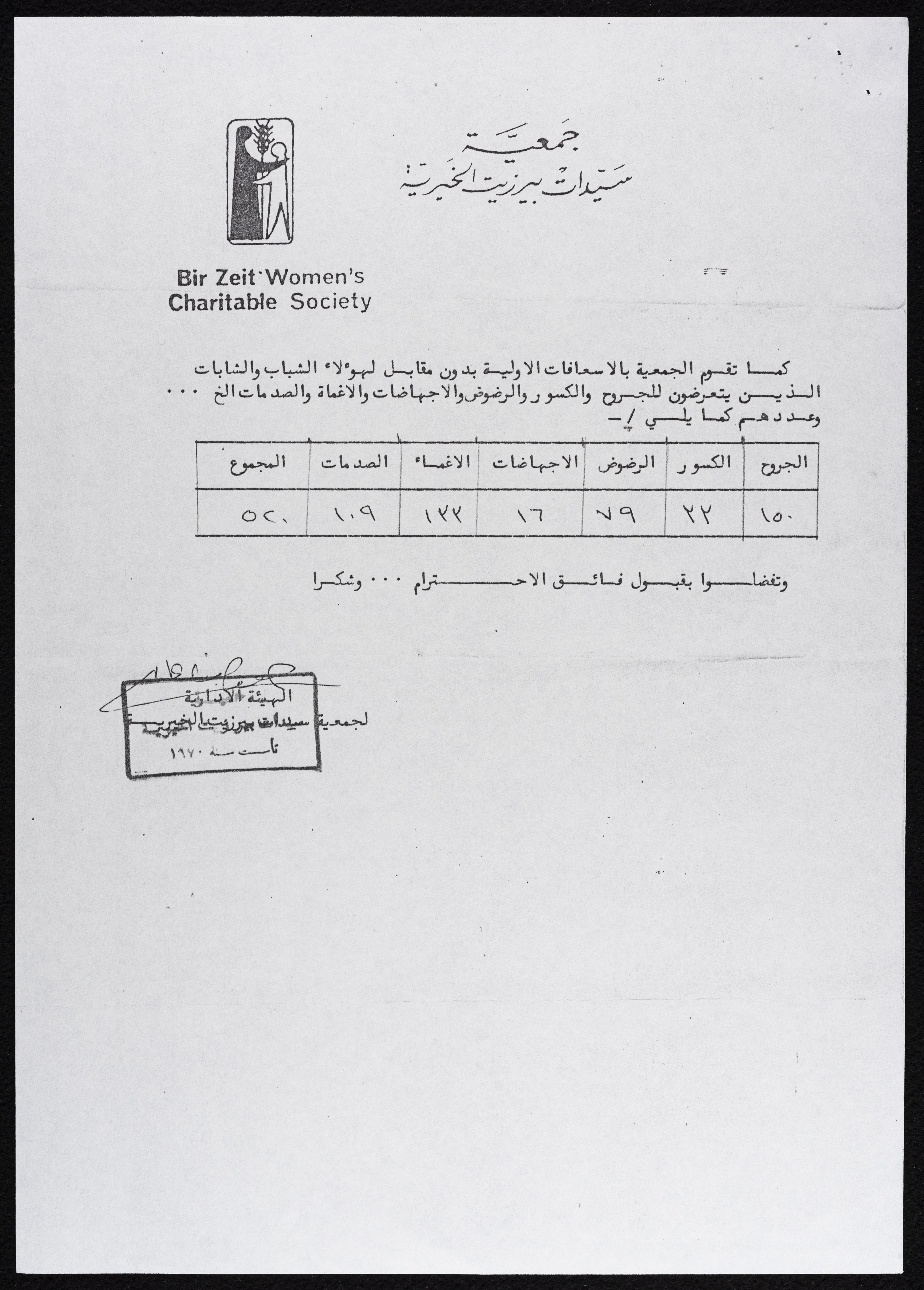 Found in the Birzeit Women Charitable Society Collection, this document shows a letter from Birzeit Women Charitable Society about the Society's agenda, 1990.