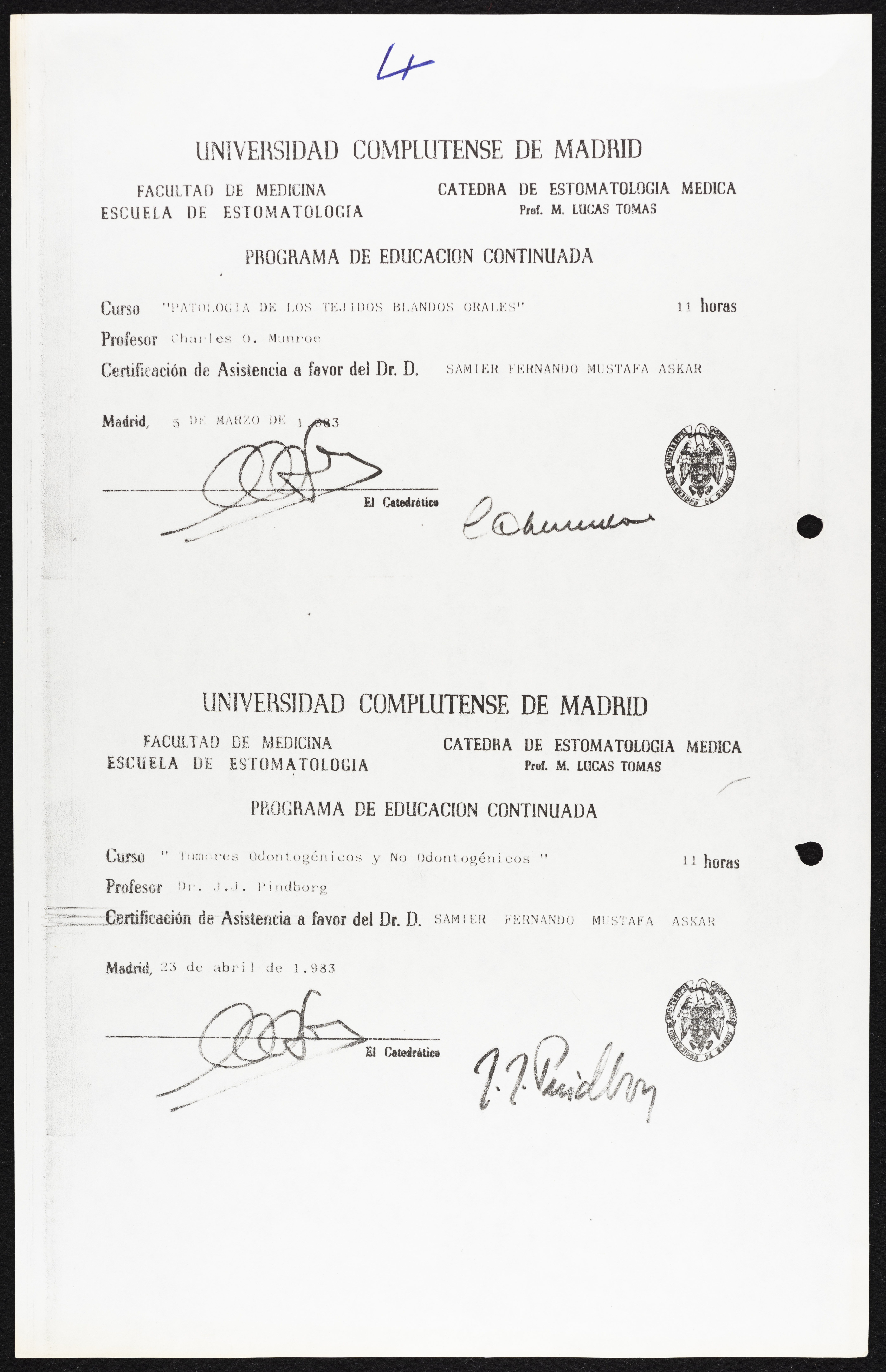 A Certificate Issued to Dr Samir Askar by the Complutense University of Madrid, 1983