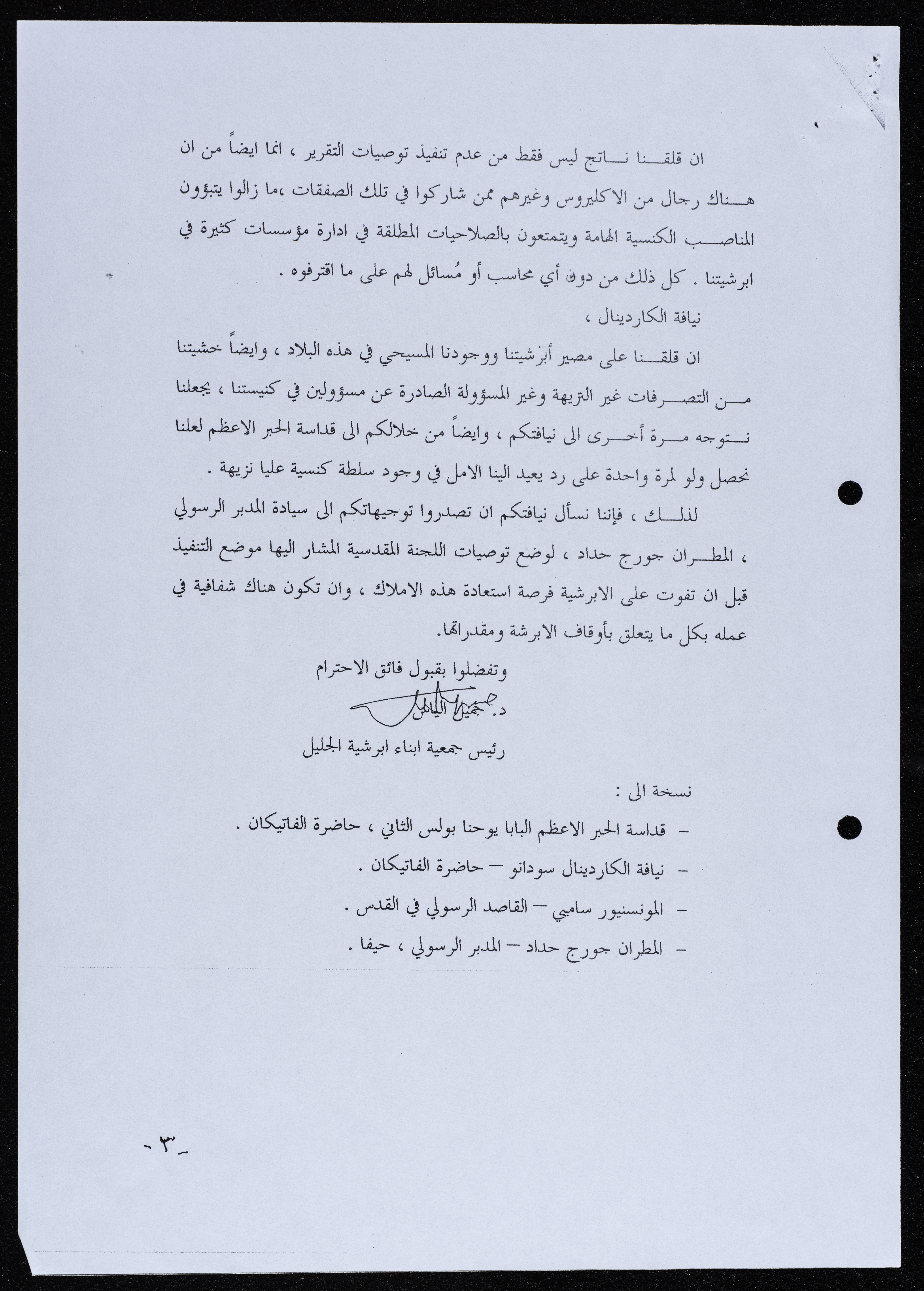 A Letter from the Diocese of Galilee Members Association to Cardinal Mousa Dawoud