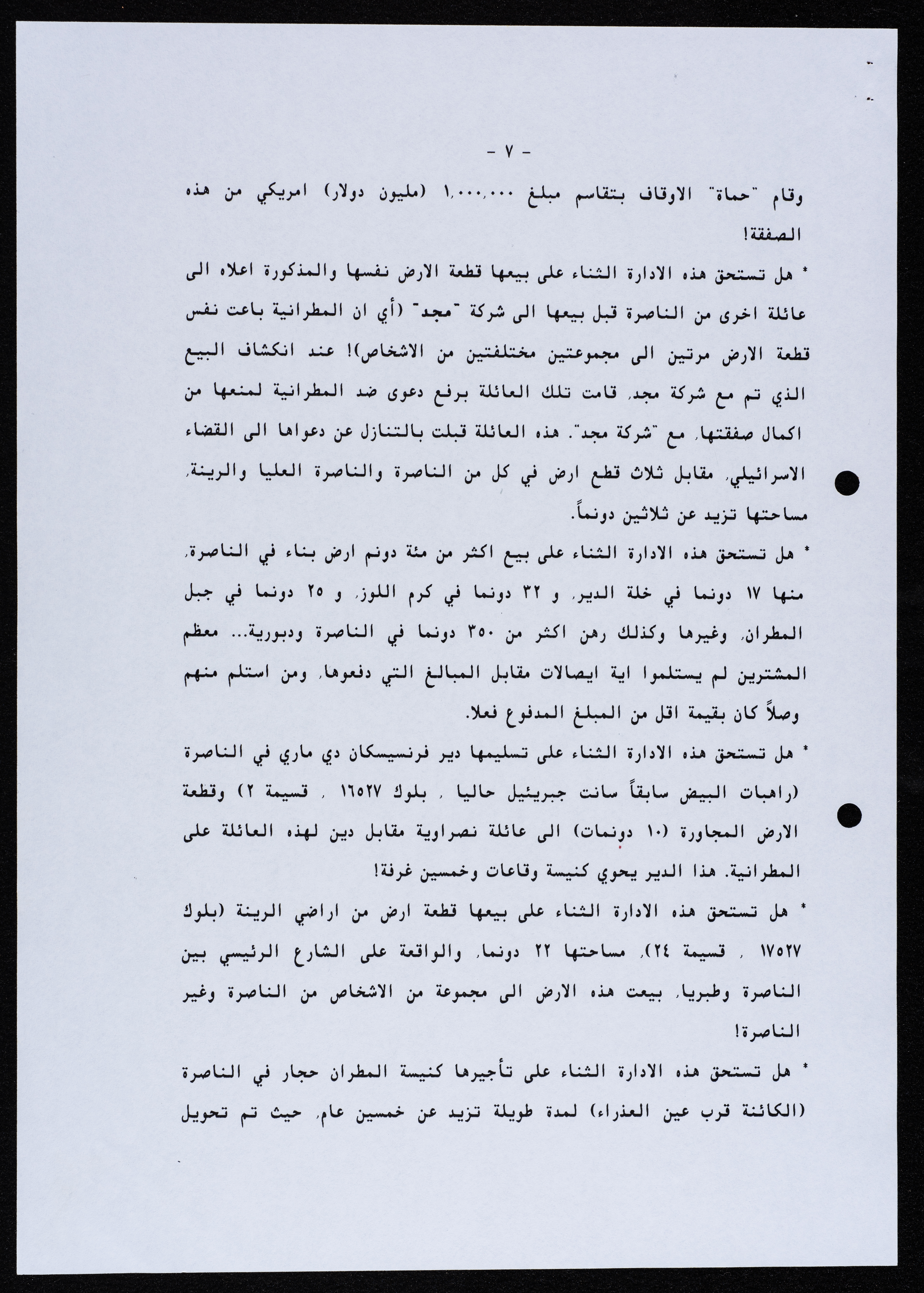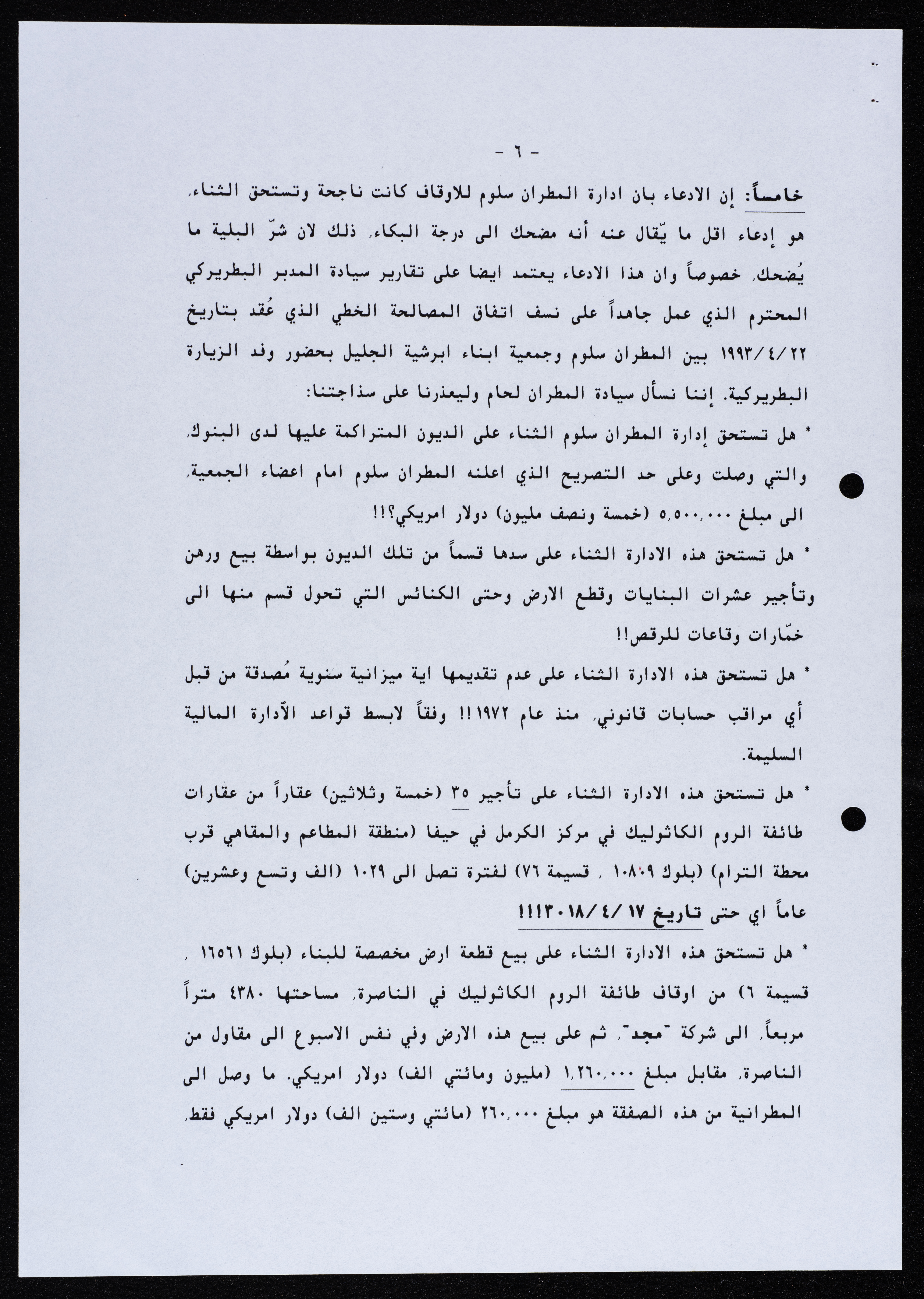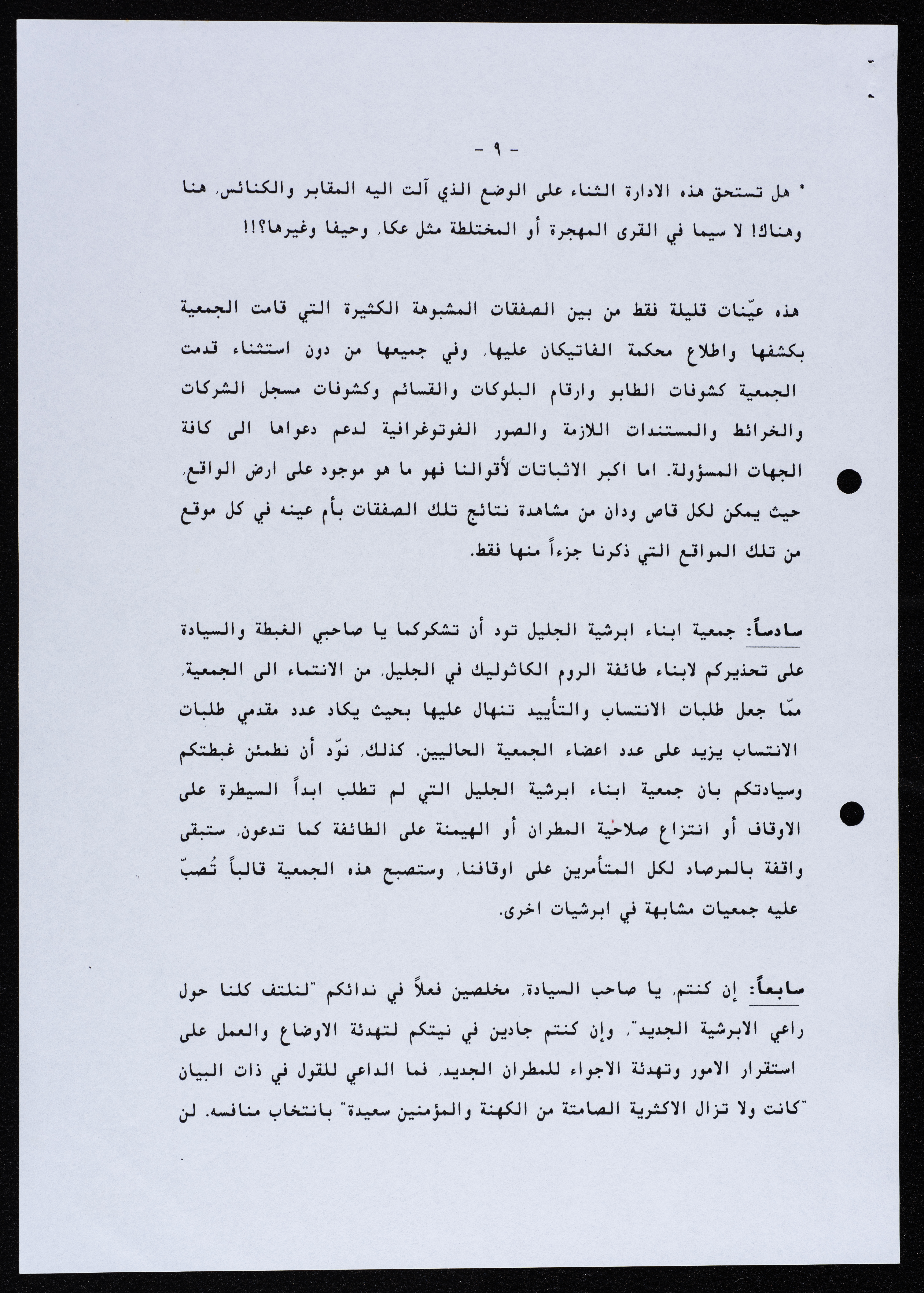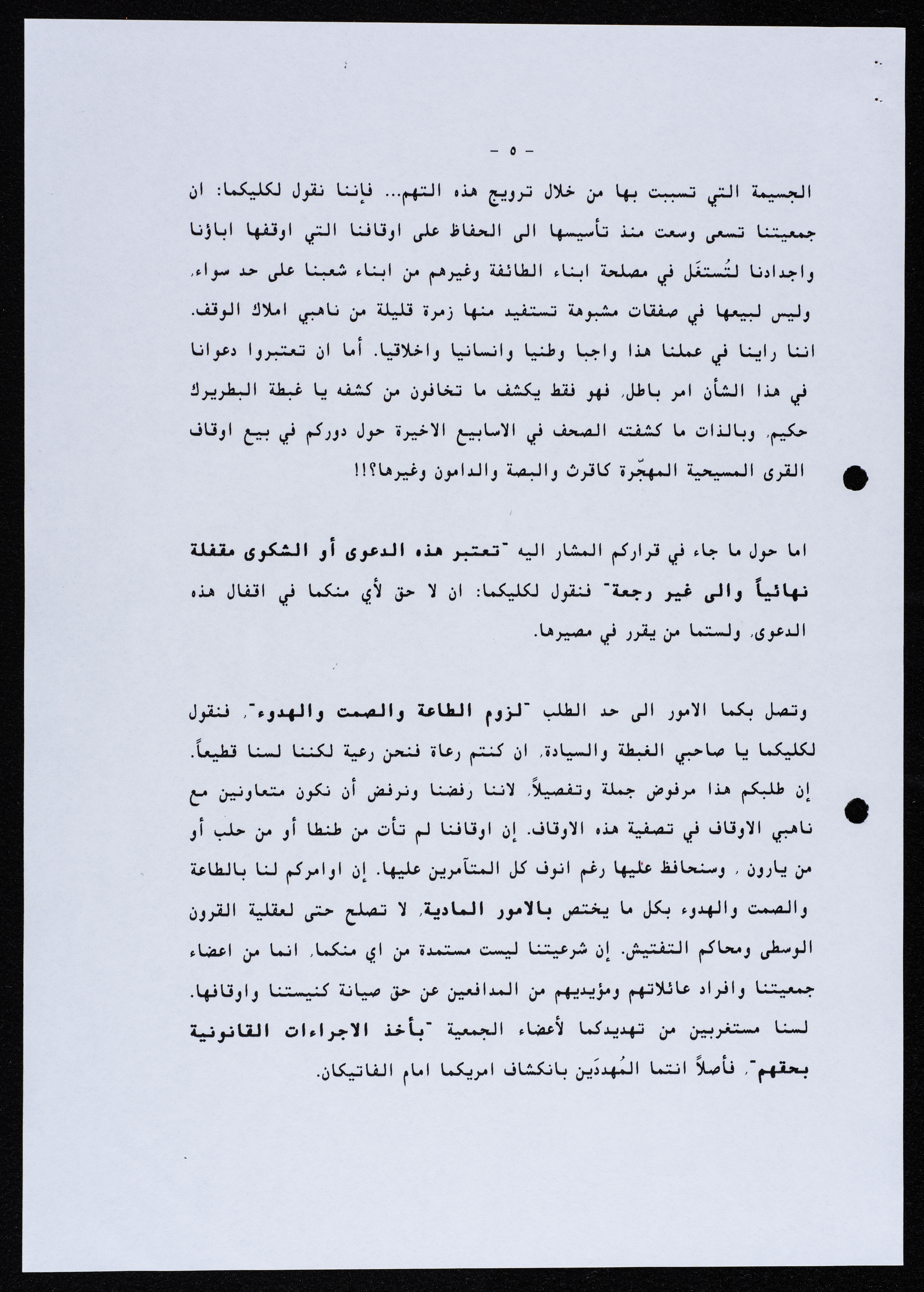 A statement issued by the Diocese of Galilee Members Association in response to the statement of the Patriarchal Chairperson of the Diocese of Acre, Haifa, Nazareth and the Galilee, Bishop Lotfi Lahham, 1998.
