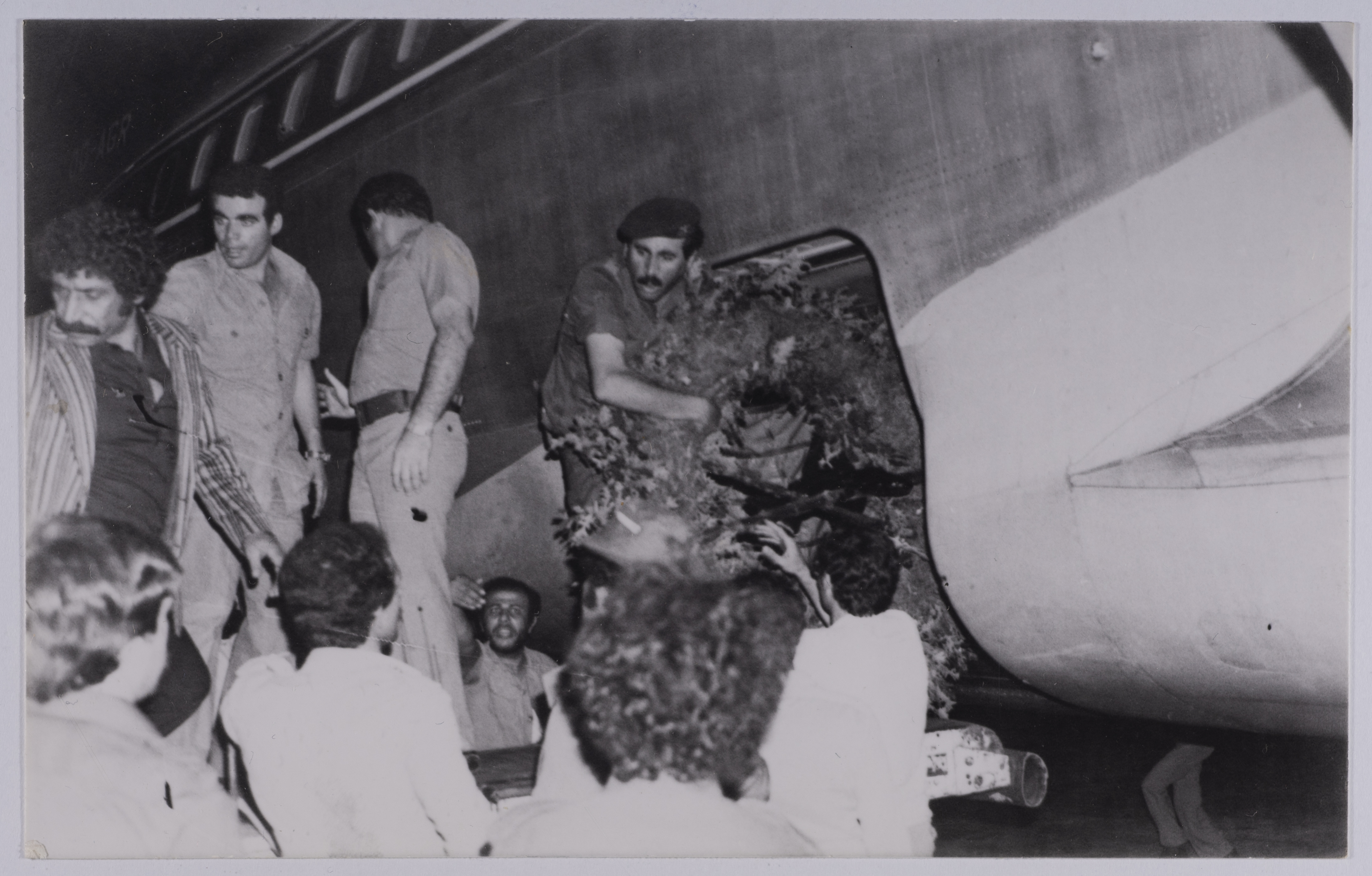 Taken in 1981, this photograph captures a glimpse of the funeral procession of Majed abu Sharar who was assassinated by the Israeli Occupation Forces at a hotel in Rome where he was located to attend an international Palestinian solidarity conference.